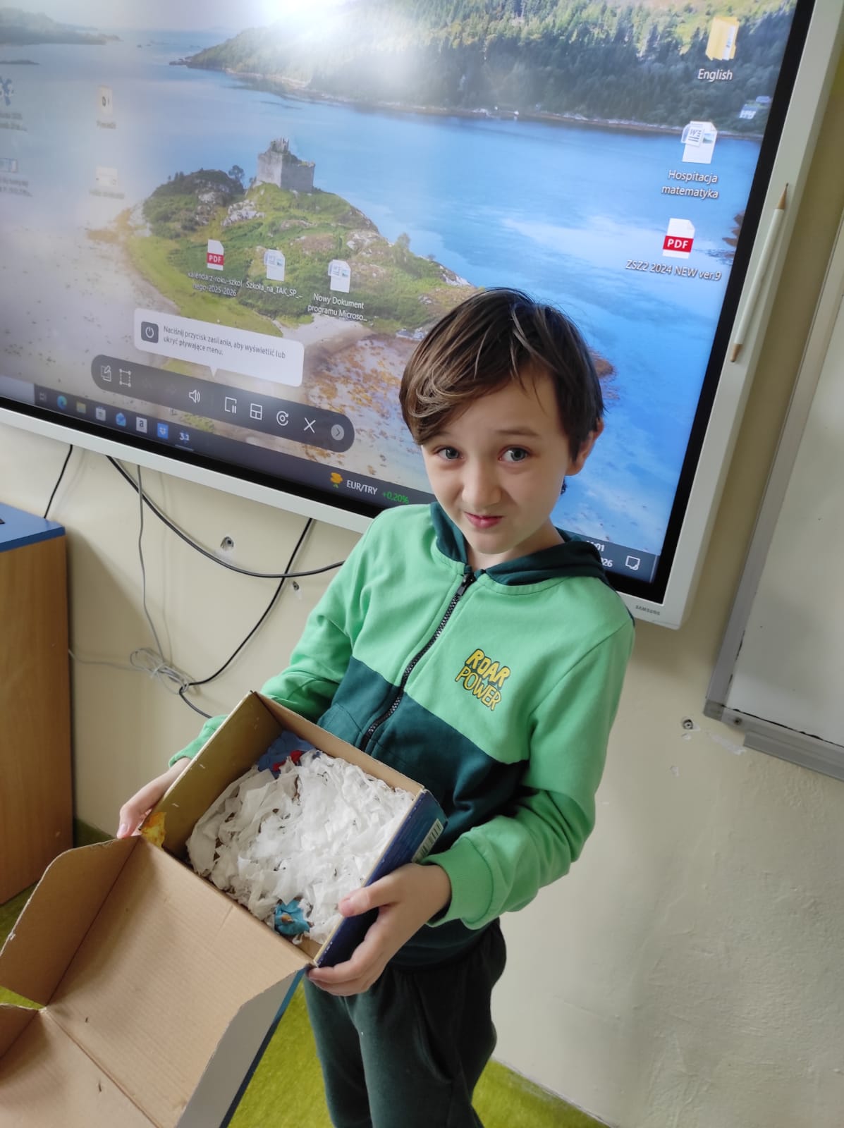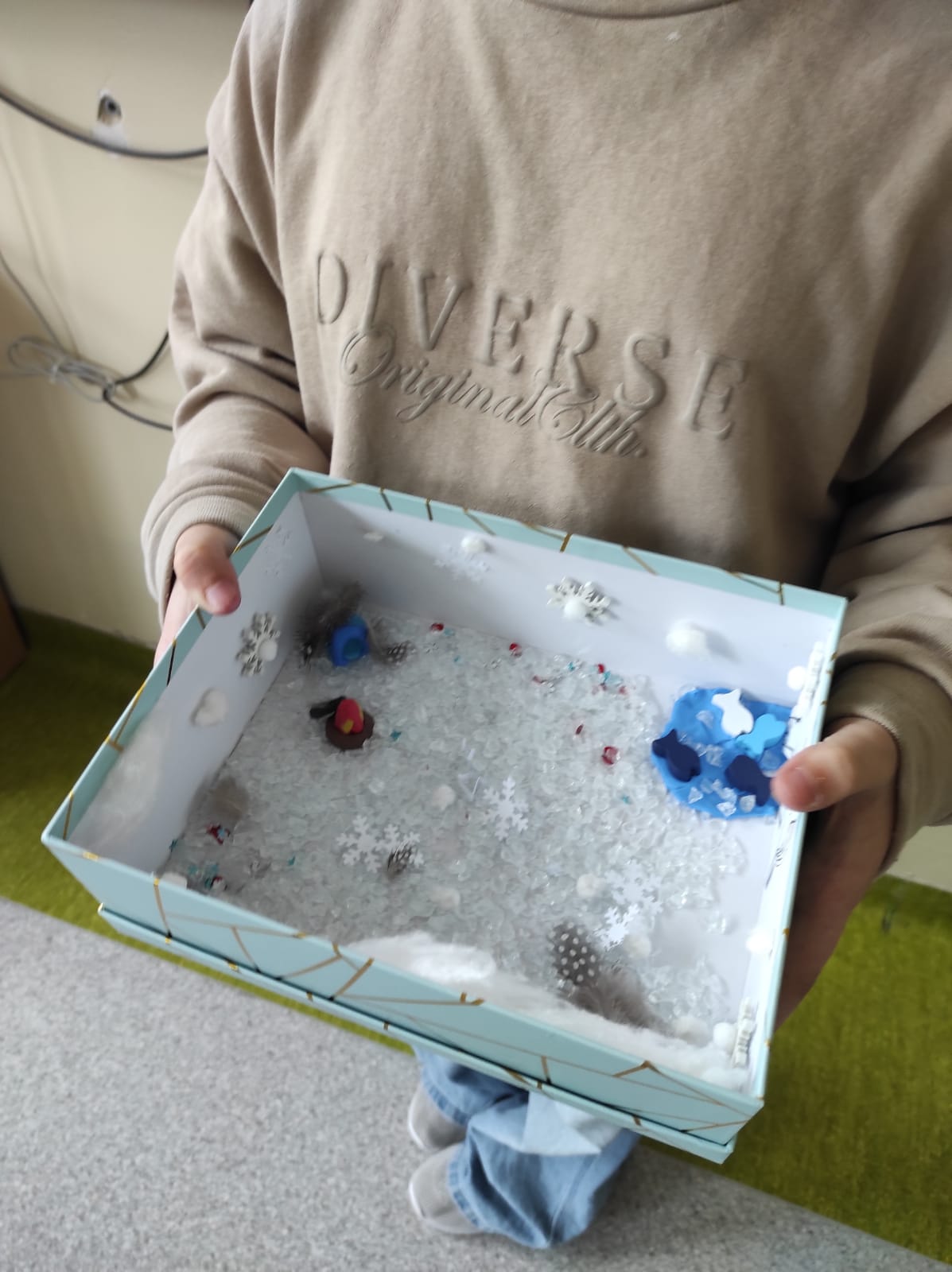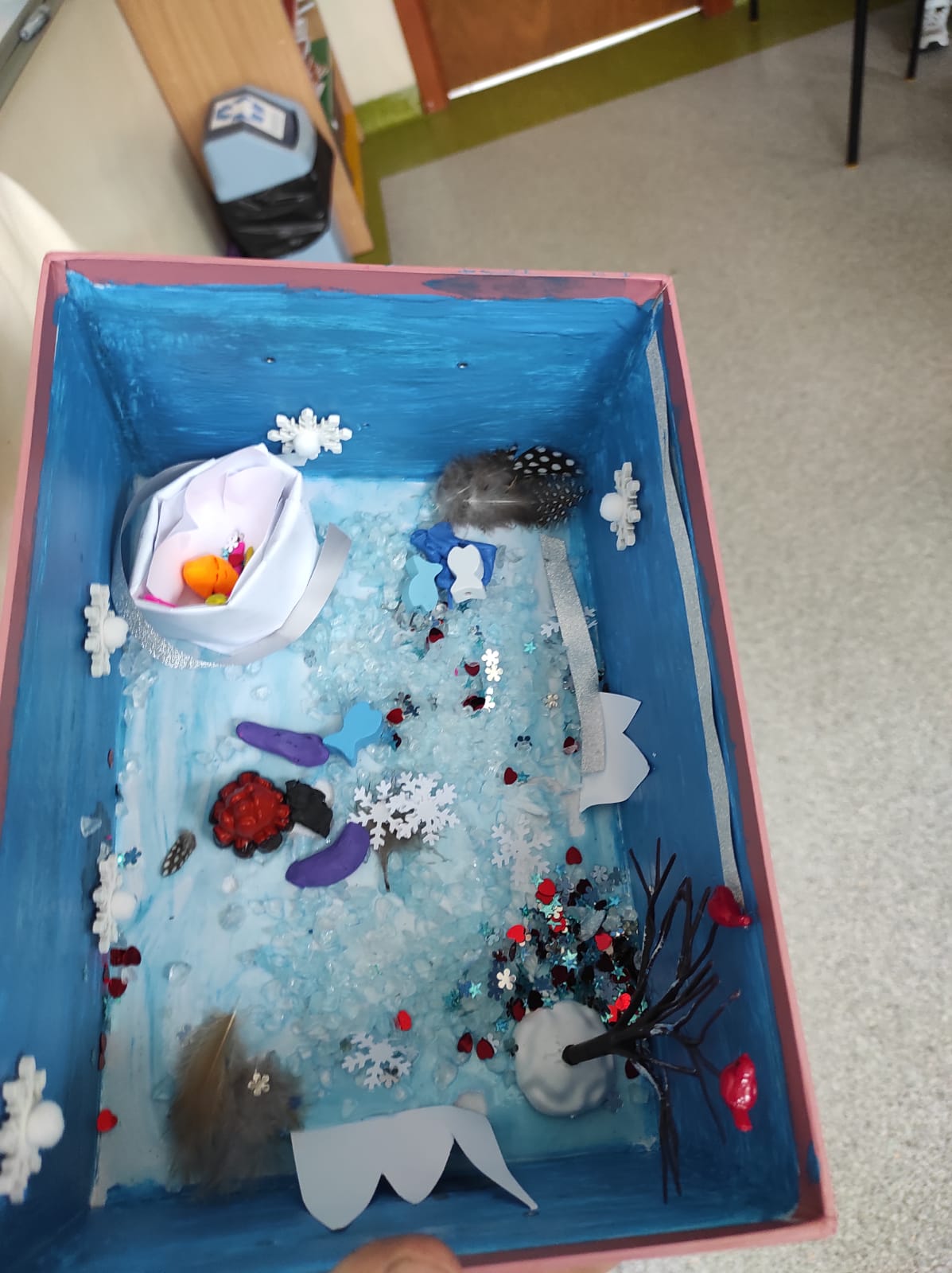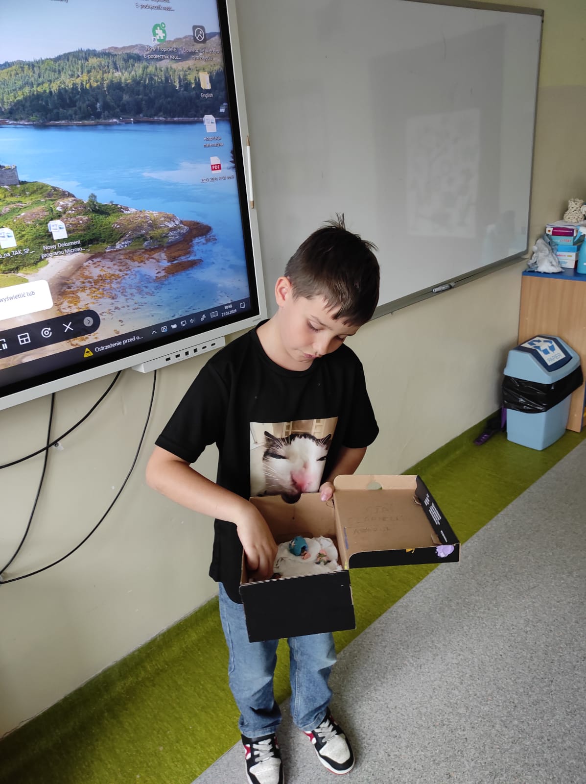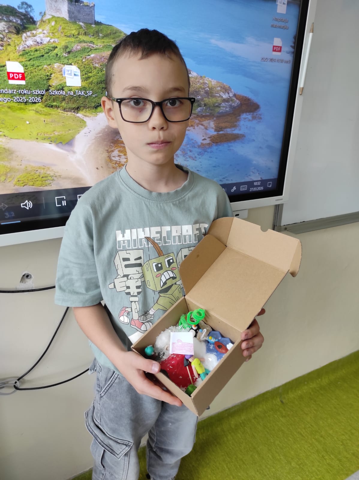 Zwieńczeniem naszej wspólnej przygody był projekt „Lektura w pudełku”. Zadanie wymagało nie tylko znajomości treści książki, ale też sporej dawki wyobraźni! W ruch poszły waty, kartony, plastelina i figurki. Efekt? W klasie wyrosły miniaturowe igloo, pojawiły się sanie ciągnięte przez psy i mroźne krajobrazy Arktyki.