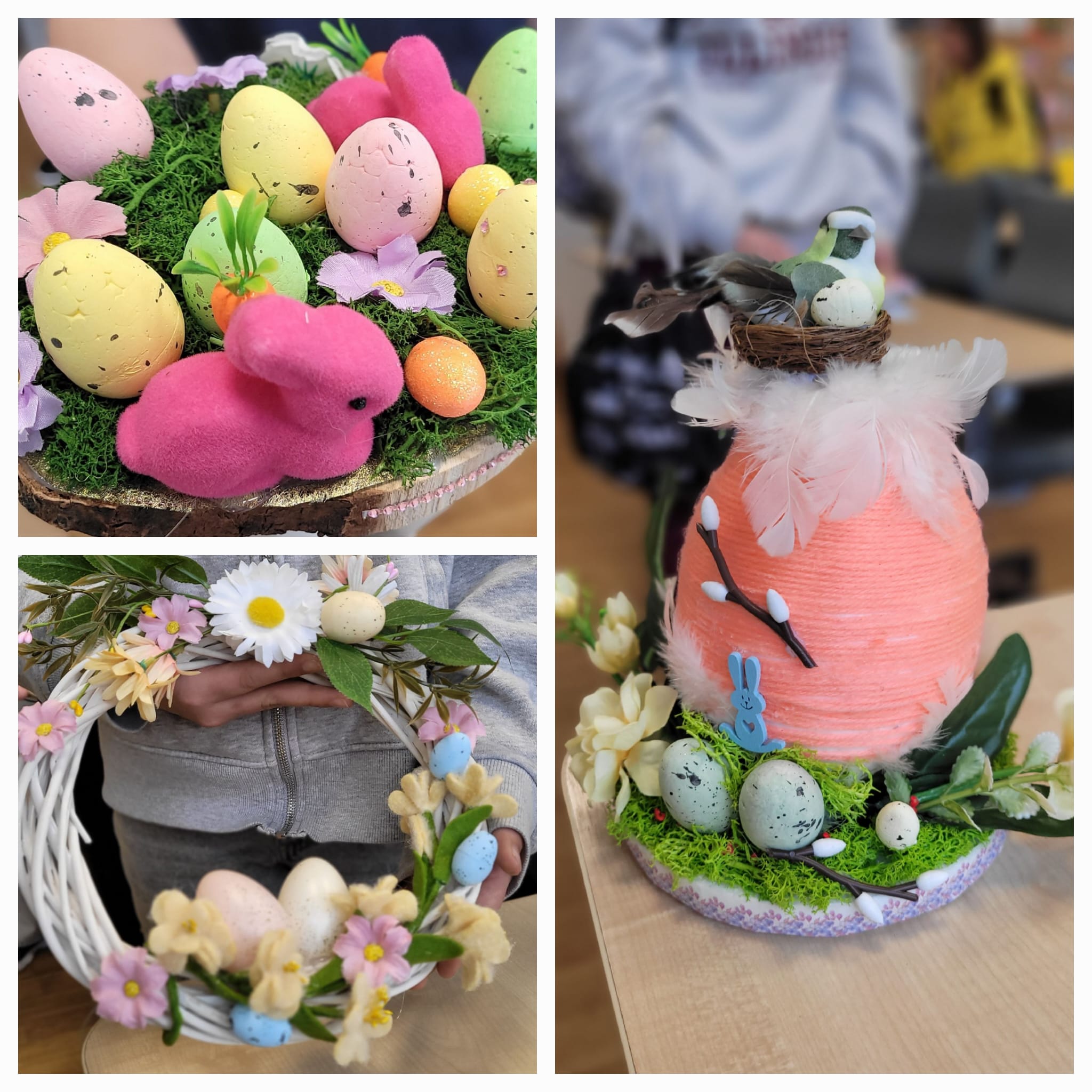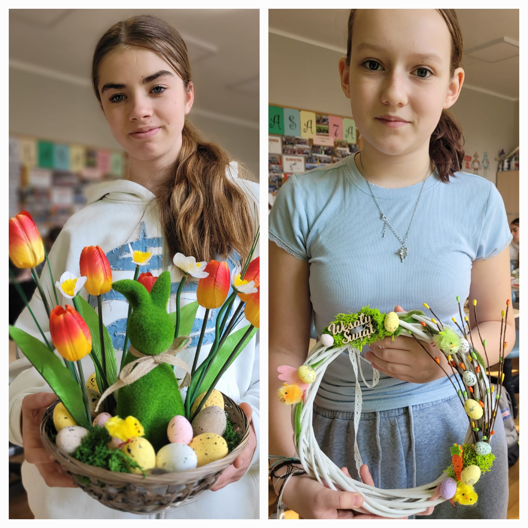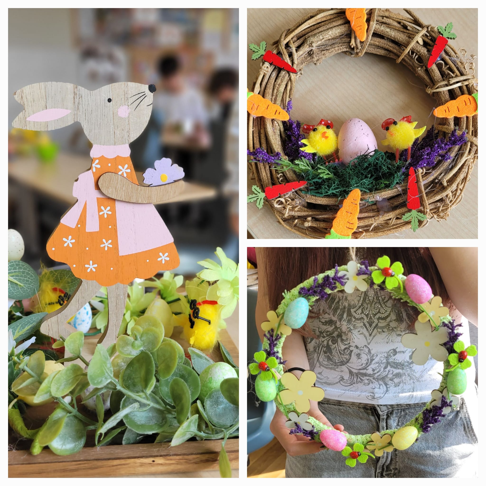 Powstały piękne i pomysłowe prace – od wielkanocnych stroików na stół, po dekoracje na drzwi, które wprowadziły do sali 109 prawdziwie wiosenny klimat. 🌼🐣