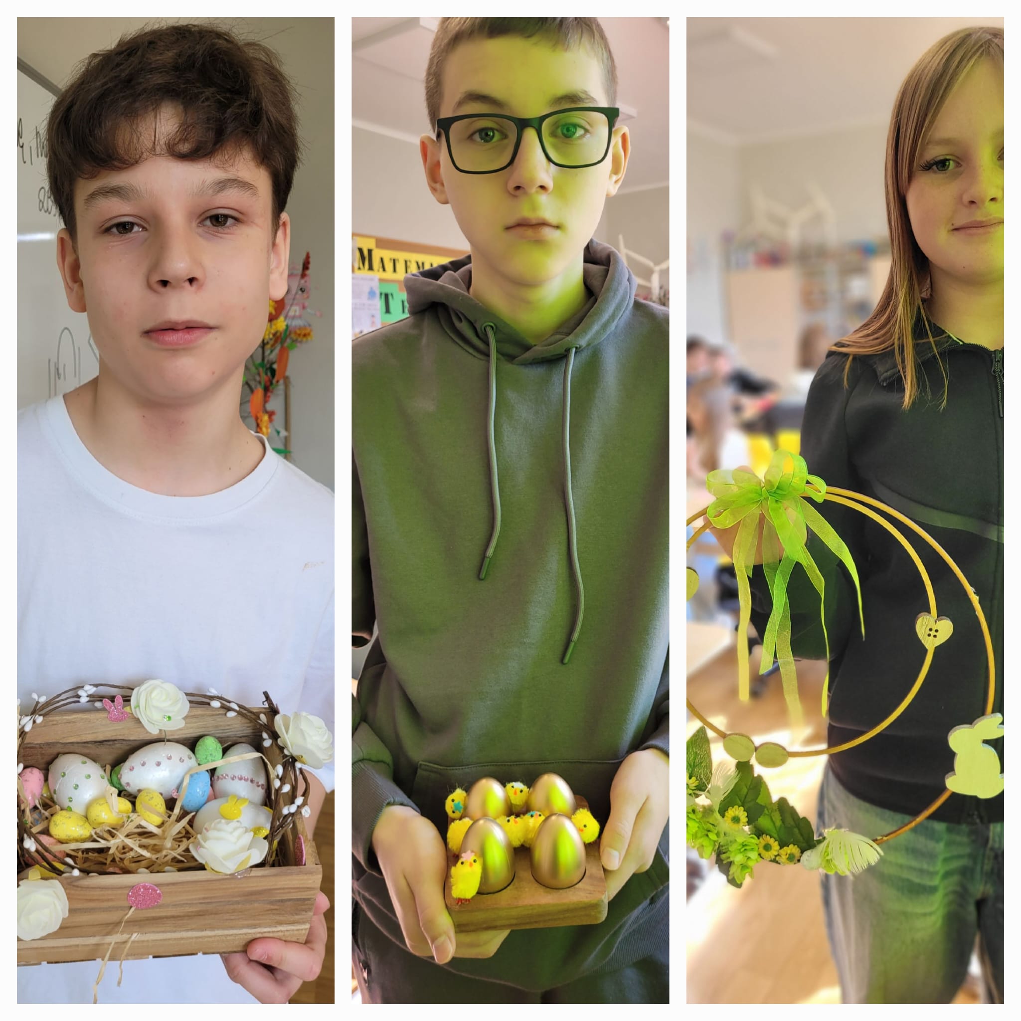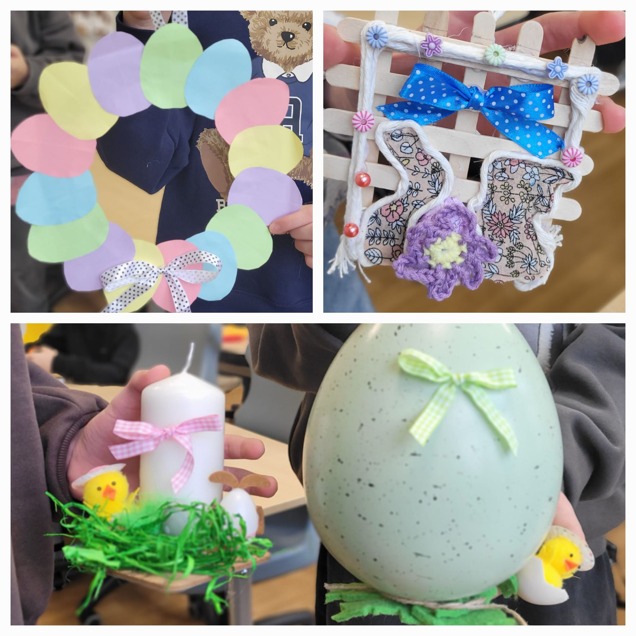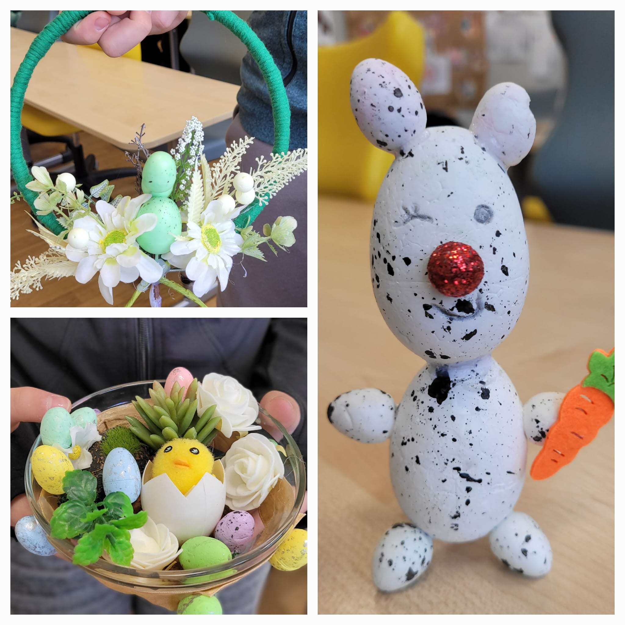 Powstały piękne i pomysłowe prace – od wielkanocnych stroików na stół, po dekoracje na drzwi, które wprowadziły do sali 109 prawdziwie wiosenny klimat. 🌼🐣