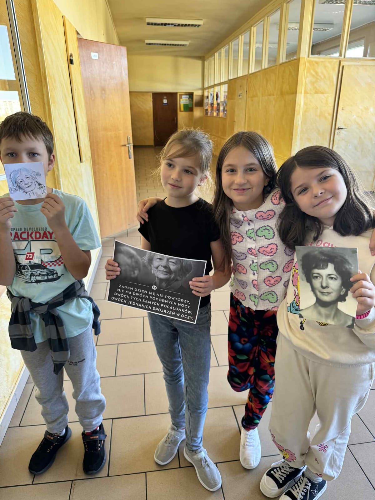 4B na lekcji wychowawczej realizowała zadanie z projektu Klasa na medal. Wspólnie stworzyli gazetkę na temat Wisławy Szymborskiej.PoprzedniNastępny