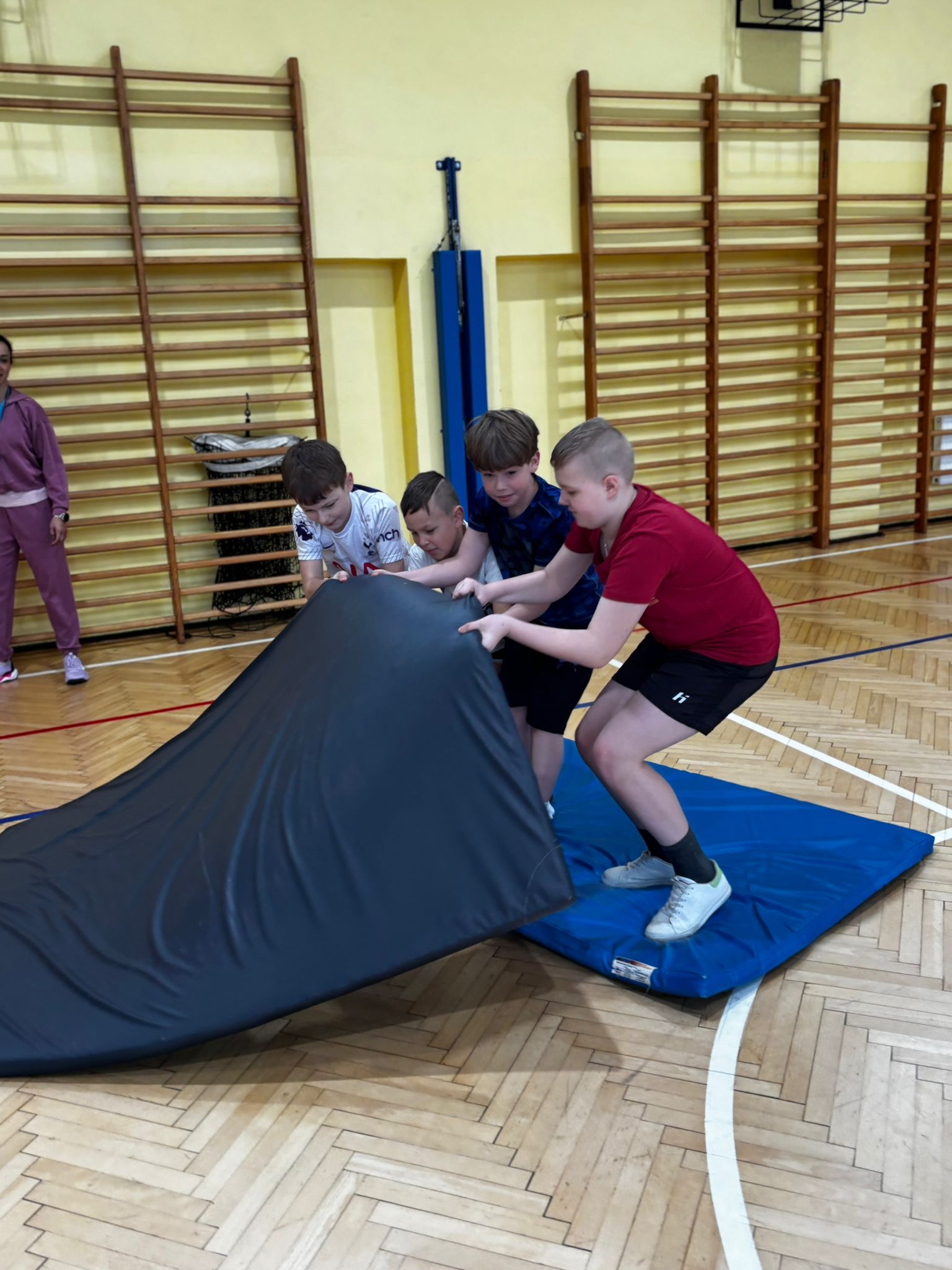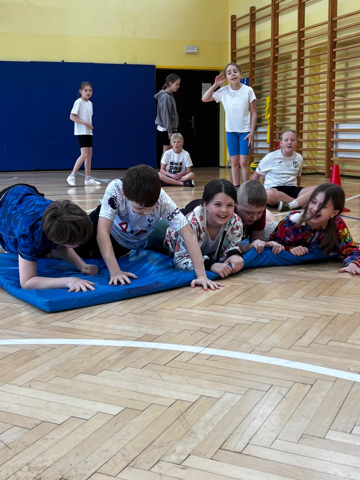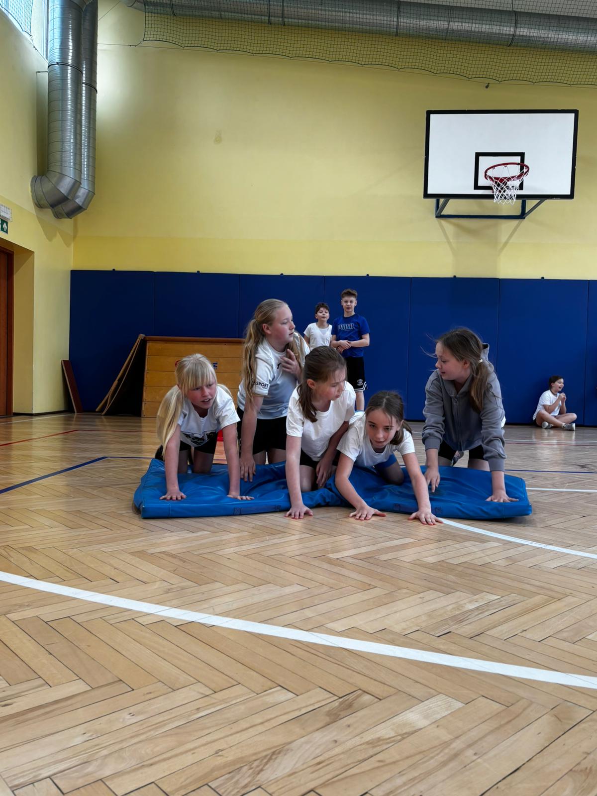 Klasy 4b i 4c wzięły udział w konkurencjach sportowych organizowanych w ramach projektu „Bądź Aktywny z Kuratorem”. Uczniowie z dużym zaangażowaniem rywalizowali w zespołach, stawiając na współpracę, dobrą komunikację oraz przemyślaną taktykę. Sportowe zmagania były nie tylko okazją do sprawdzenia swoich umiejętności, ale również do integracji i wspólnej zabawy. Udział w projekcie sprzyjał rozwijaniu pasji sportowych oraz promował aktywny i zdrowy styl życia.