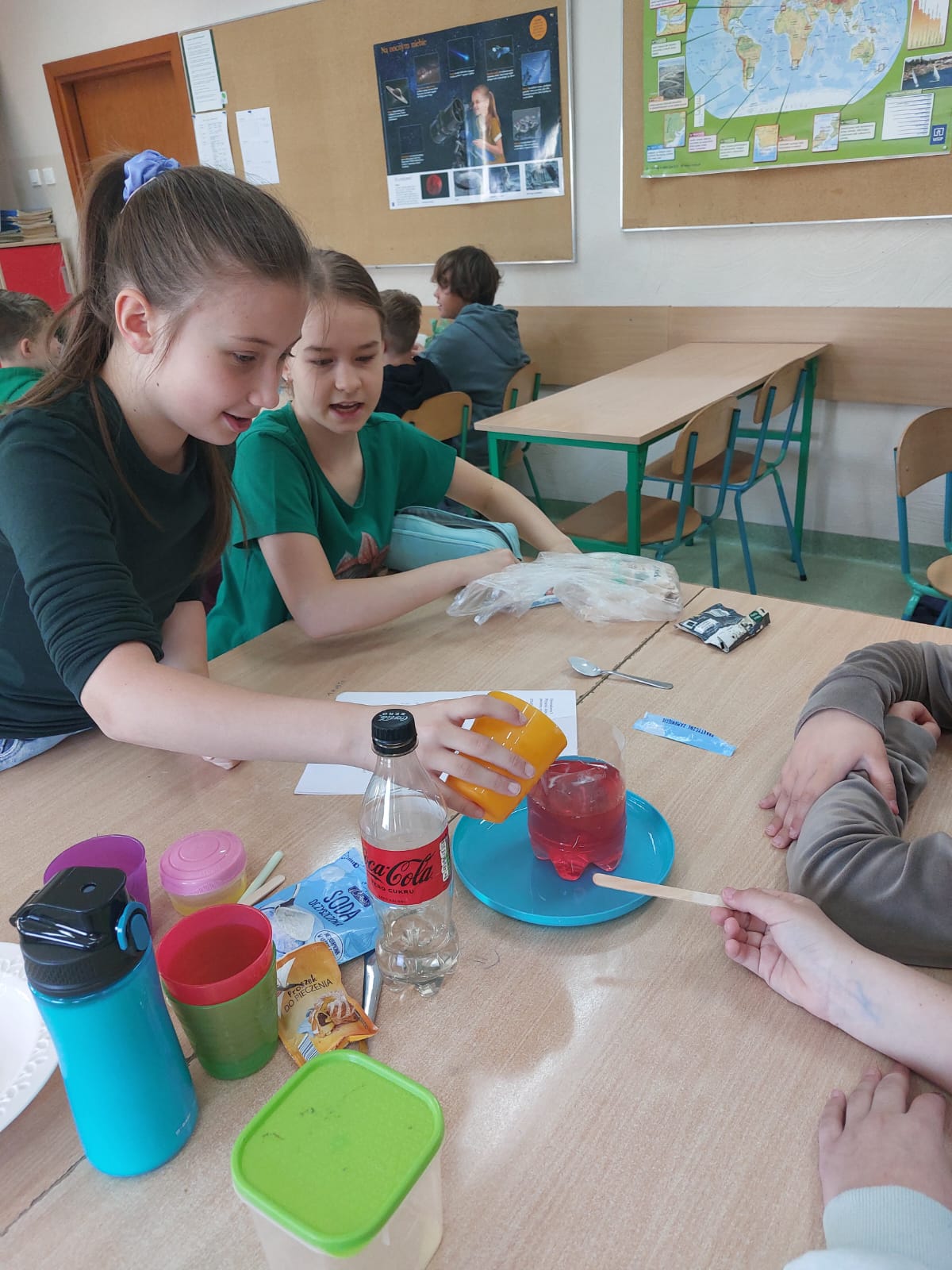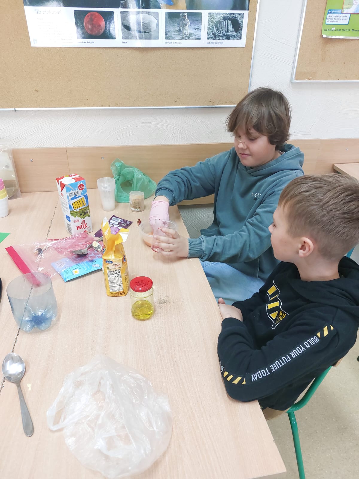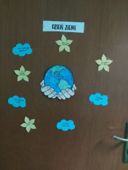 22 kwietnia to Dzień Ziemi. Pojawiły się hasła przyrodnicze, które były zadaniem w ramach programu „Klasa na medal”. W klasach 4a, 4b i 4c przeprowadzone zostały warsztaty – doświadczenia.