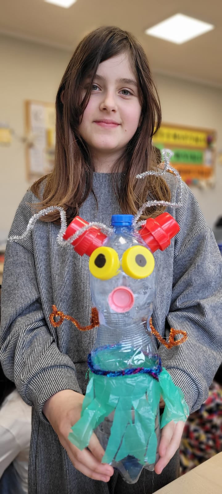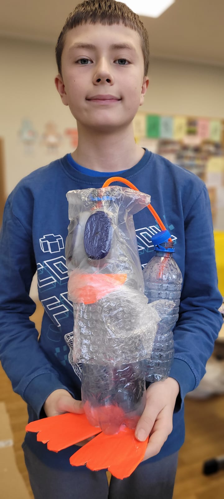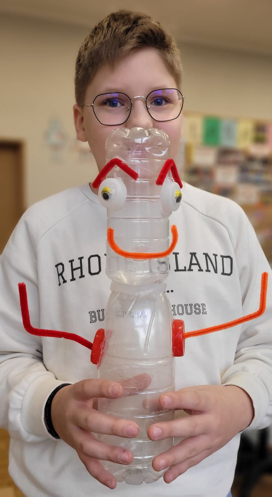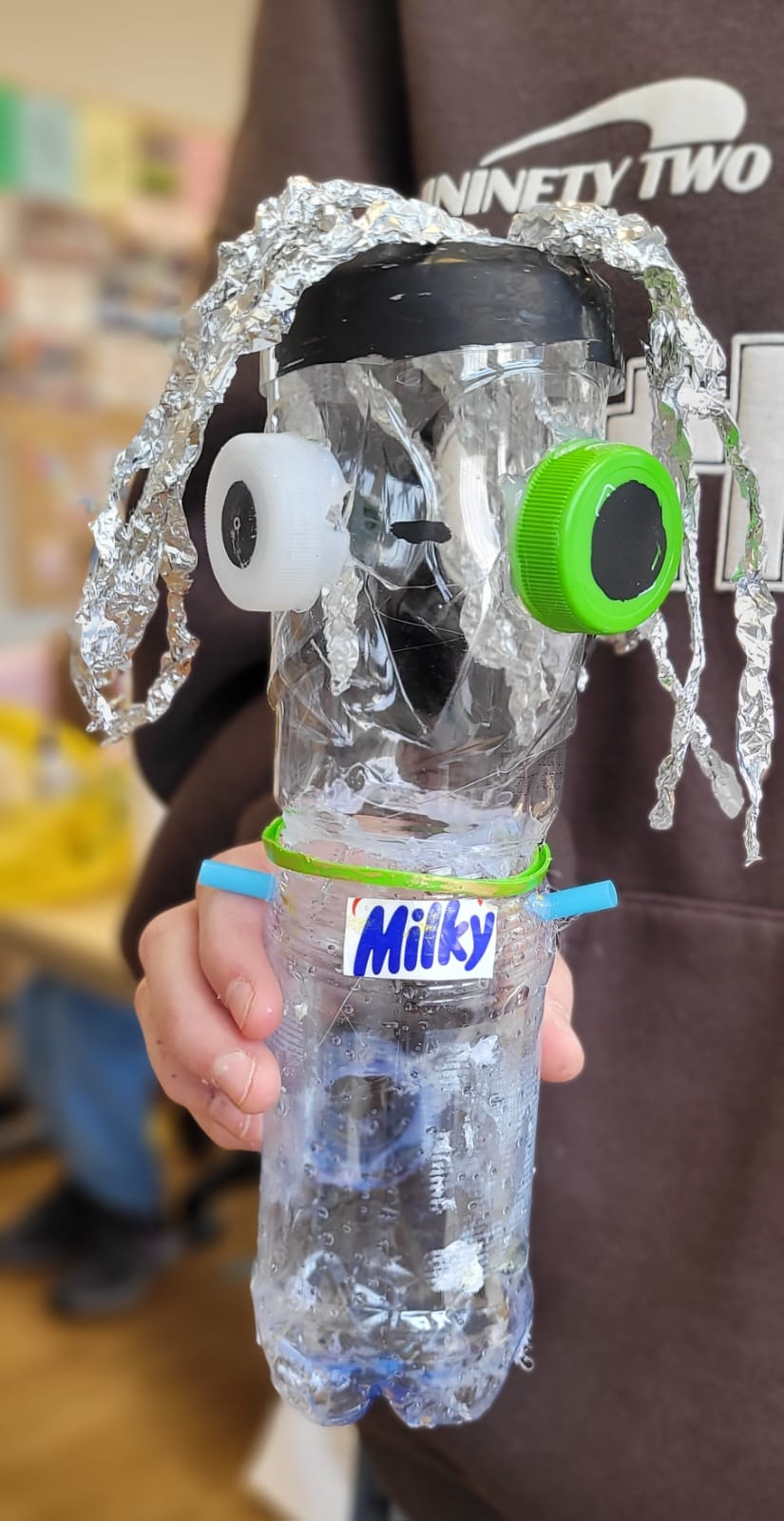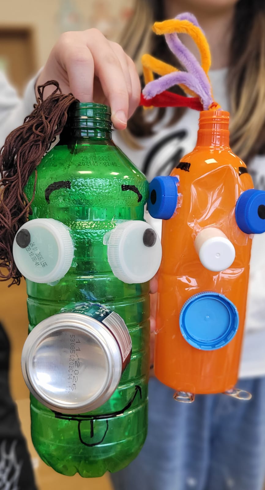 Uczniowie wykorzystali butelki PET, tworzywa sztuczne, folie i inne znalezione w domach materiały. Technika tworzenia była zupełnie dowolna. Uczniowie kleili, łączyli ze sobą dostępne materiały nadając im „drugie życie”.