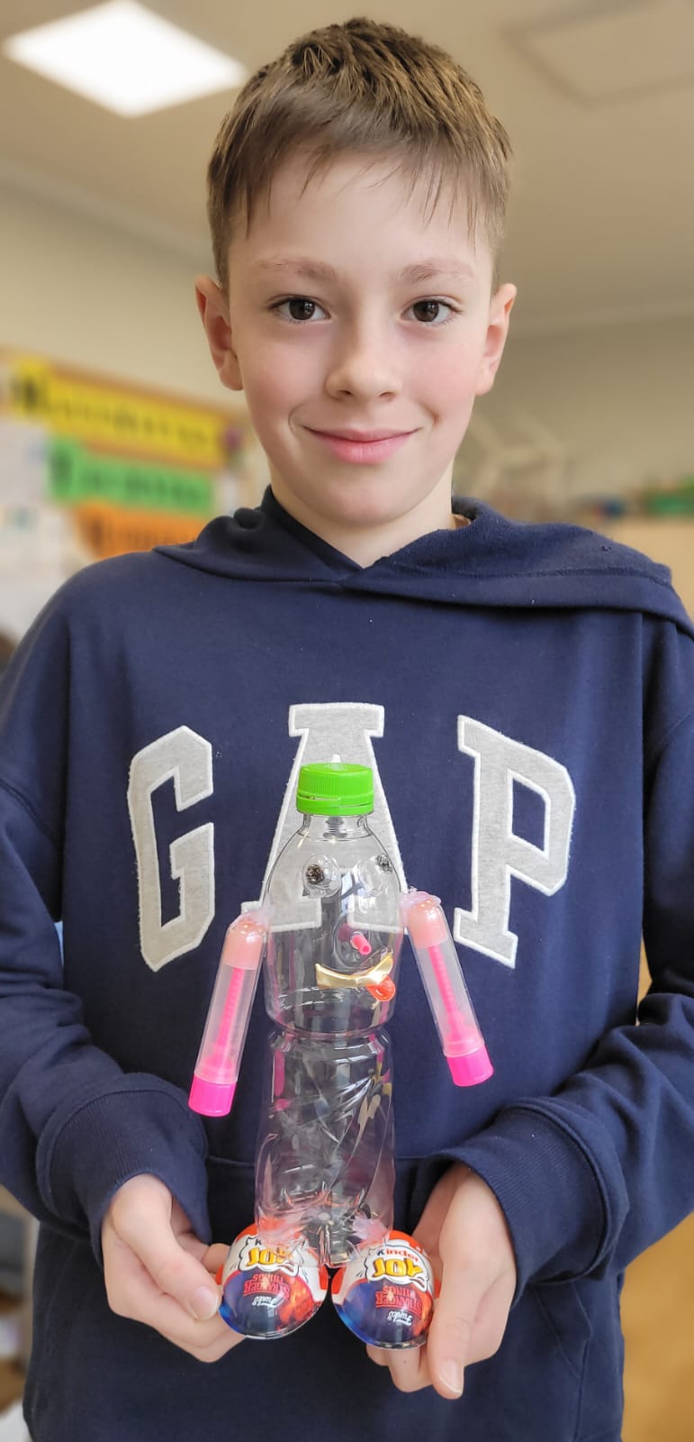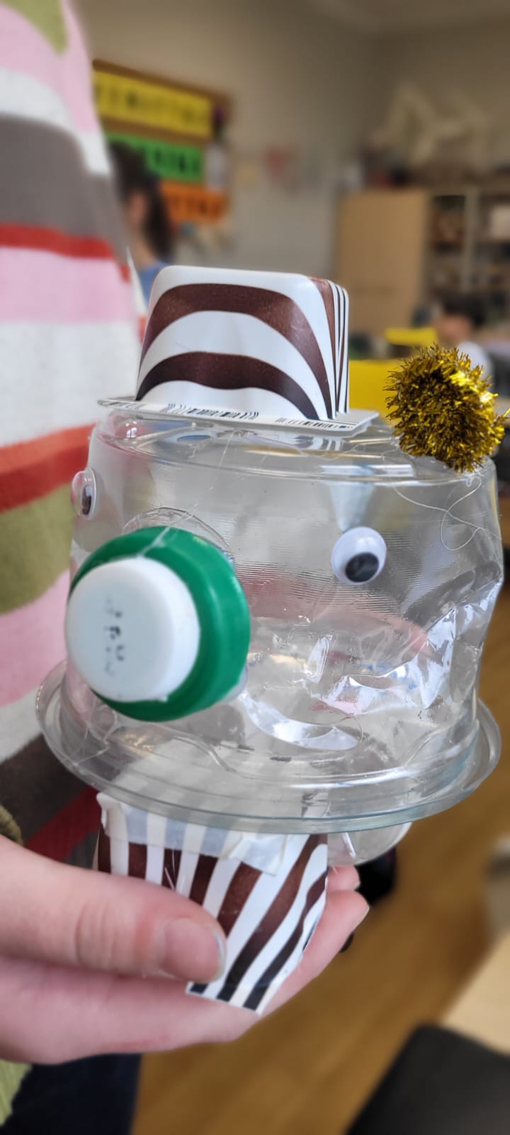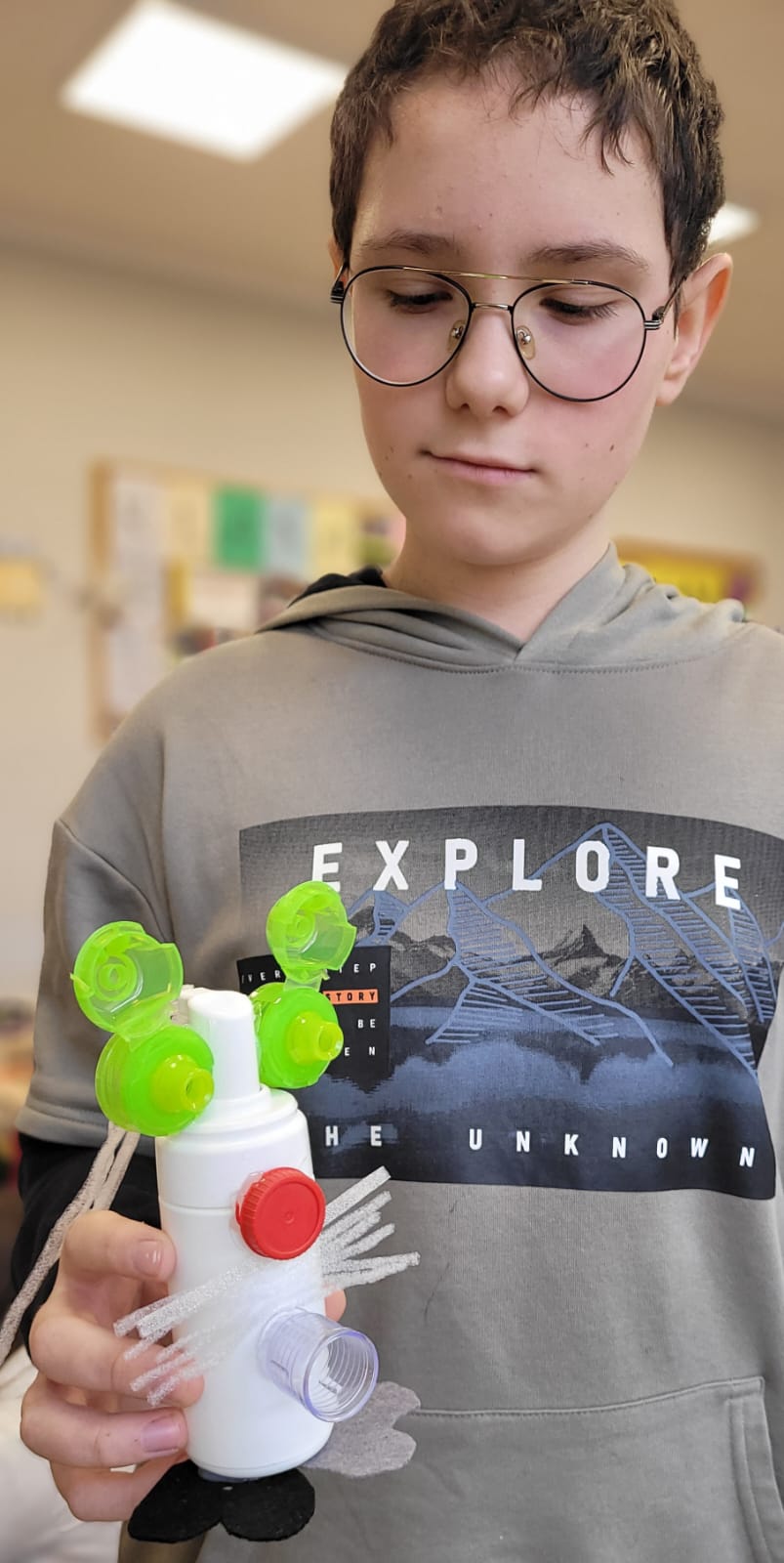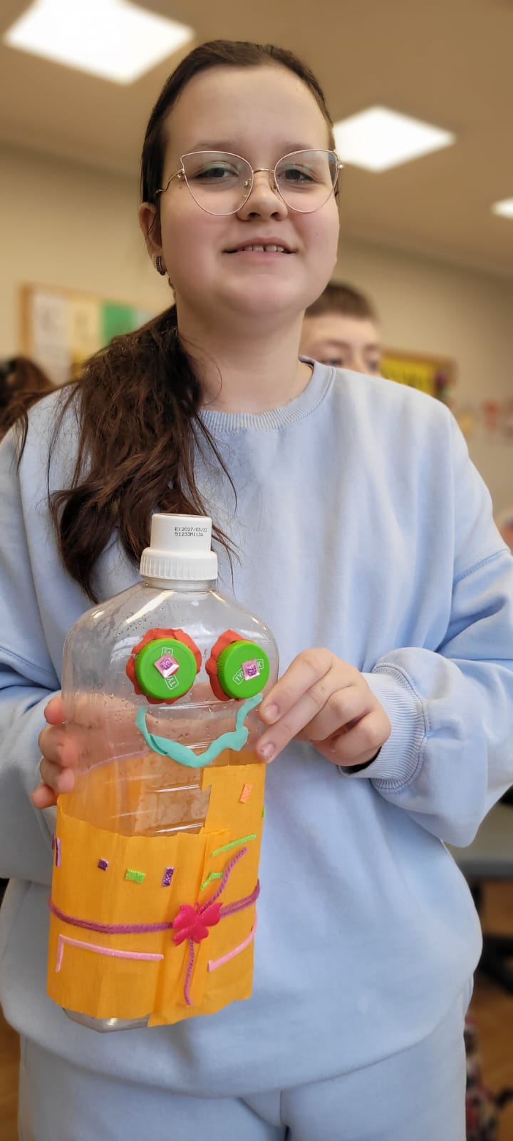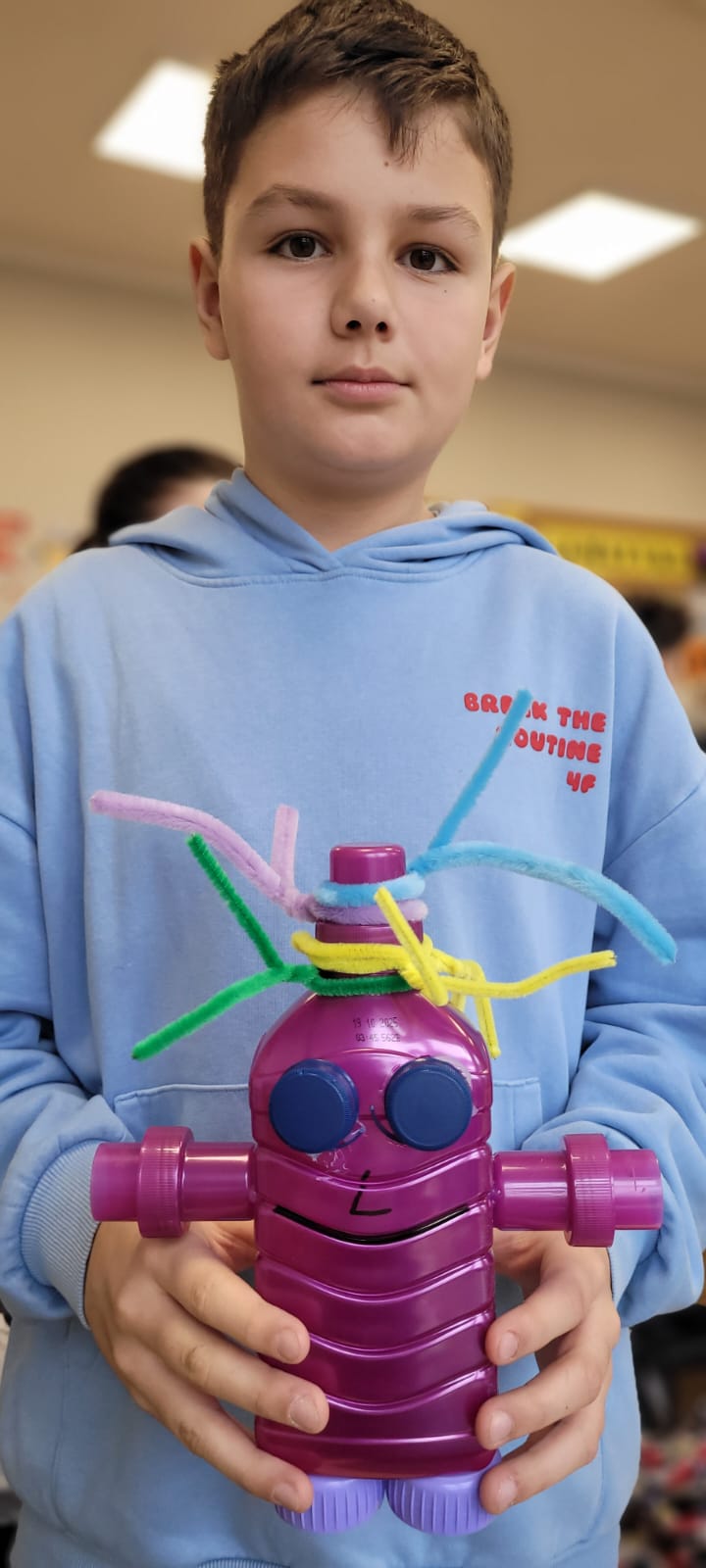 Uczniowie wykorzystali butelki PET, tworzywa sztuczne, folie i inne znalezione w domach materiały. Technika tworzenia była zupełnie dowolna. Uczniowie kleili, łączyli ze sobą dostępne materiały nadając im „drugie życie”.
