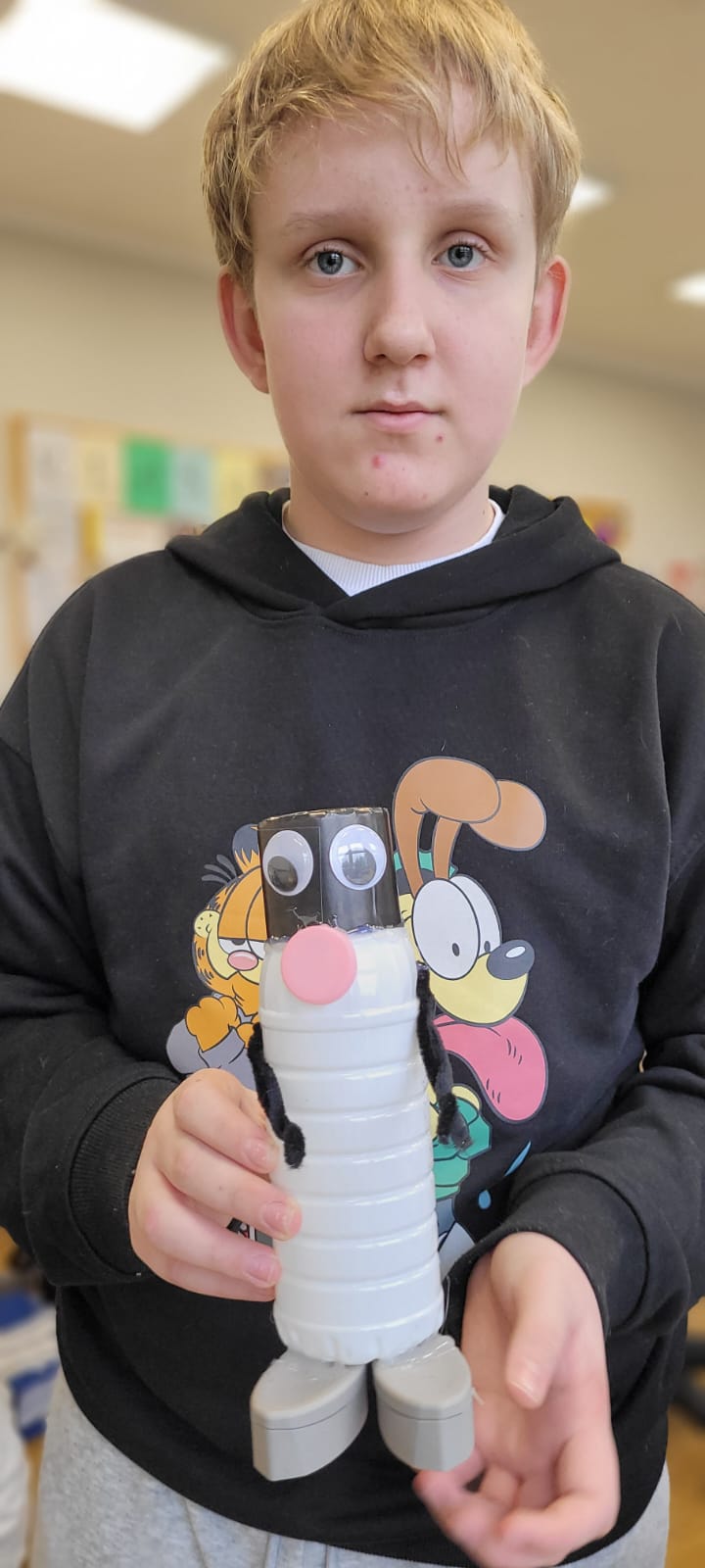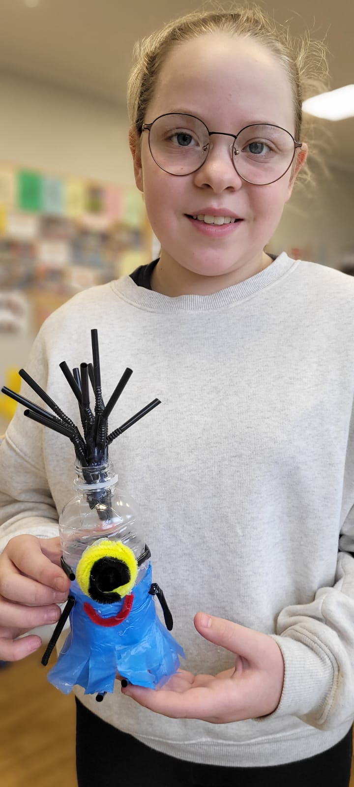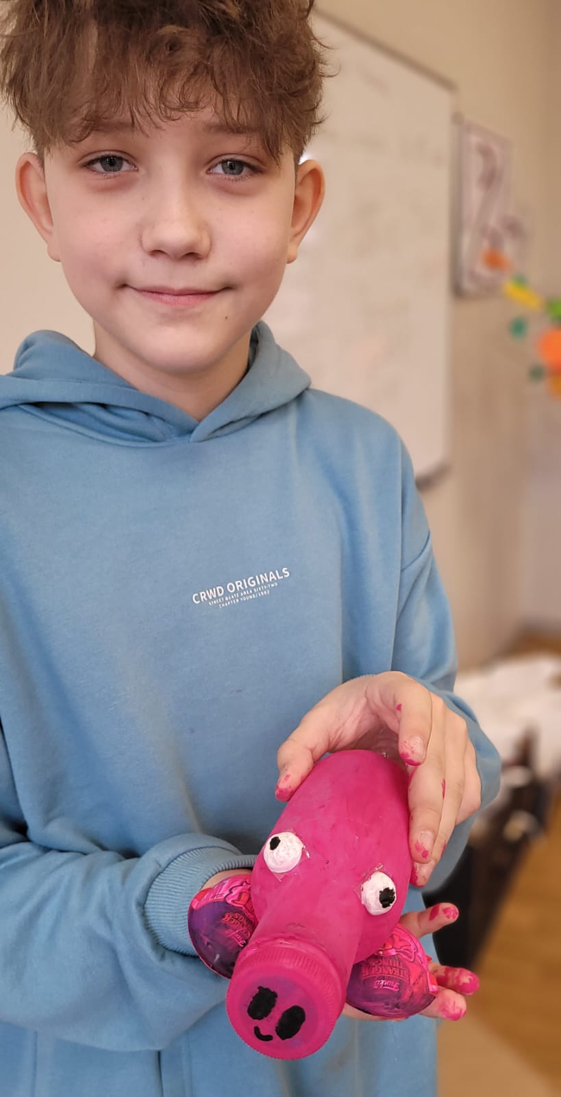 Dziś uczniowie klas piątych na lekcjach techniki wykonali ekologiczne stworki z surowców wtórnych.