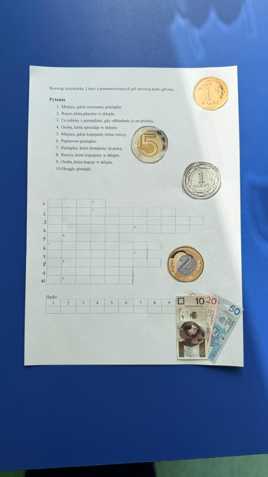 Podczas zajęć uczniowie poznawali ważne pojęcia, takie jak: oszczędzanie, inwestowanie oraz wynagrodzenie. Nauka odbywała się poprzez zabawę i wspólne działania. Przygotowaliśmy tematyczną krzyżówkę, rozwiązywaliśmy sudoku z monetami, a także zadania matematyczne związane z oszczędzaniem.