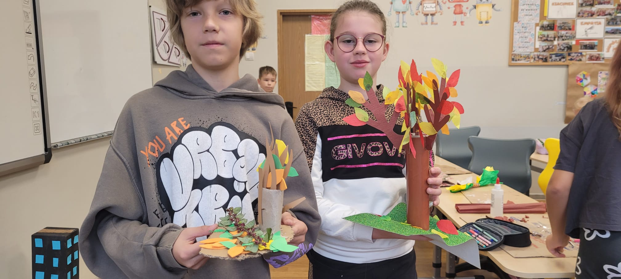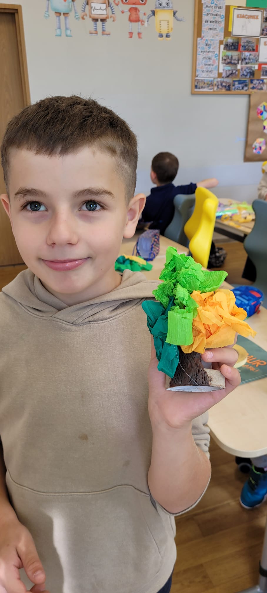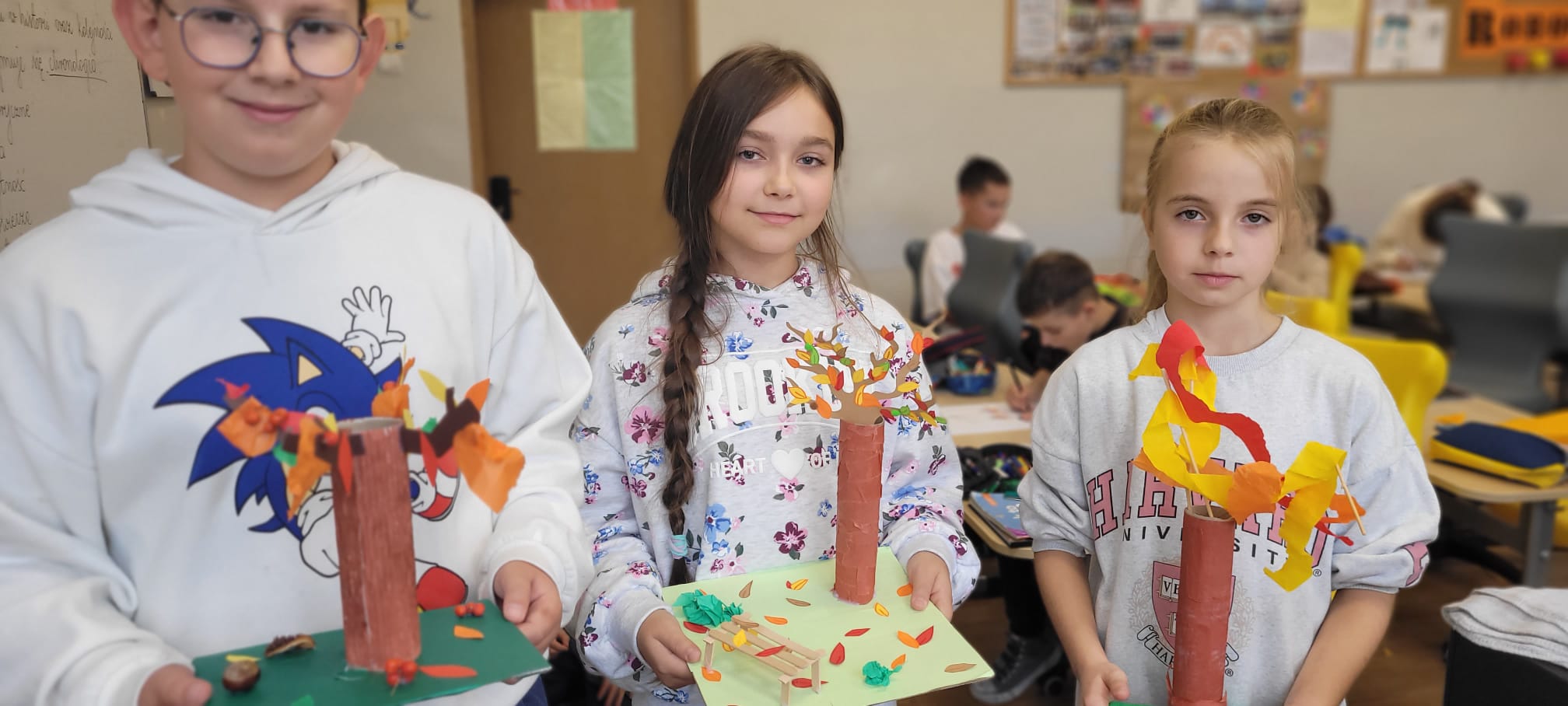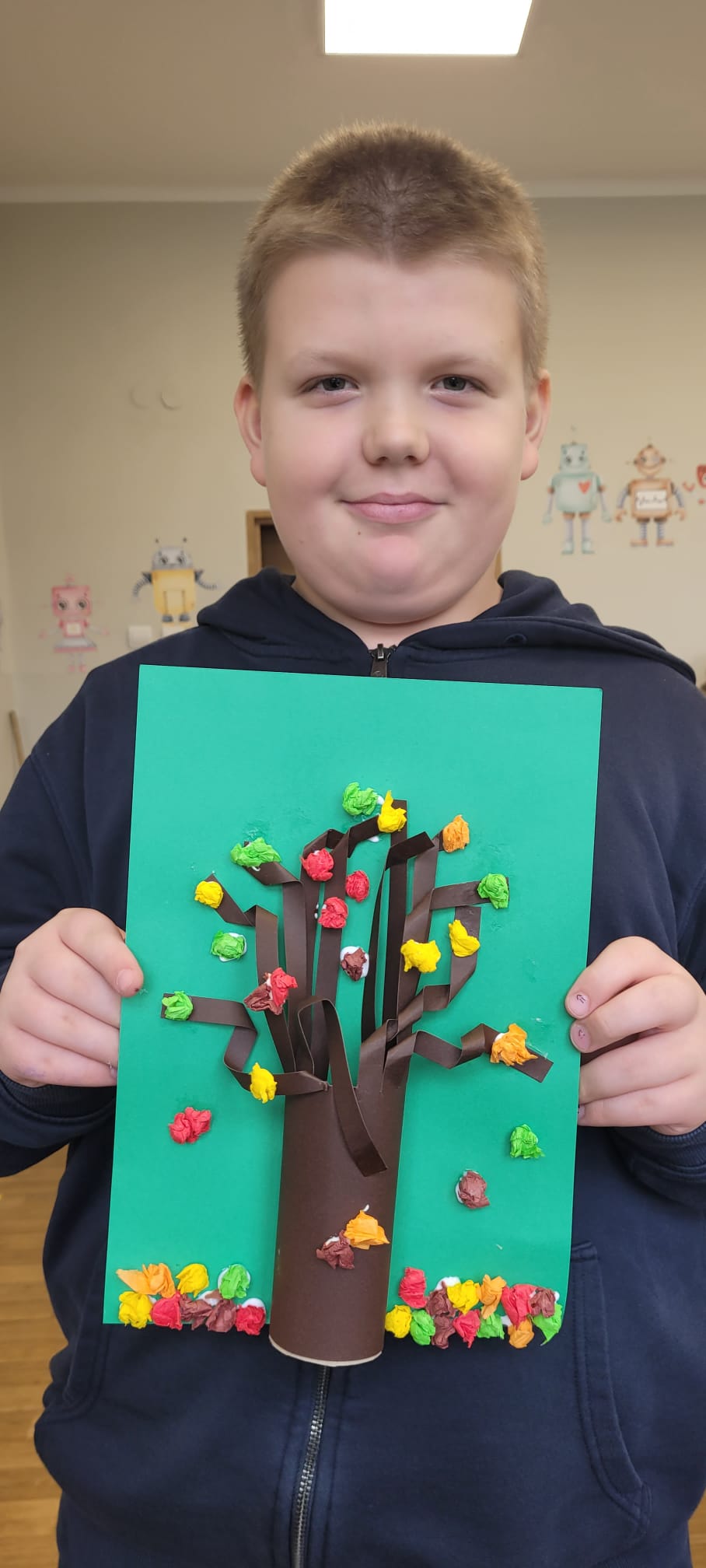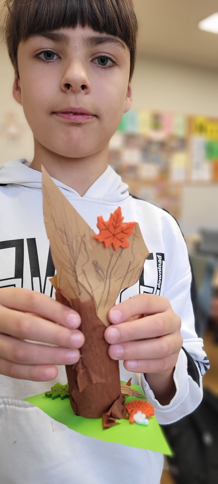 Z okazji Święta Drzewa czwartoklasiści na technice wykonali swoje własne jesienne drzewka z papieru.