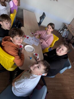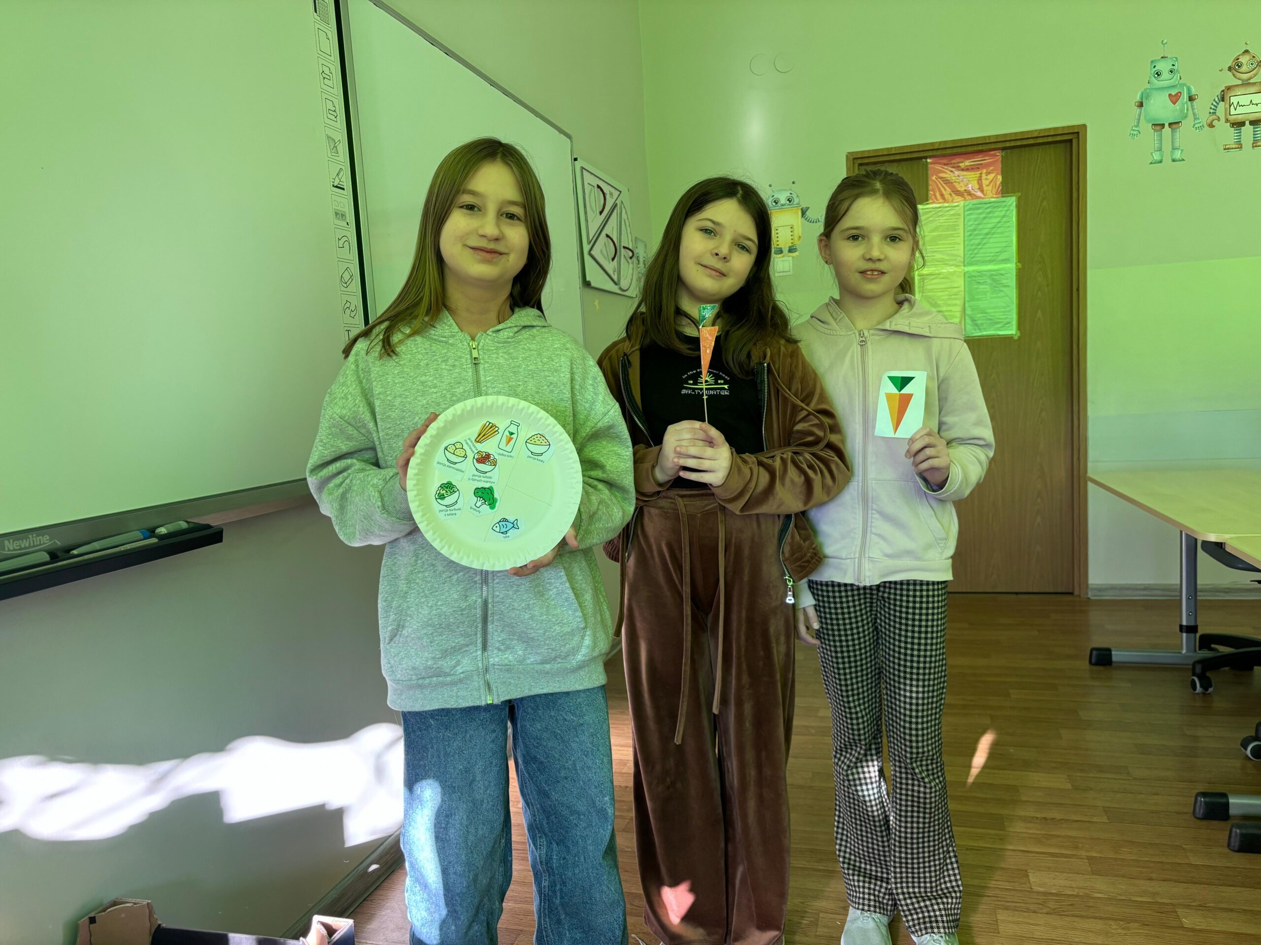 Na ostatnich zajęciach edukacji zdrowotnej klasy 4 wzięły udział w programie ,,Mistrzowie 5 porcji”. Uczniowie niczym szefowie kuchni komponowali zbilansowane posiłki na tekturowych talerzach.PoprzedniNastępny
