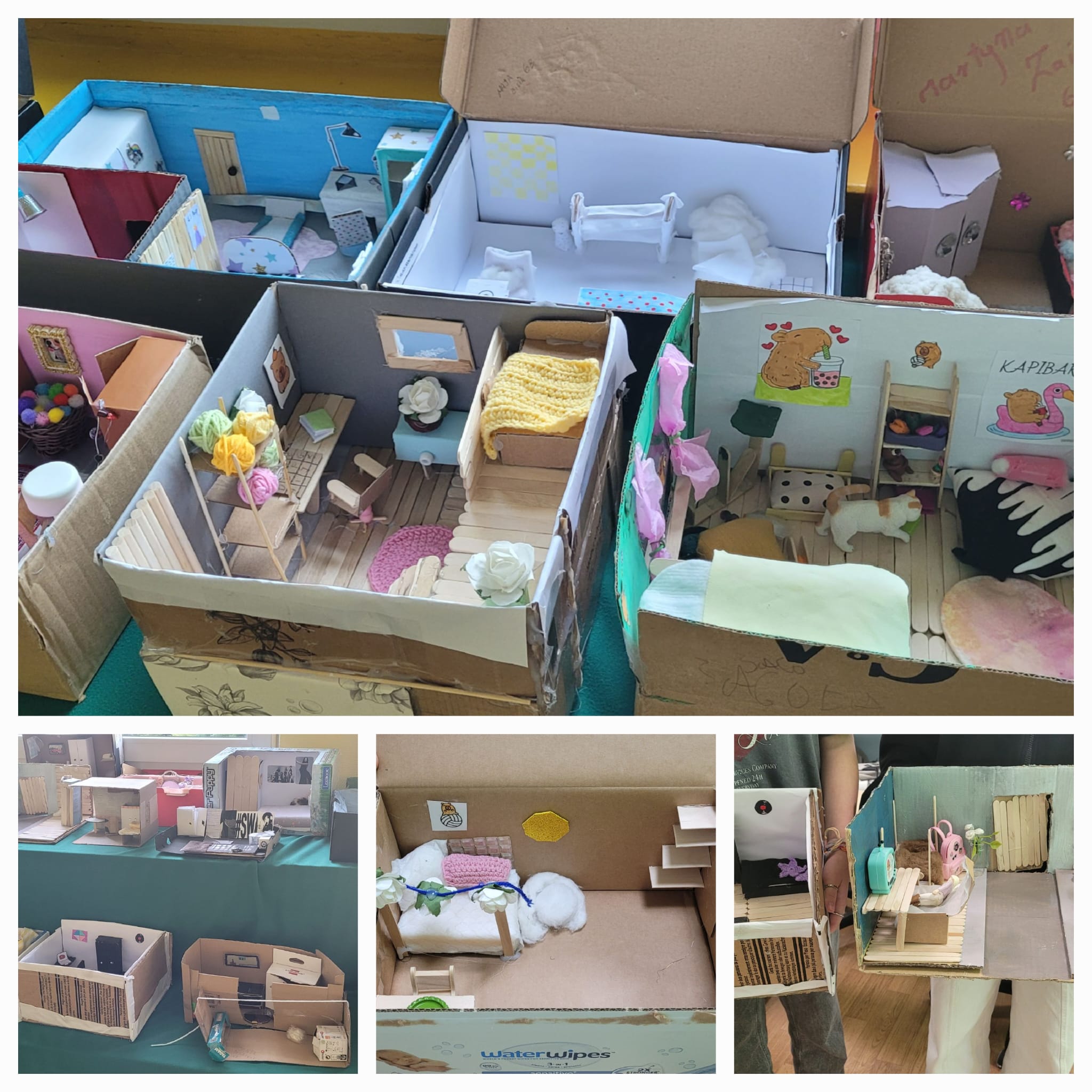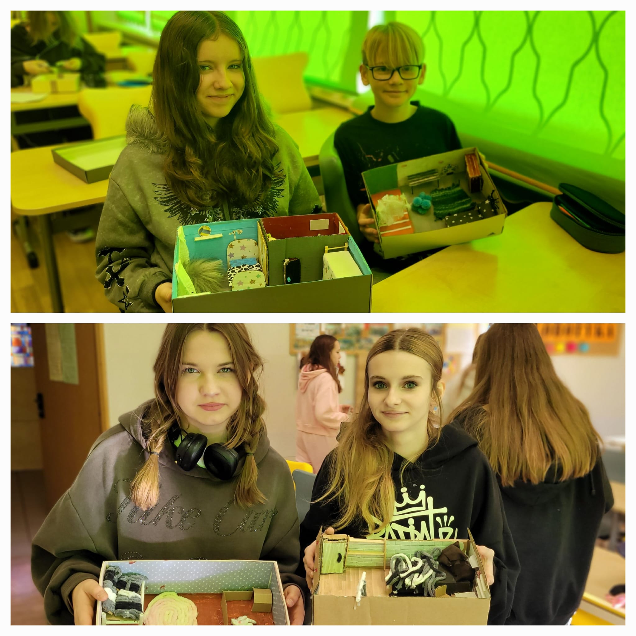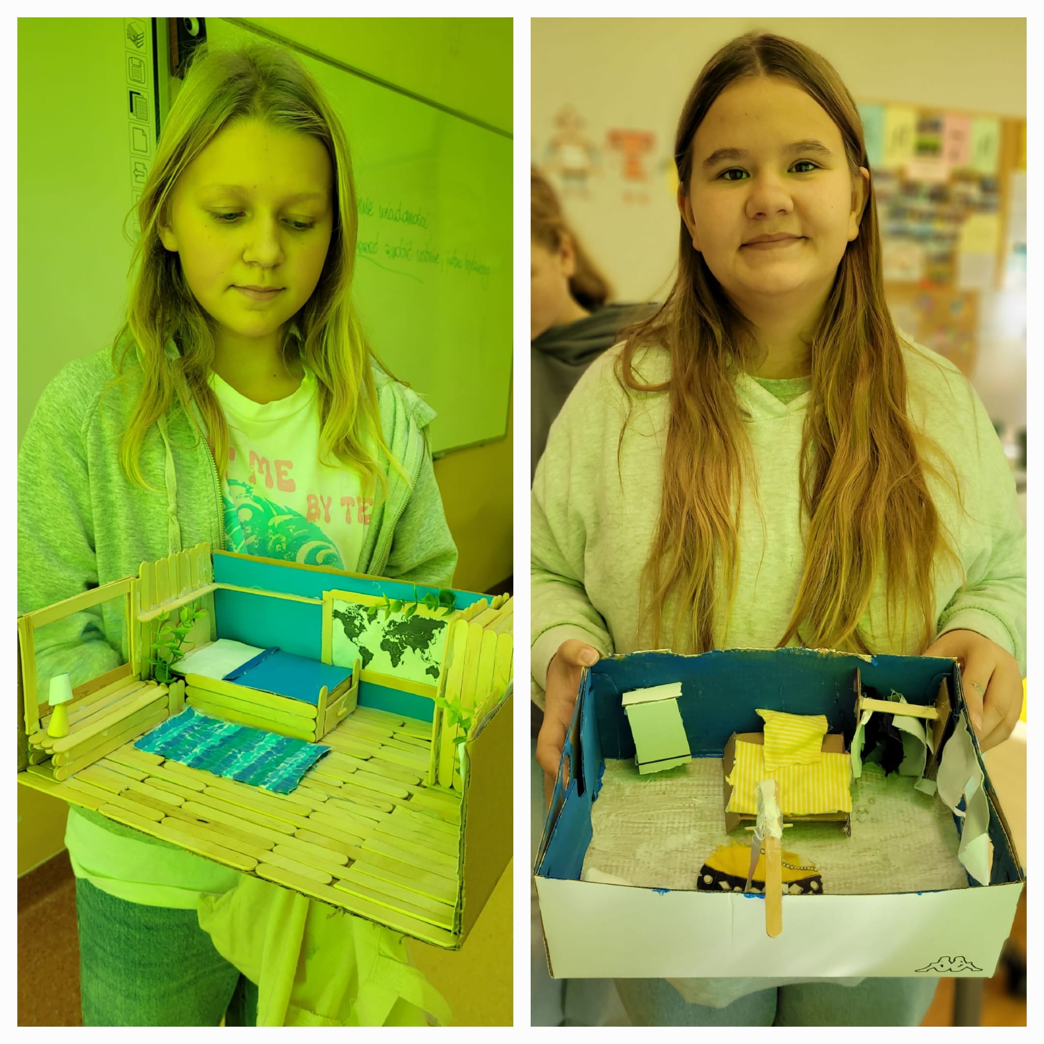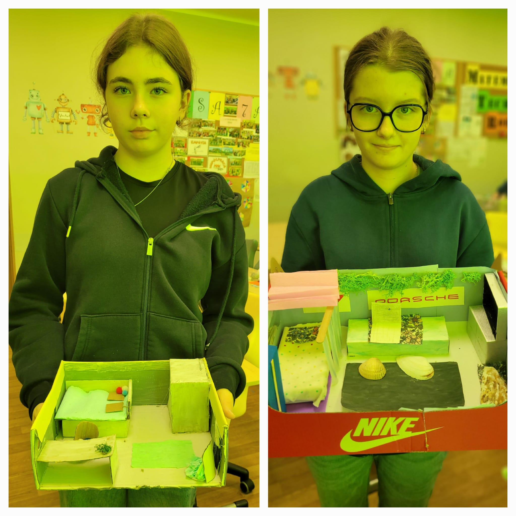 Uczniowie klas szóstych zakończyli właśnie prace nad kolejnym projektem technicznym. Tym razem każdy z nich indywidualnie zaprojektował i wykonał makietę wymarzonego pokoju nastolatka — takiego, jaki chcieliby mieć lub jaki wyobrażają sobie jako idealny. Pomysły okazały się niezwykle różnorodne: od pokoi pełnych kolorów i nowoczesnych mebli, przez przestrzenie sportowe, muzyczne czy gamingowe, aż po minimalistyczne, spokojne wnętrza. W makietach pojawiły się łóżka, biurka, regały, oświetlenie, a nawet najdrobniejsze dodatki wykonane z kartonu, papieru czy materiałów recyklingowych. Praca nad projektem wymagała wyobraźni, dokładności, cierpliwości i planowania — a uczniowie poradzili sobie z tym doskonale! To był naprawdę kreatywny i inspirujący czas spędzony w sali 109 na lekcjach techniki. Efekty ich pracy prezentują się imponująco — można je podziwiać w holu na parterze szkoły, tuż obok wyjścia na rekreację.