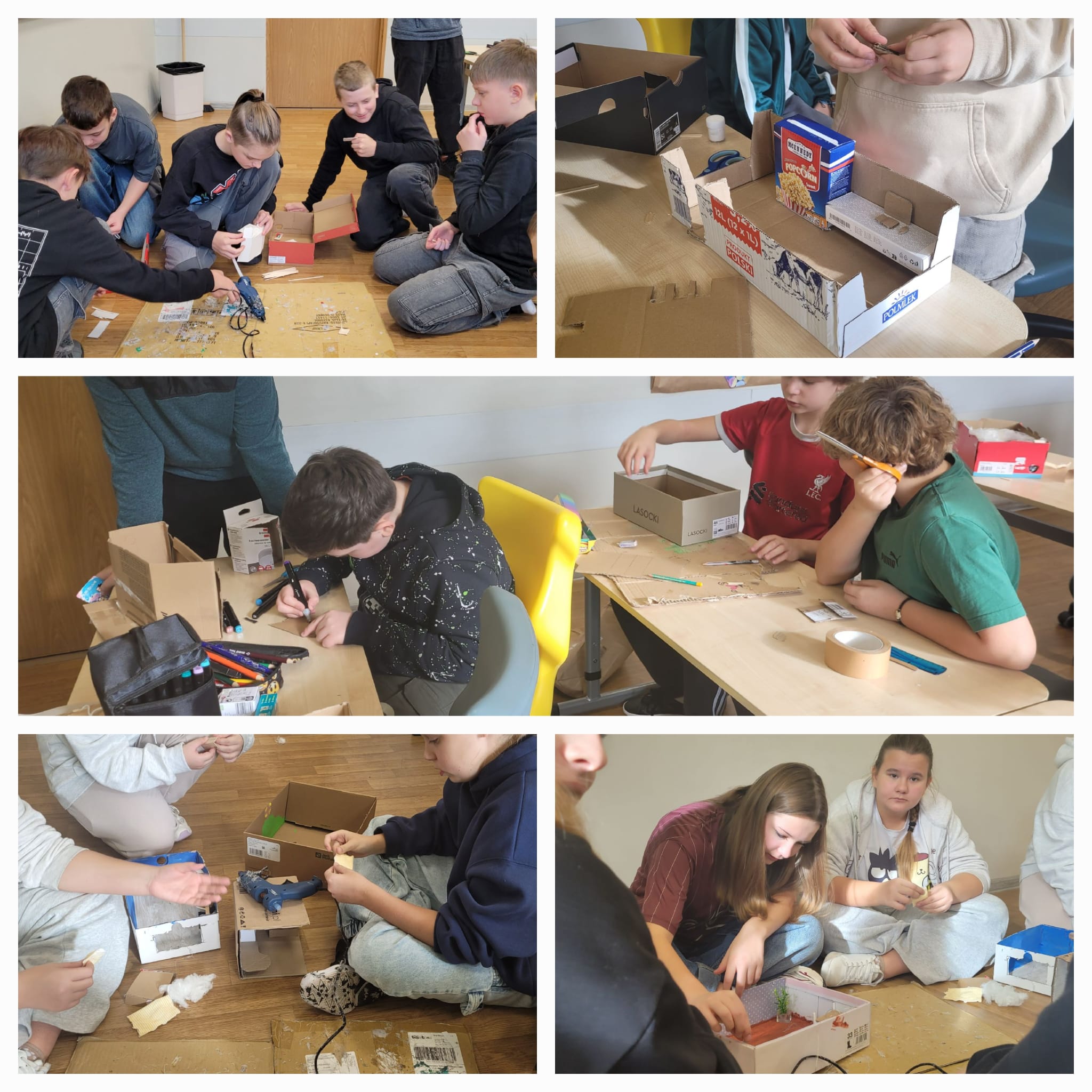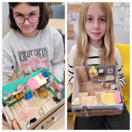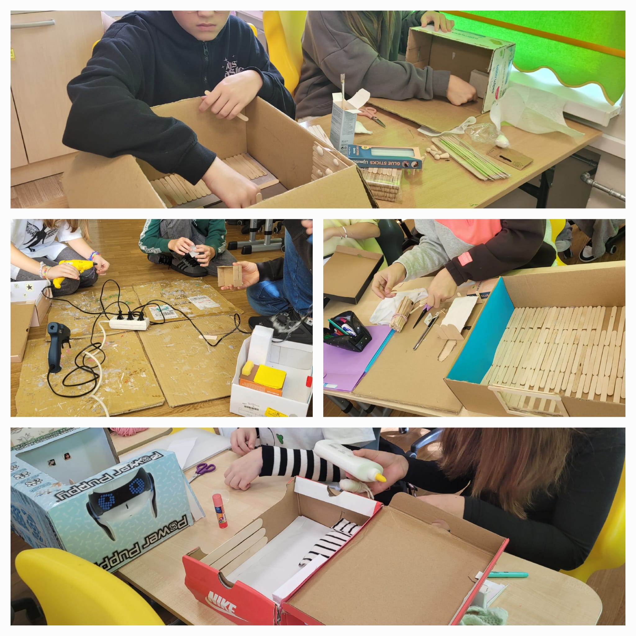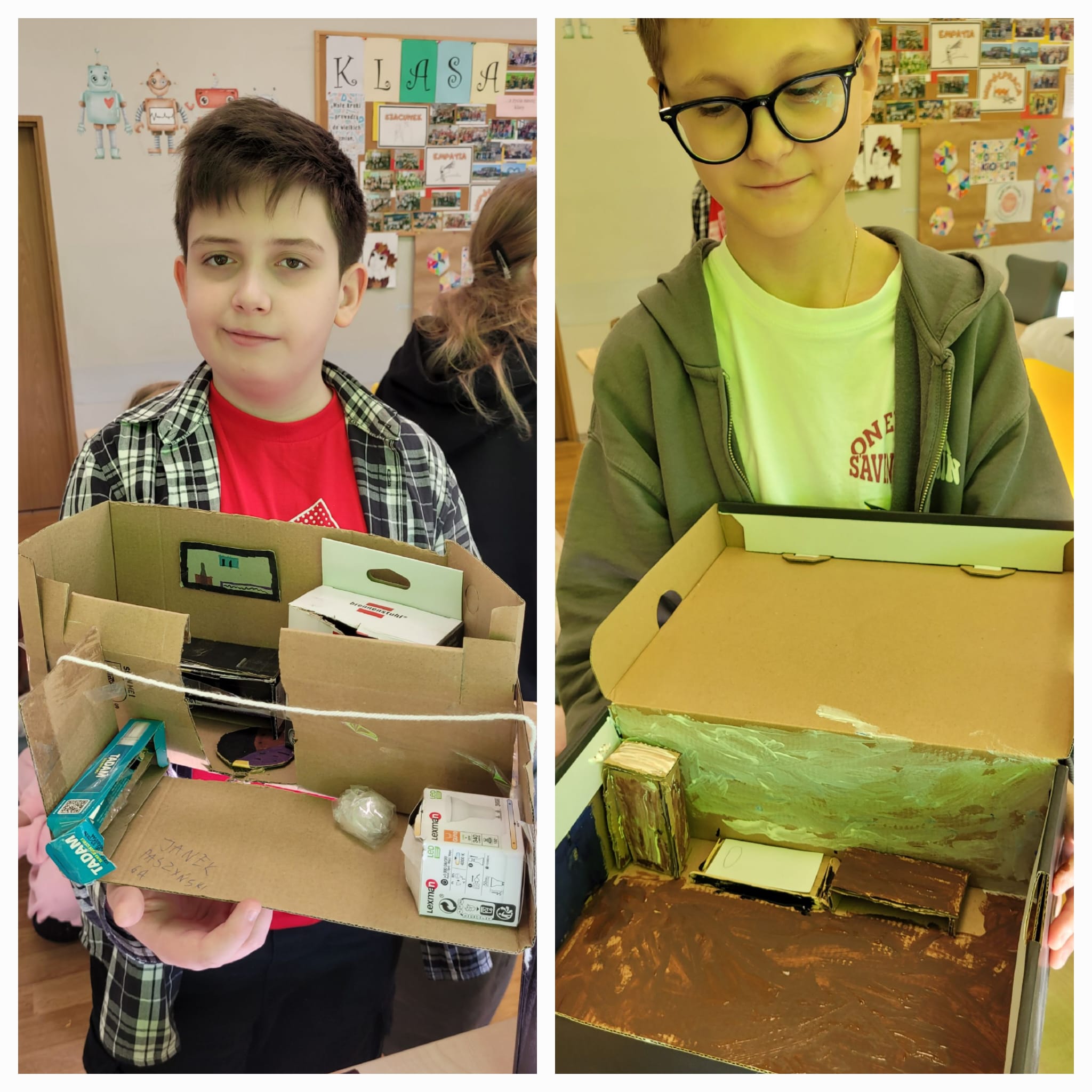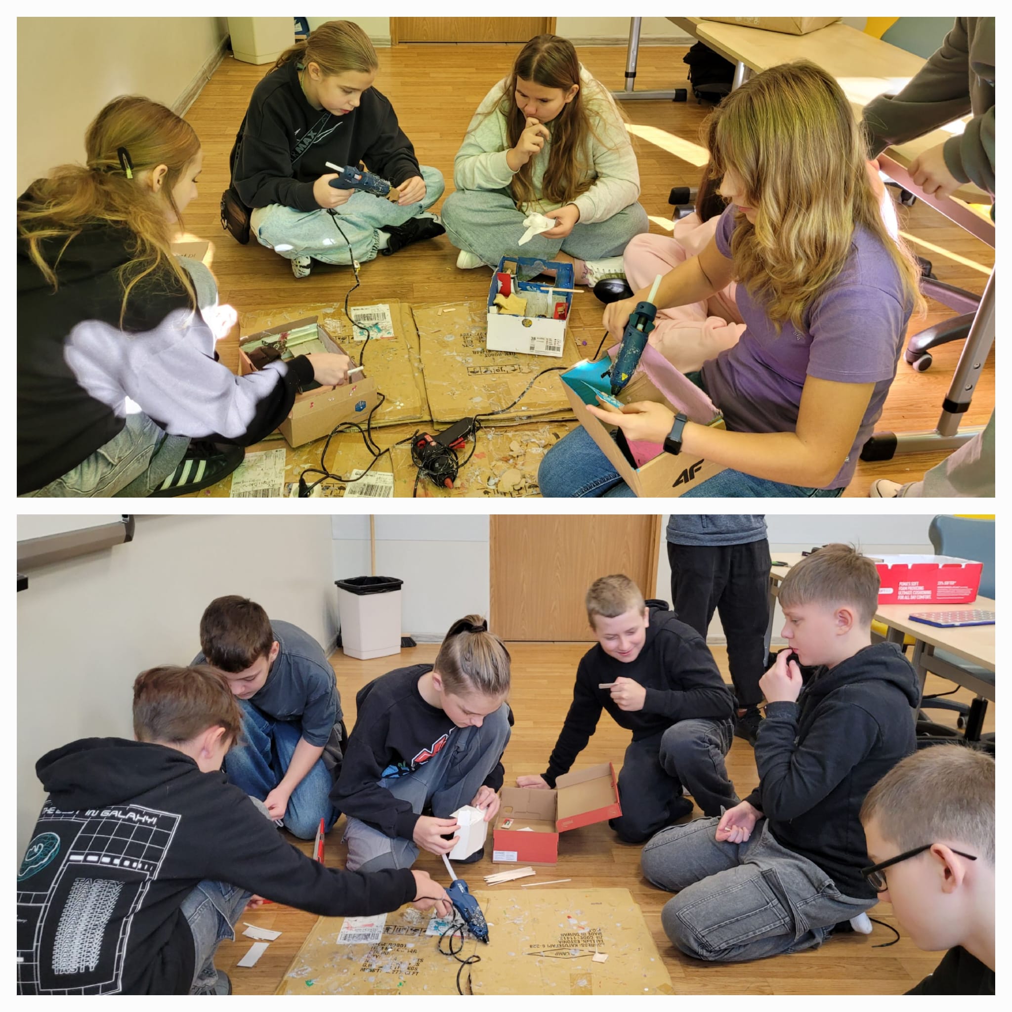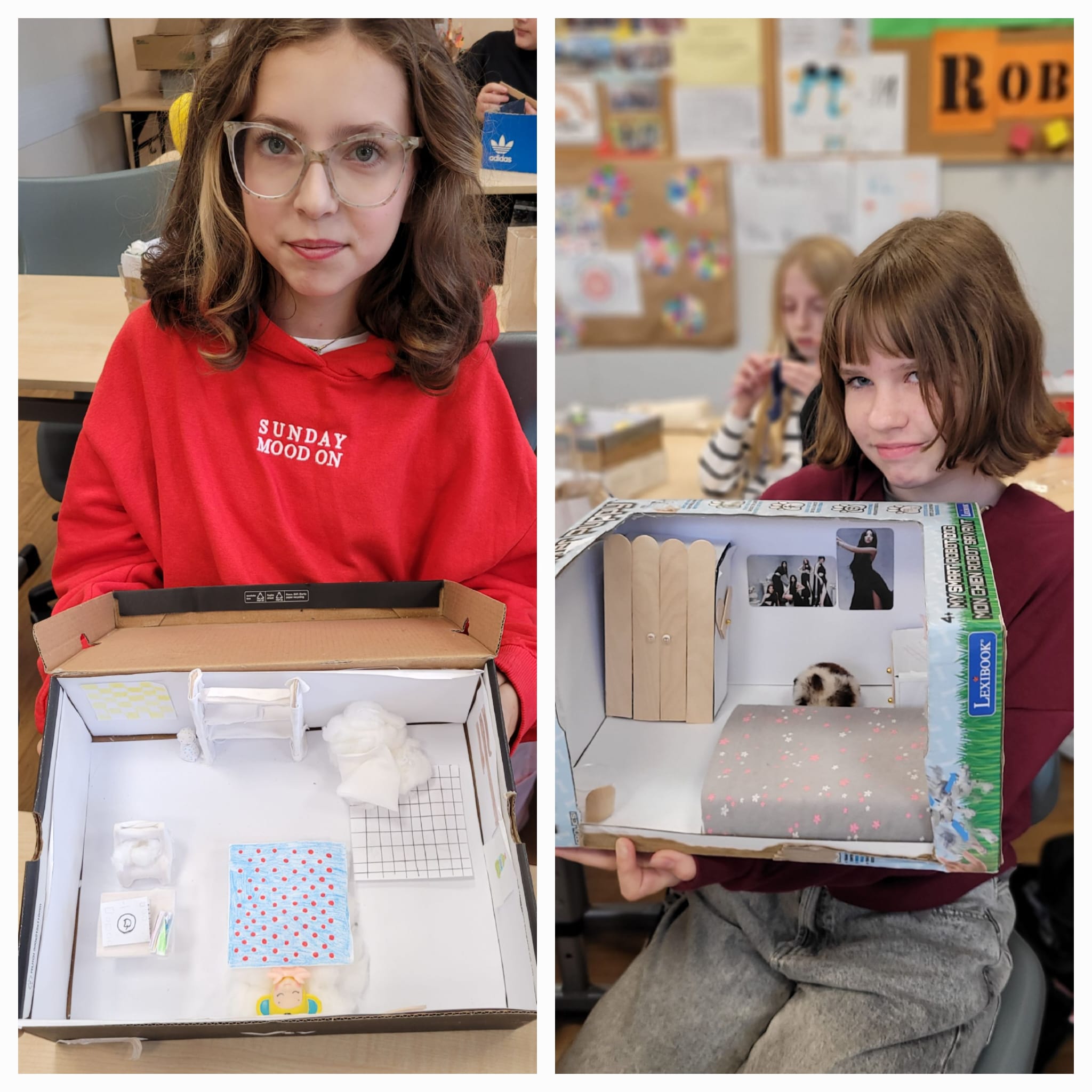 Uczniowie klas szóstych zakończyli właśnie prace nad kolejnym projektem technicznym. Tym razem każdy z nich indywidualnie zaprojektował i wykonał makietę wymarzonego pokoju nastolatka — takiego, jaki chcieliby mieć lub jaki wyobrażają sobie jako idealny. Pomysły okazały się niezwykle różnorodne: od pokoi pełnych kolorów i nowoczesnych mebli, przez przestrzenie sportowe, muzyczne czy gamingowe, aż po minimalistyczne, spokojne wnętrza. W makietach pojawiły się łóżka, biurka, regały, oświetlenie, a nawet najdrobniejsze dodatki wykonane z kartonu, papieru czy materiałów recyklingowych. Praca nad projektem wymagała wyobraźni, dokładności, cierpliwości i planowania — a uczniowie poradzili sobie z tym doskonale! To był naprawdę kreatywny i inspirujący czas spędzony w sali 109 na lekcjach techniki. Efekty ich pracy prezentują się imponująco — można je podziwiać w holu na parterze szkoły, tuż obok wyjścia na rekreację.