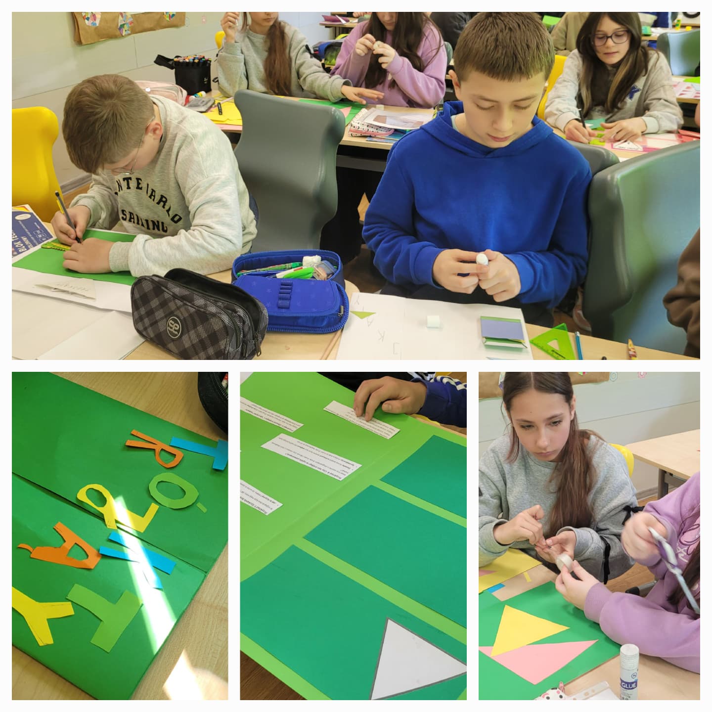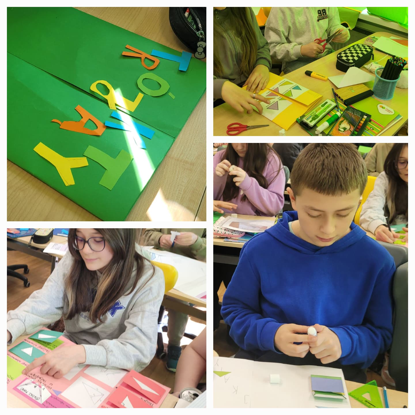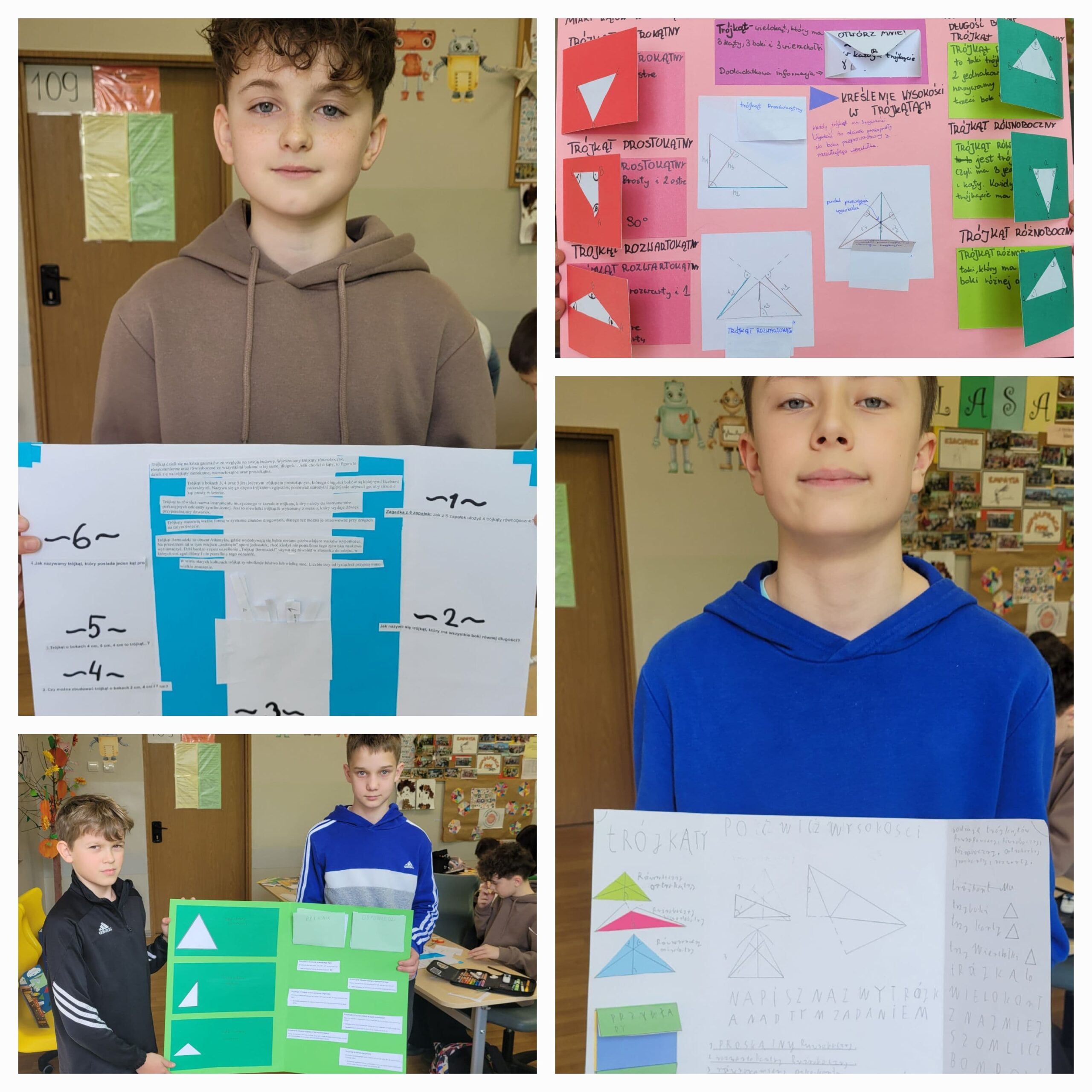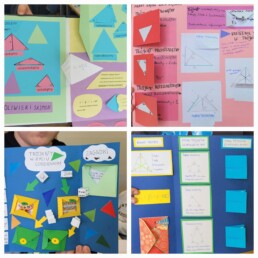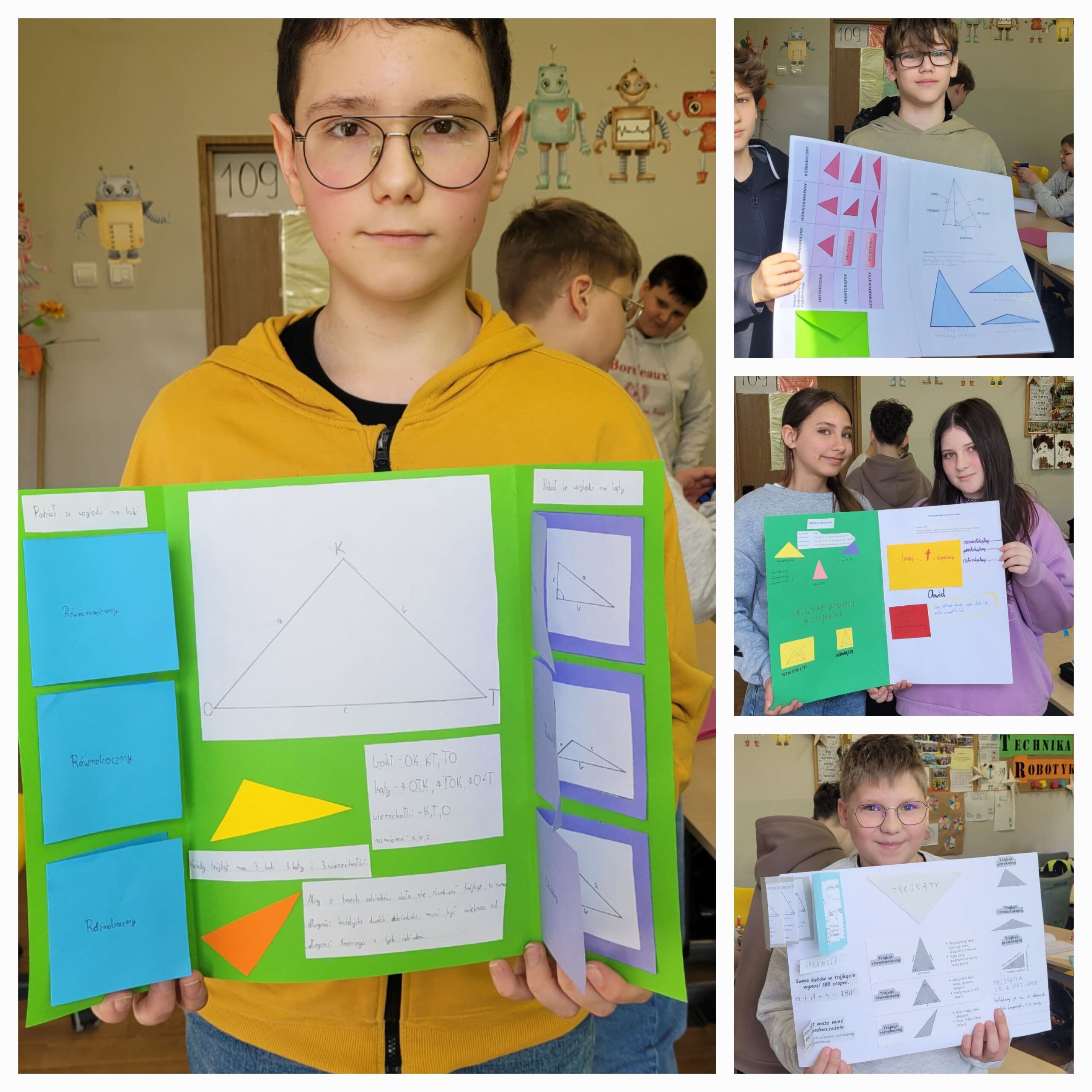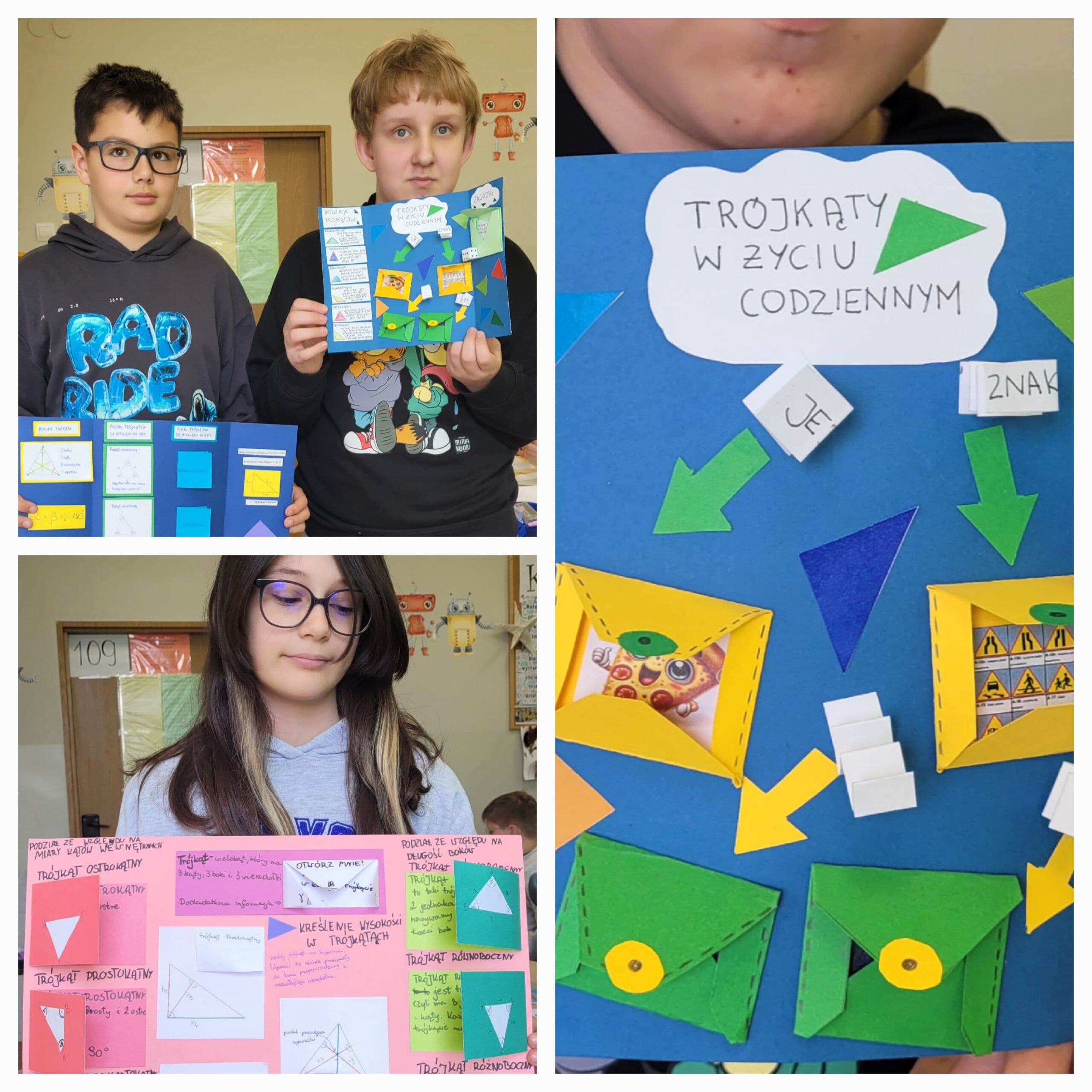 Uczniowie utrwalali wiadomości o trójkątach, tworząc własne lapbooki. Było dużo zaangażowania, pomysłowości i świetnej współpracy 💡