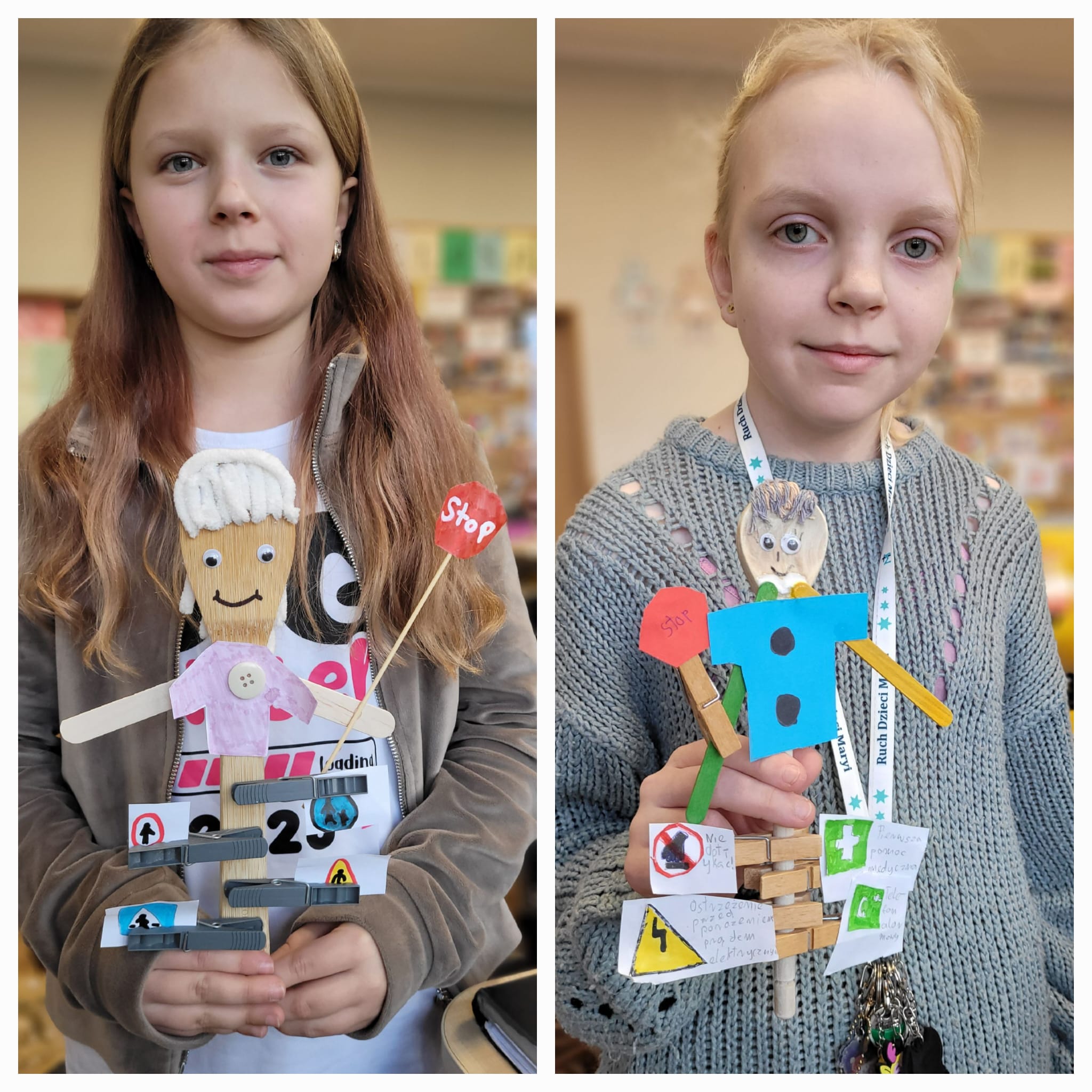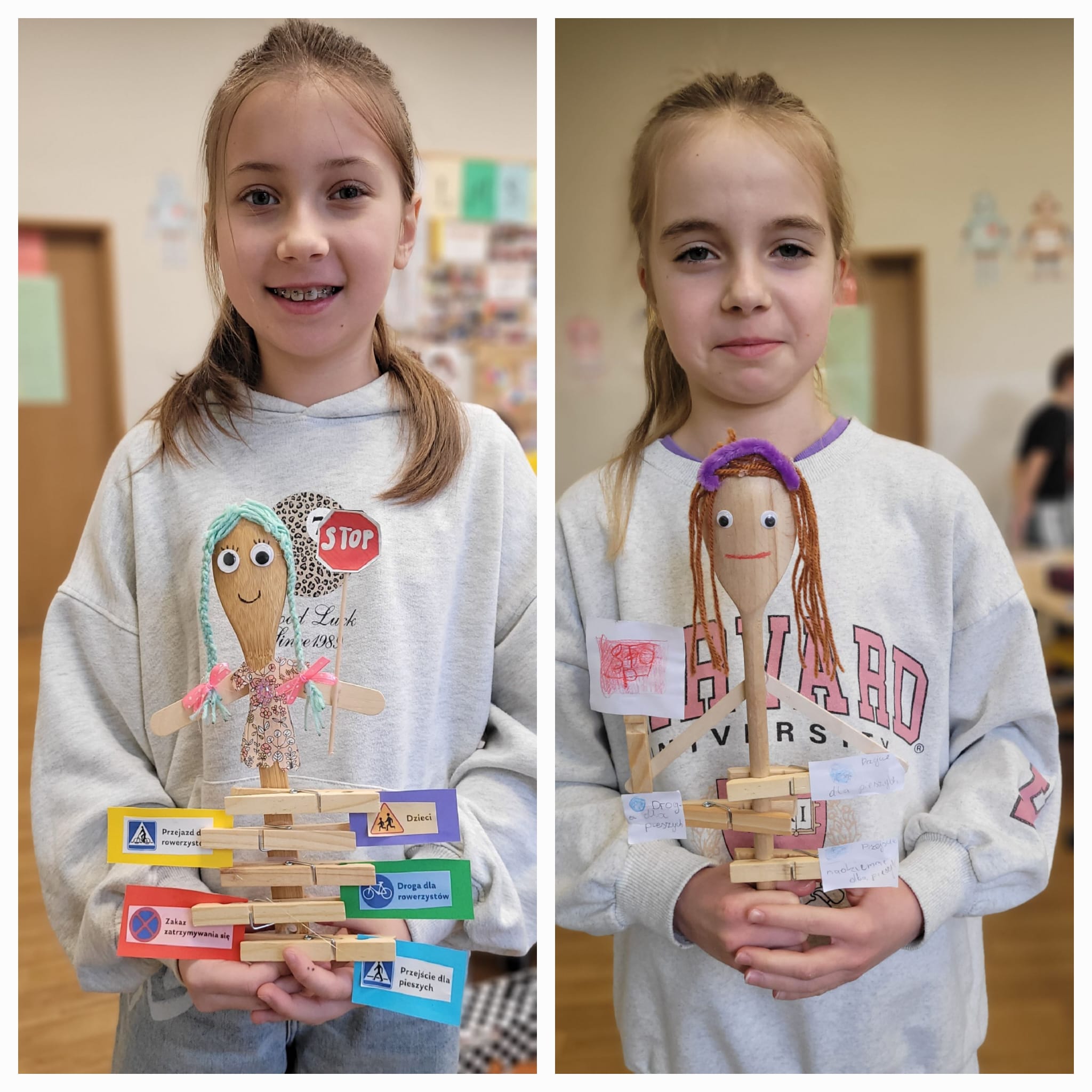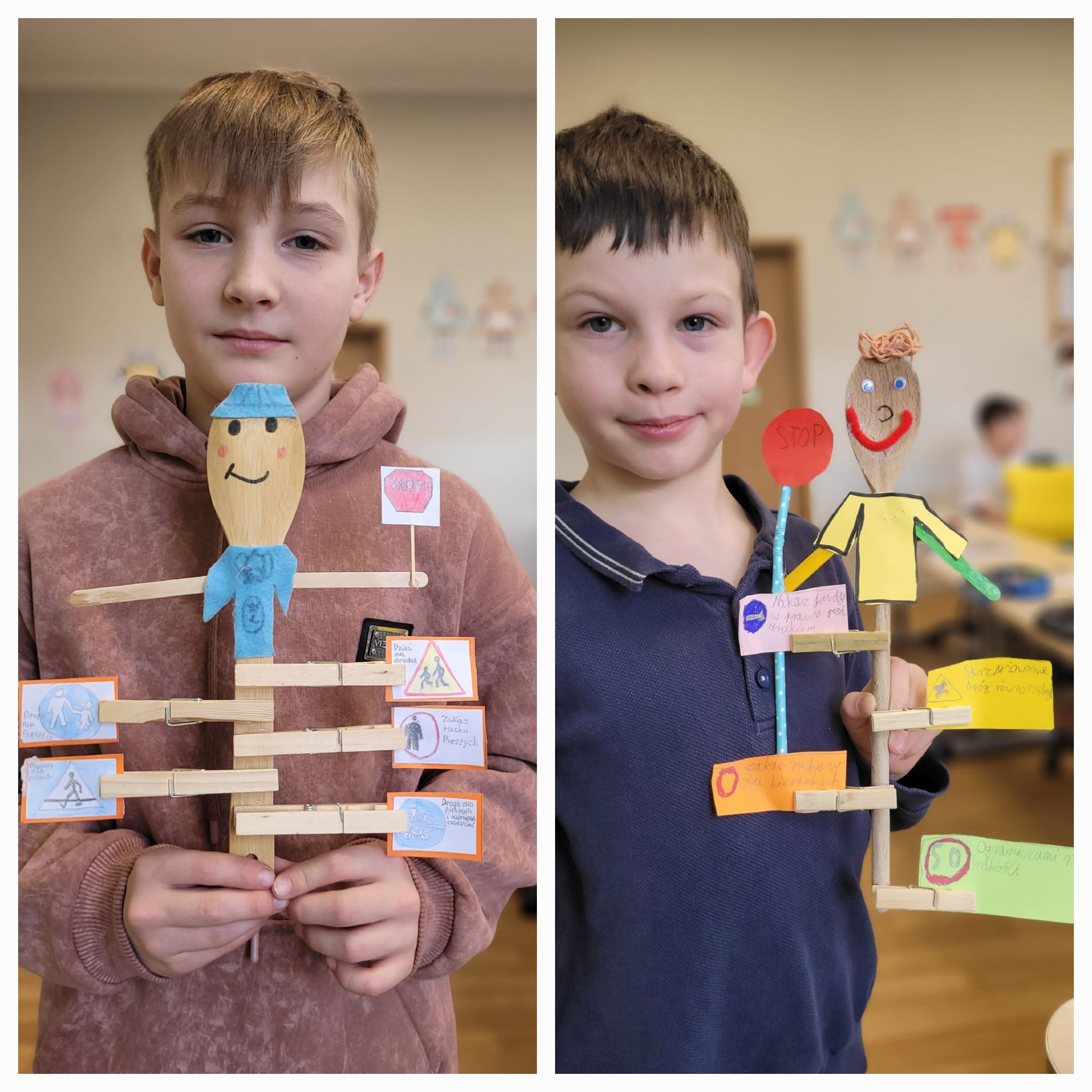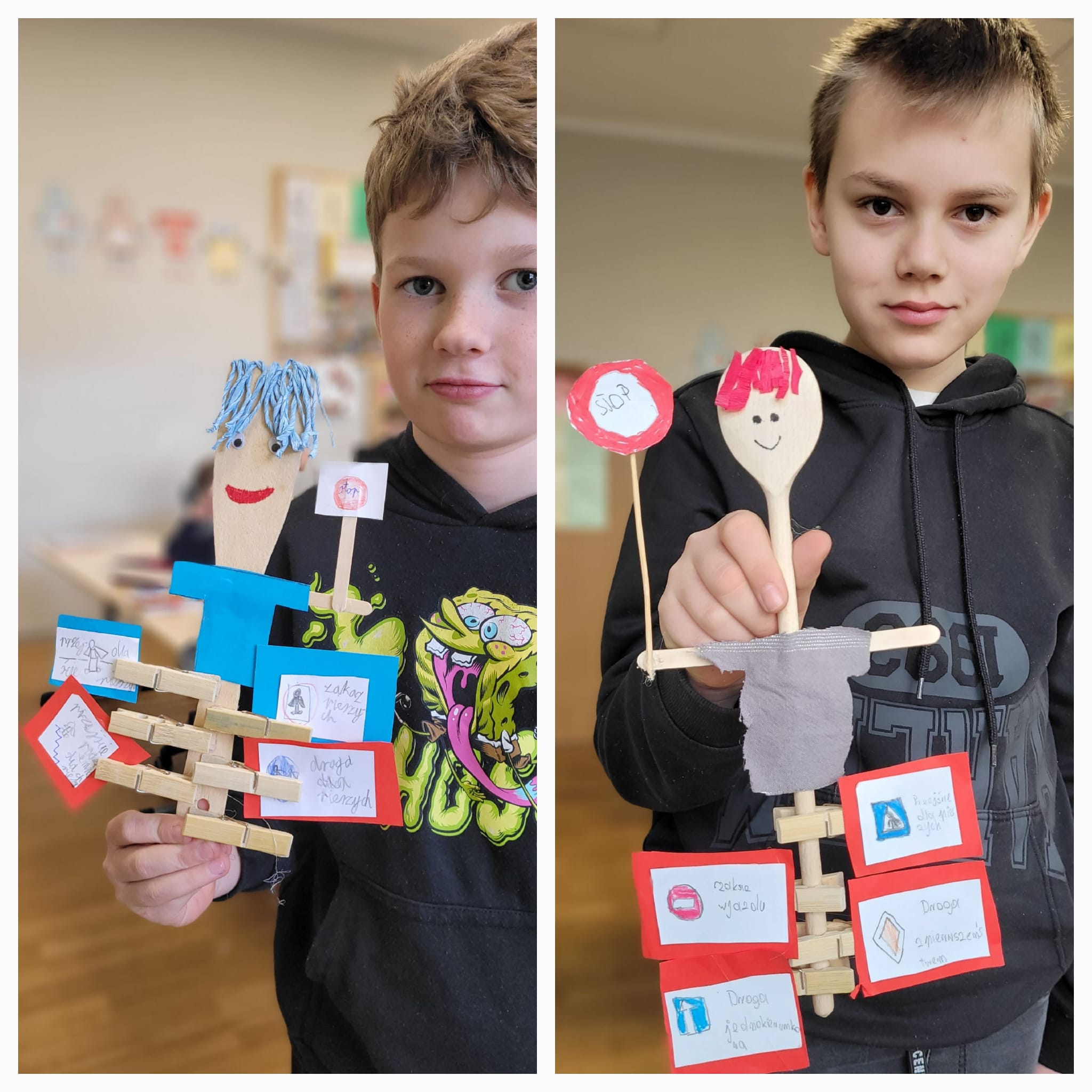 Uczniowie wykazali się kreatywnością, cierpliwością oraz bardzo dobrą znajomością znaków drogowych. Do wykonania prac wykorzystali m.in. drewniane łyżki, kolorowy brystol, klamerki do bielizny oraz różnorodne materiały plastyczne.