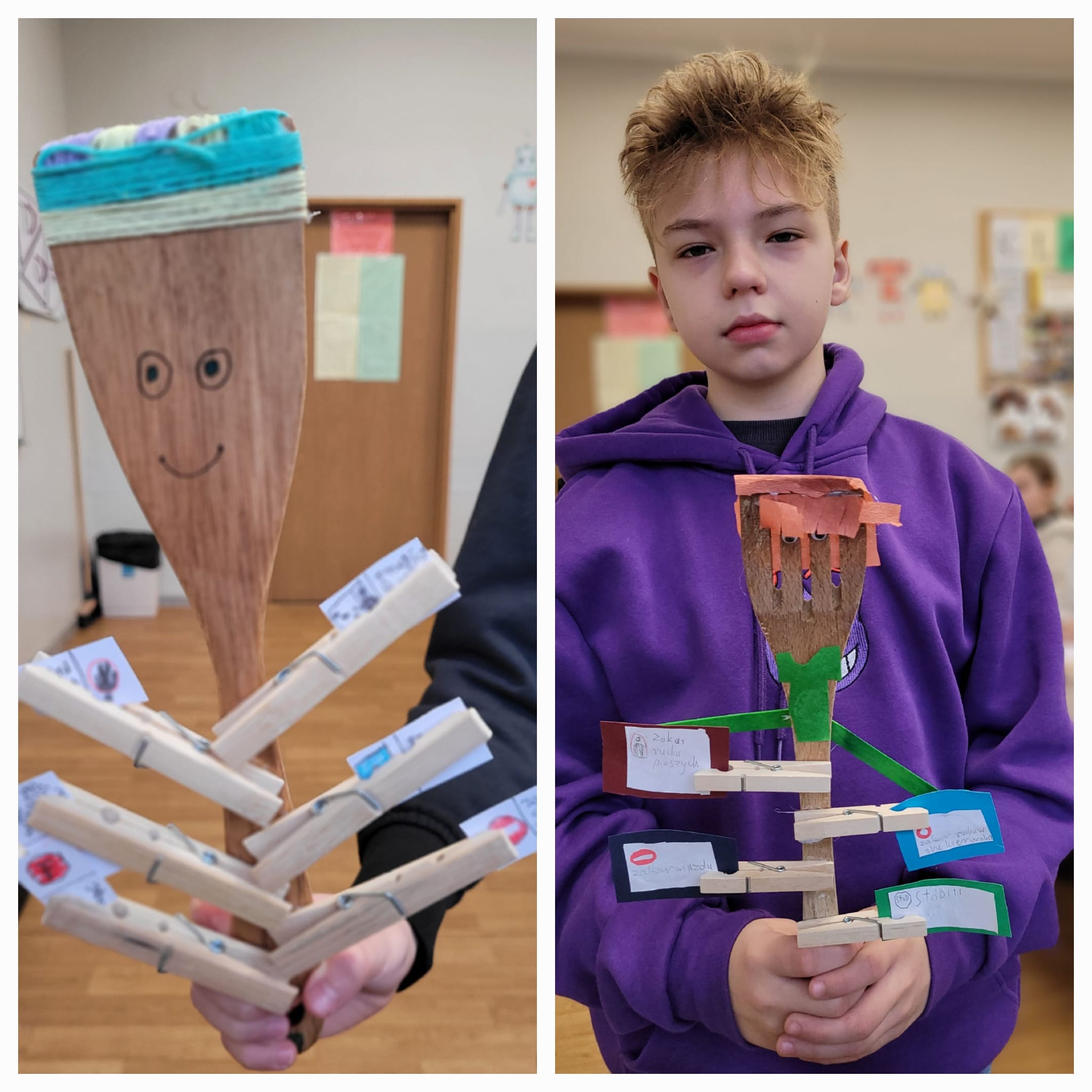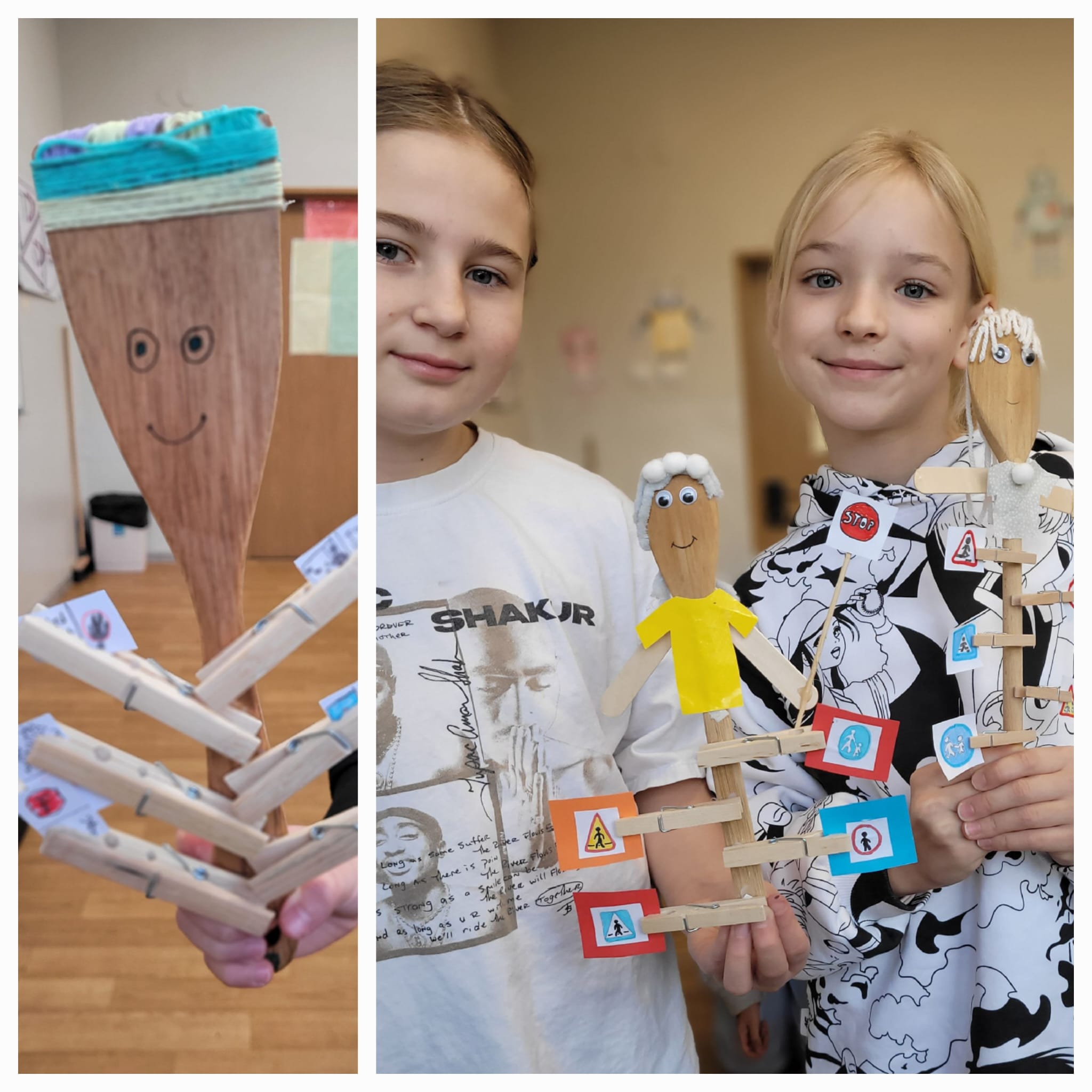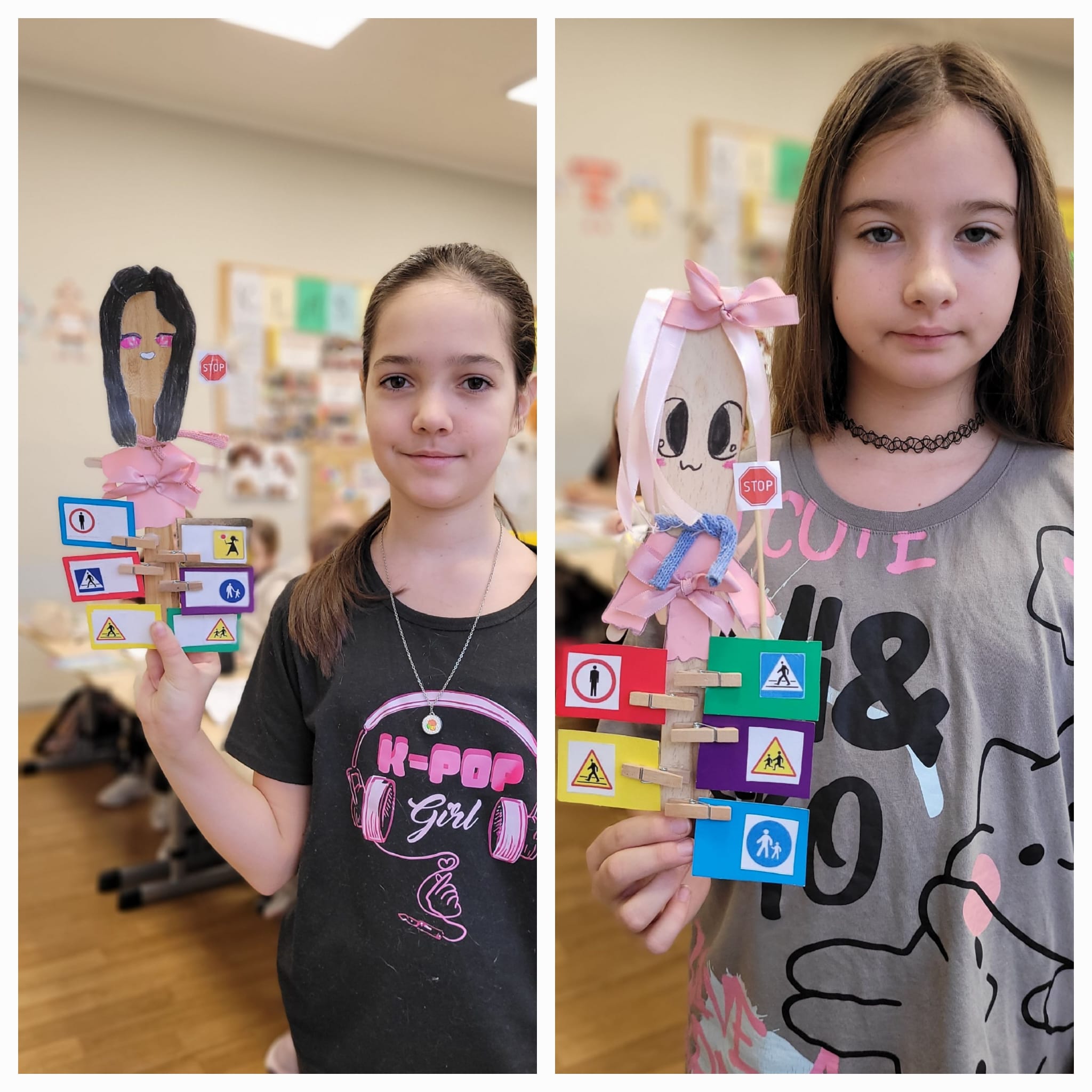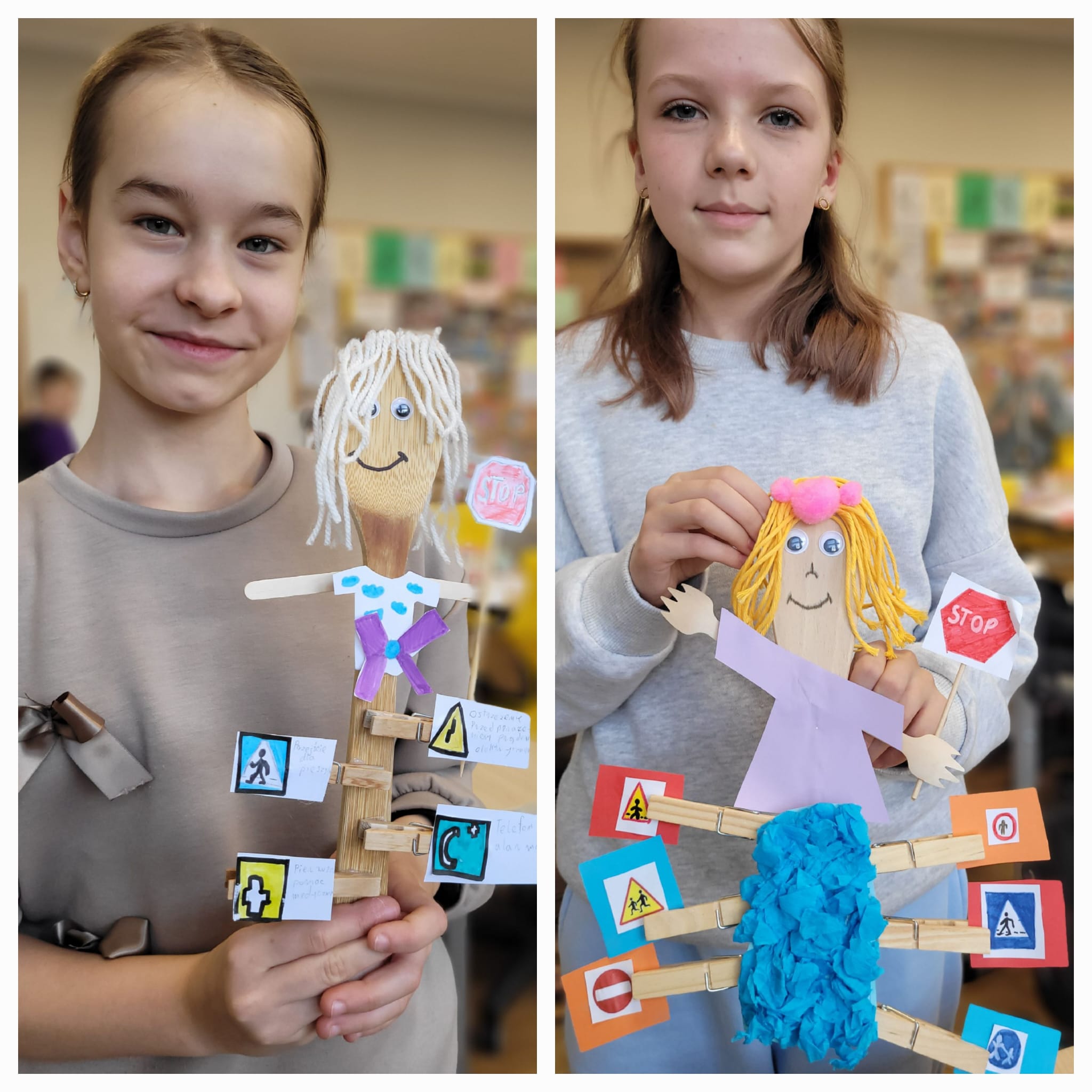 Uczniowie wykazali się kreatywnością, cierpliwością oraz bardzo dobrą znajomością znaków drogowych. Do wykonania prac wykorzystali m.in. drewniane łyżki, kolorowy brystol, klamerki do bielizny oraz różnorodne materiały plastyczne.