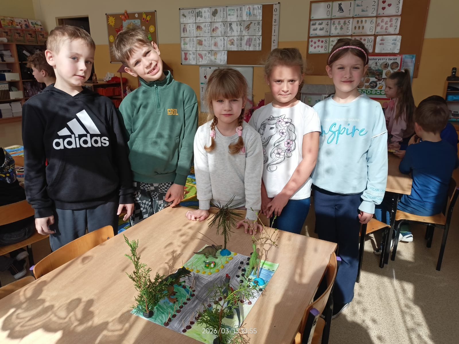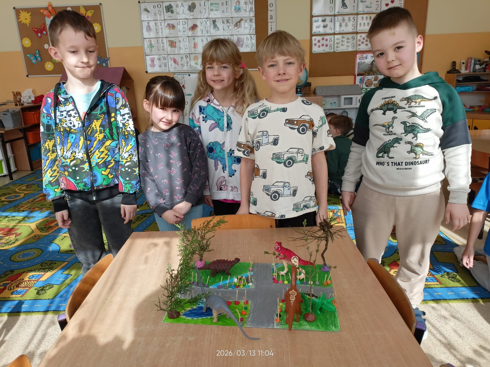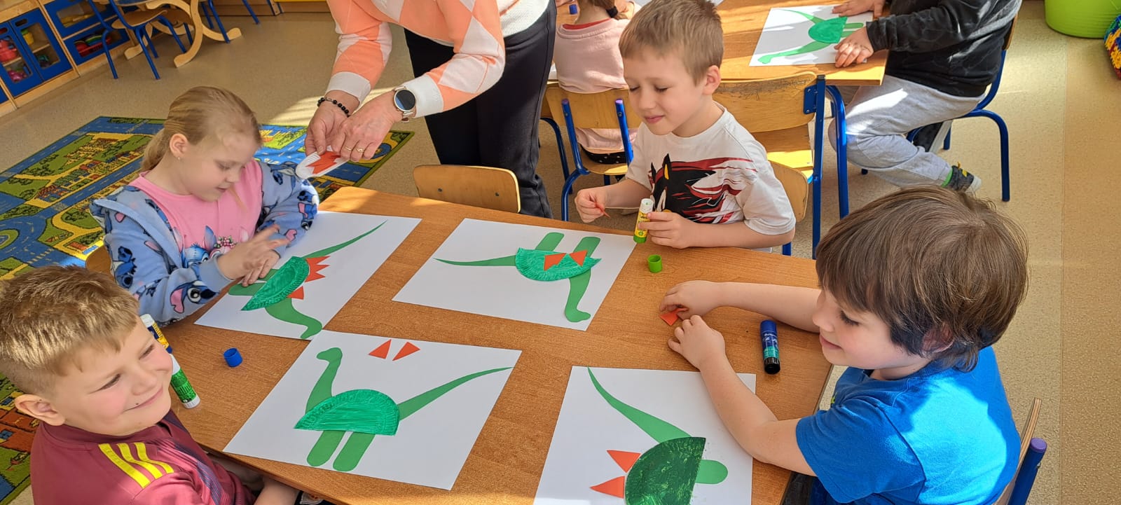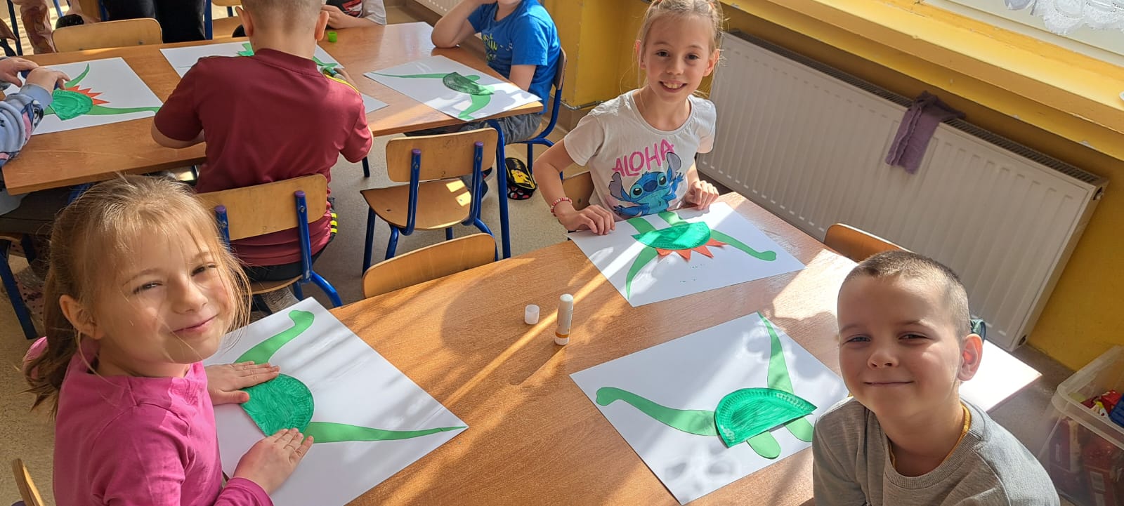 Dzieci poznawały ciekawostki o prehistorycznych gadach, oglądały książki i ilustracje, wykonywały prace plastyczne oraz brały udział w zabawach ruchowych i edukacyjnych związanych z tematem.
