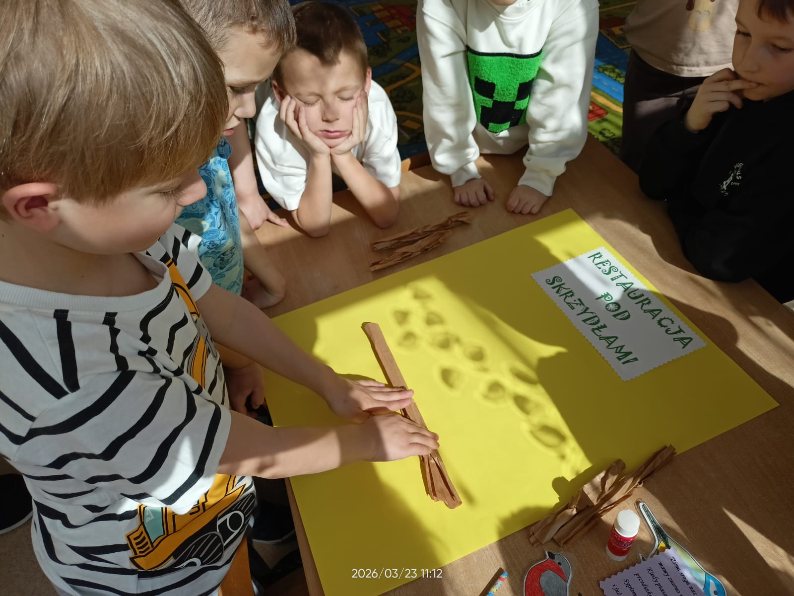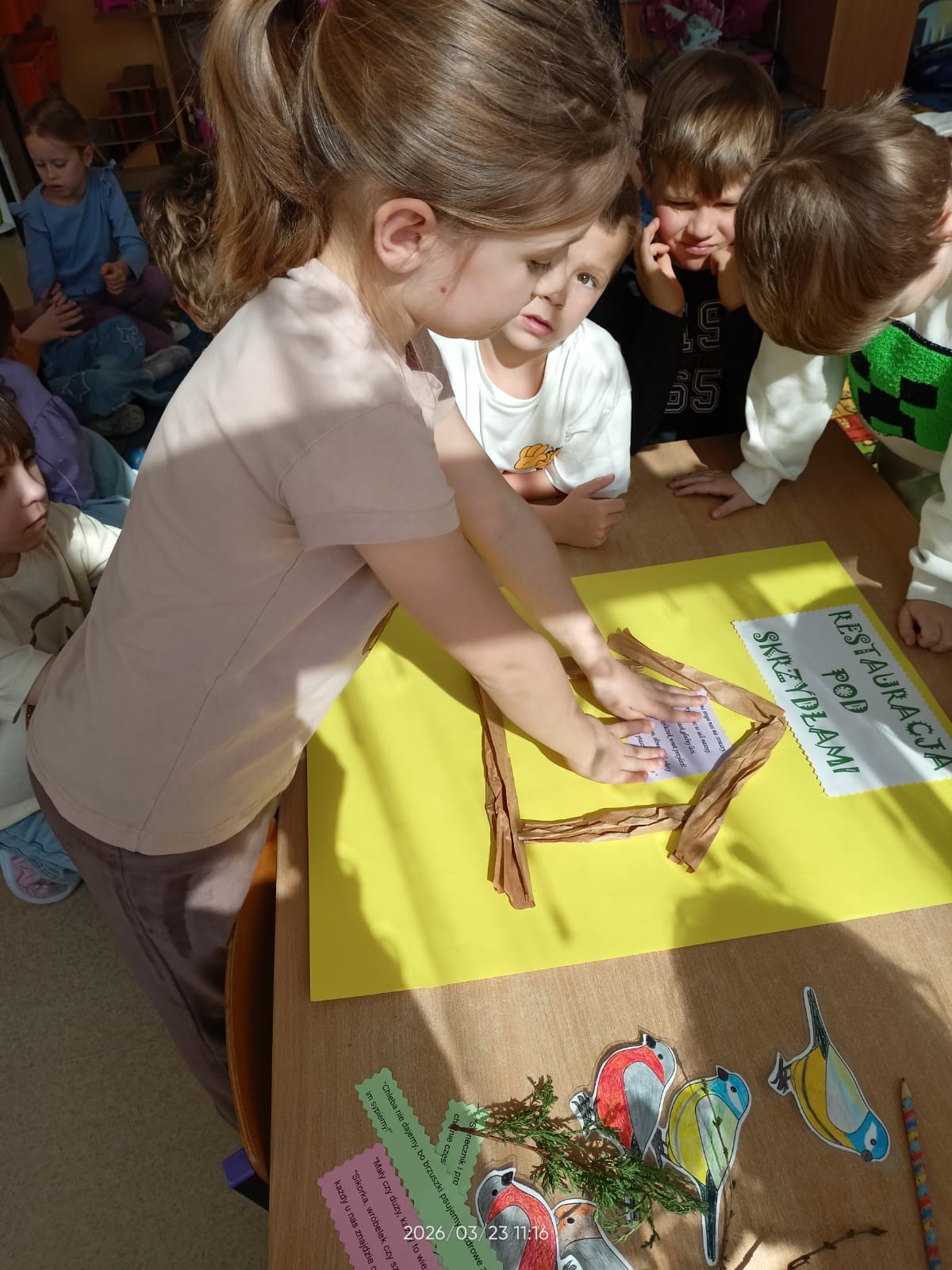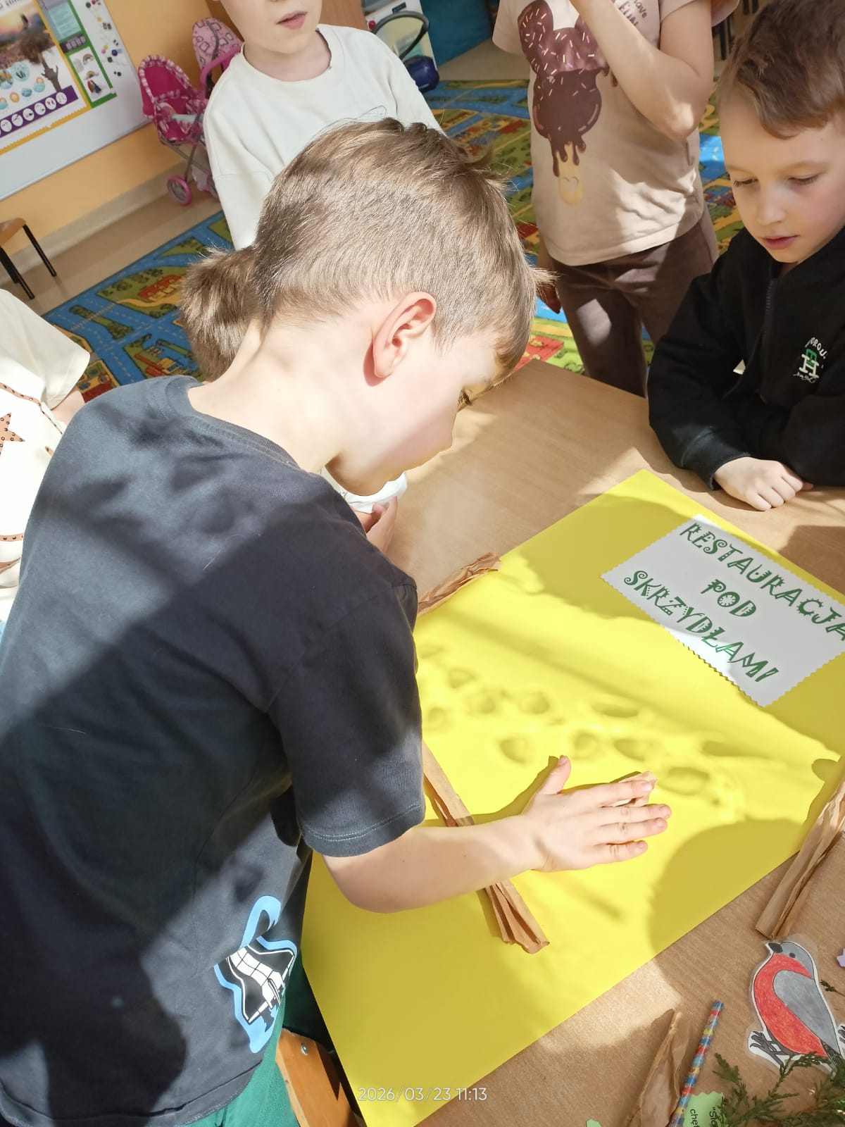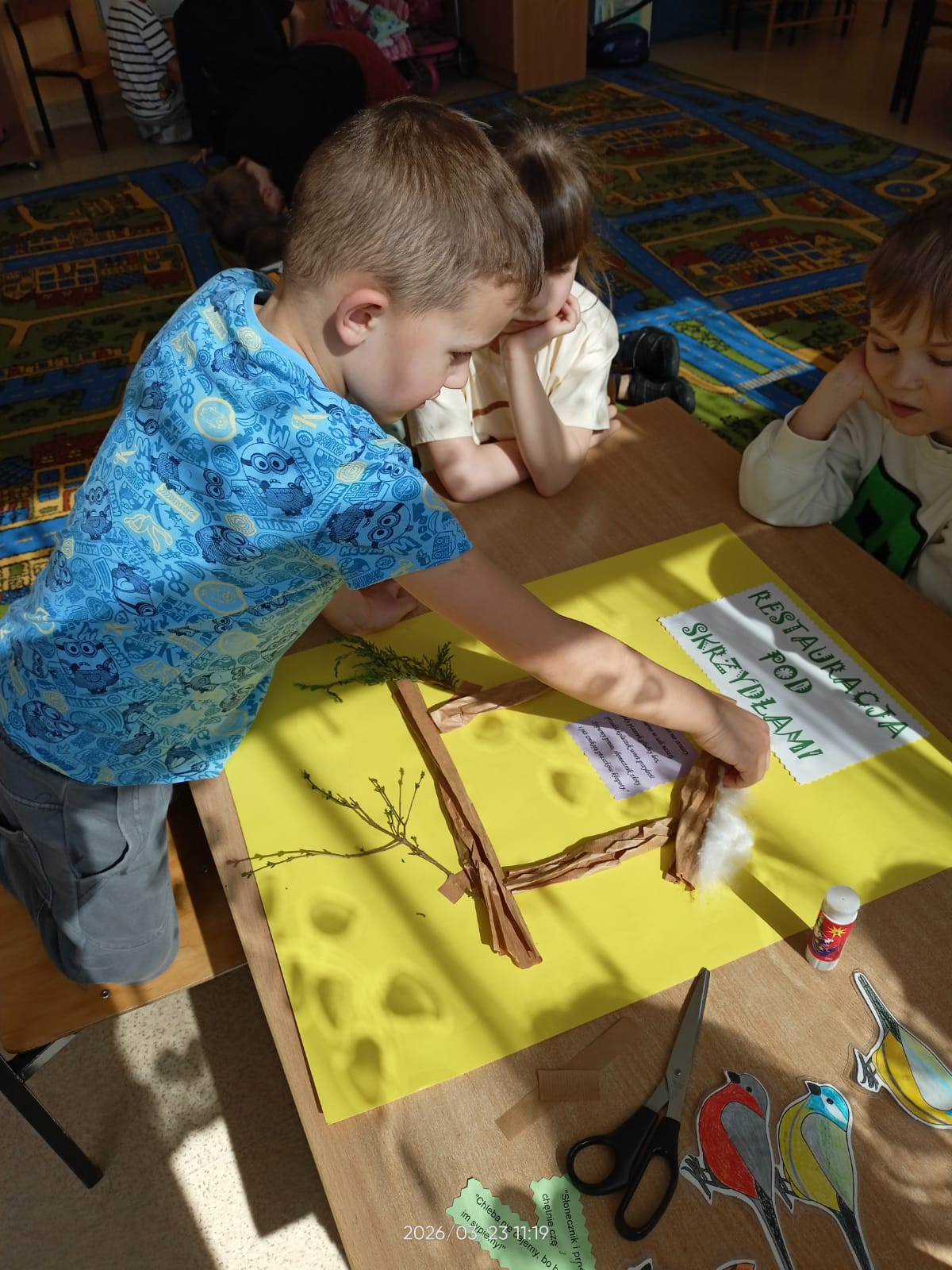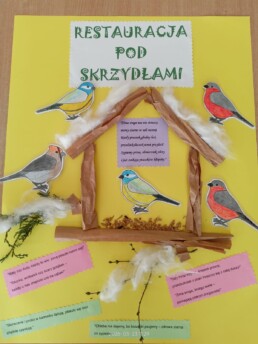 W tym roku szkolnym dzieci z naszych grup zerowych wzięły udział w konkursie “Bądź aktywny z Kuratorem”. W ramach tego konkursu dzieci wykonały plakat na temat “Przedszkolaki pomagają”. Nasze przedszkolaki pomagały całą zimę ptakom. Dzieci bardzo aktywnie włączyły się do dokarmiania ptaków. Przynosiły ziarenka, które dyżurni wysypywali do karmnika zamontowanego na zewnątrz. Uczyły się rozpoznawać ptaki przylatujące do naszej “ptasiej stołówki”. Zakończeniem całej akcji było wykonanie plakatu, na którym dzieci przyczepiły także wymyślone rymowanki. Akcja “Pomagamy ptakom przetrwać zimę” pomogła dzieciom poznać wiele gatunków ptaków. Dzięki niej dzieci stały się wrażliwsze na los zwierząt zimą. Mogły obserwować zachowania ptaków, które odwiedzały karmnik. Wspólne obserwacje oraz wspólne wykonanie plakatu sprzyjały integrowaniu się grupy oraz rozwijaniu zainteresowań.