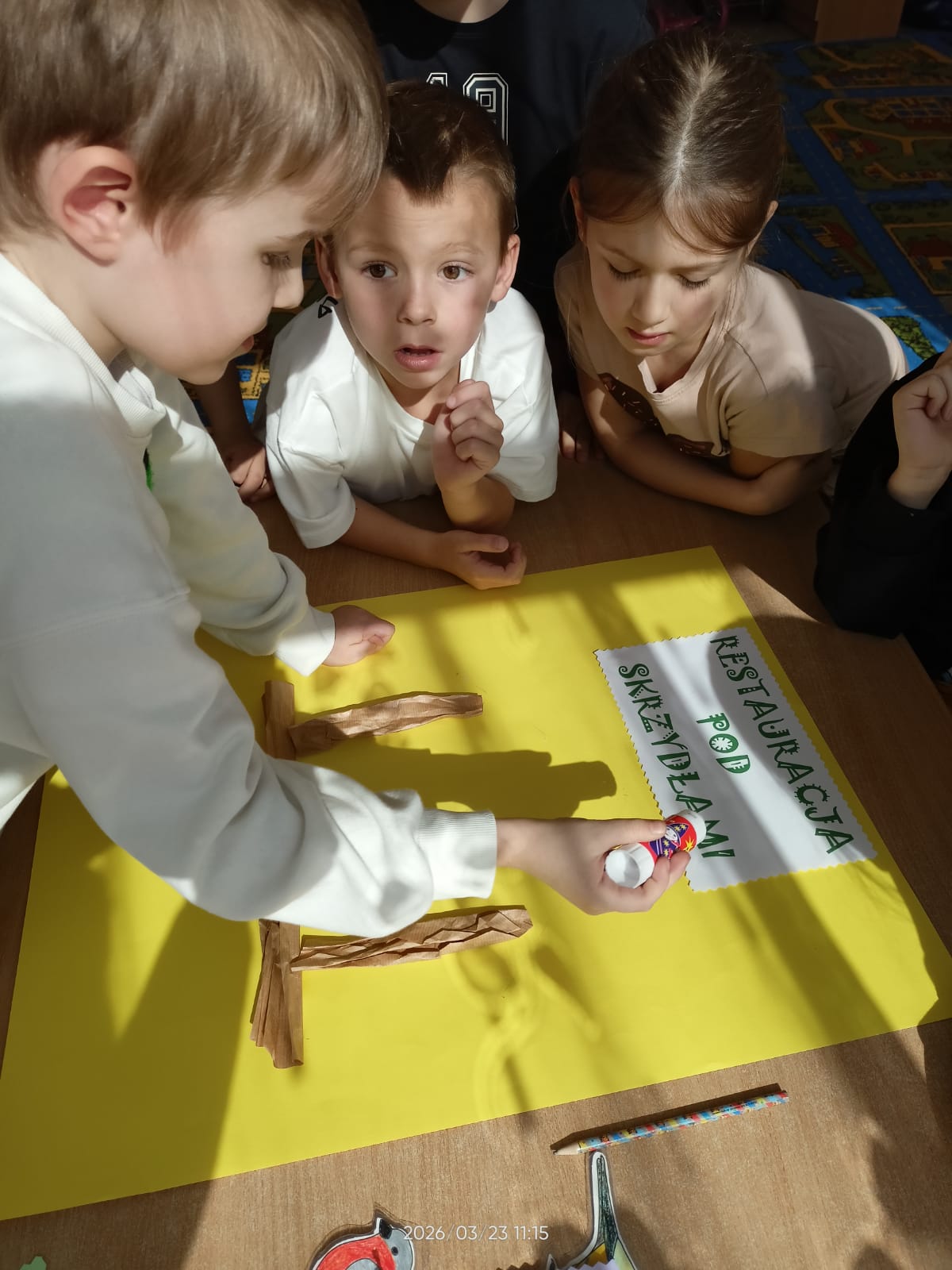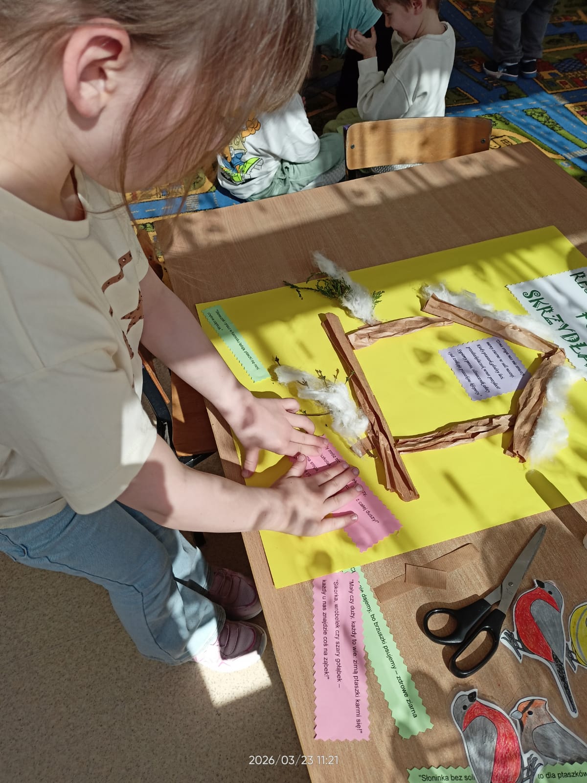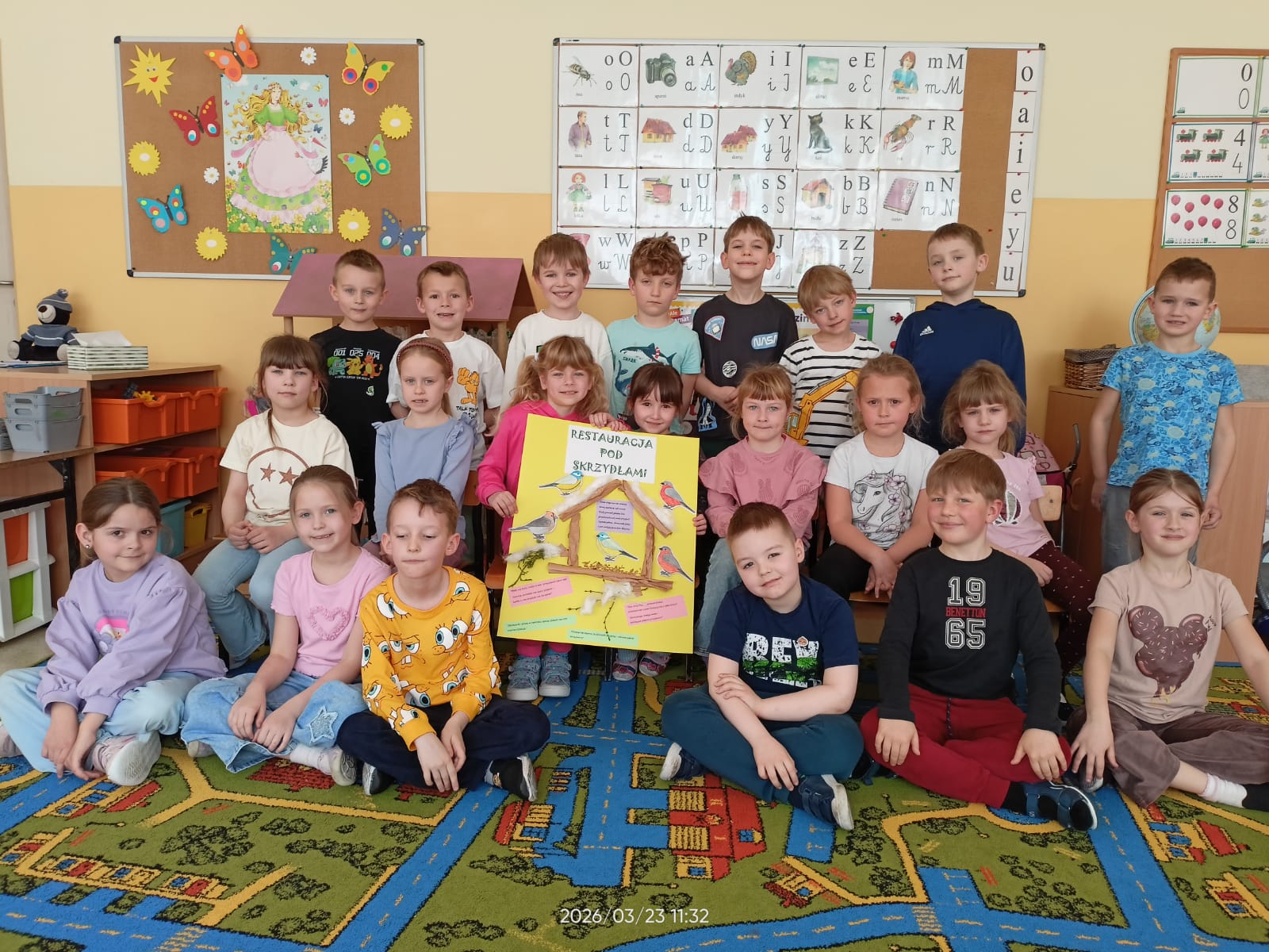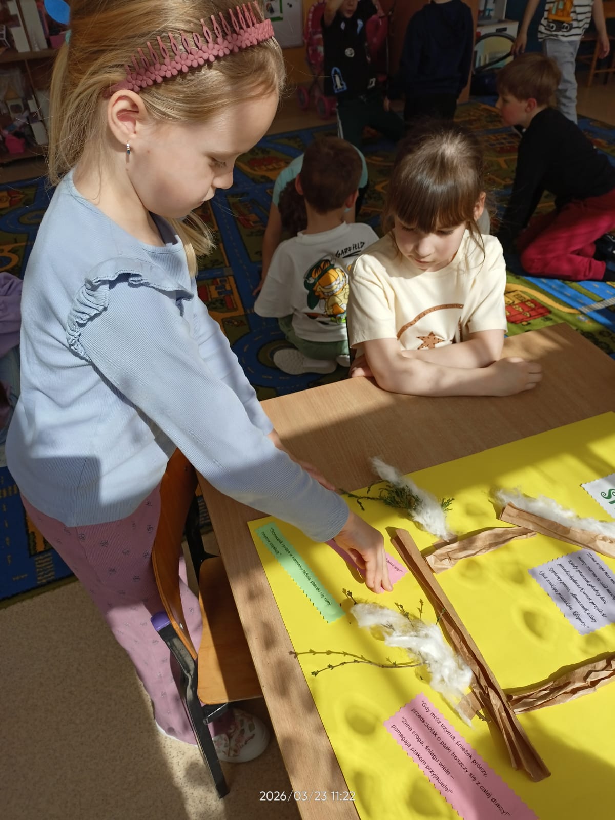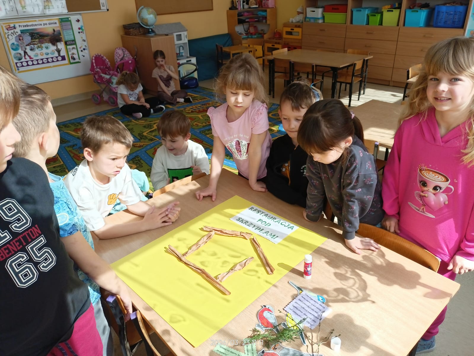W tym roku szkolnym dzieci z naszych grup zerowych wzięły udział w konkursie “Bądź aktywny z Kuratorem”. W ramach tego konkursu dzieci wykonały plakat na temat “Przedszkolaki pomagają”. Nasze przedszkolaki pomagały całą zimę ptakom. Dzieci bardzo aktywnie włączyły się do dokarmiania ptaków. Przynosiły ziarenka, które dyżurni wysypywali do karmnika zamontowanego na zewnątrz. Uczyły się rozpoznawać ptaki przylatujące do naszej “ptasiej stołówki”. Zakończeniem całej akcji było wykonanie plakatu, na którym dzieci przyczepiły także wymyślone rymowanki. Akcja “Pomagamy ptakom przetrwać zimę” pomogła dzieciom poznać wiele gatunków ptaków. Dzięki niej dzieci stały się wrażliwsze na los zwierząt zimą. Mogły obserwować zachowania ptaków, które odwiedzały karmnik. Wspólne obserwacje oraz wspólne wykonanie plakatu sprzyjały integrowaniu się grupy oraz rozwijaniu zainteresowań.