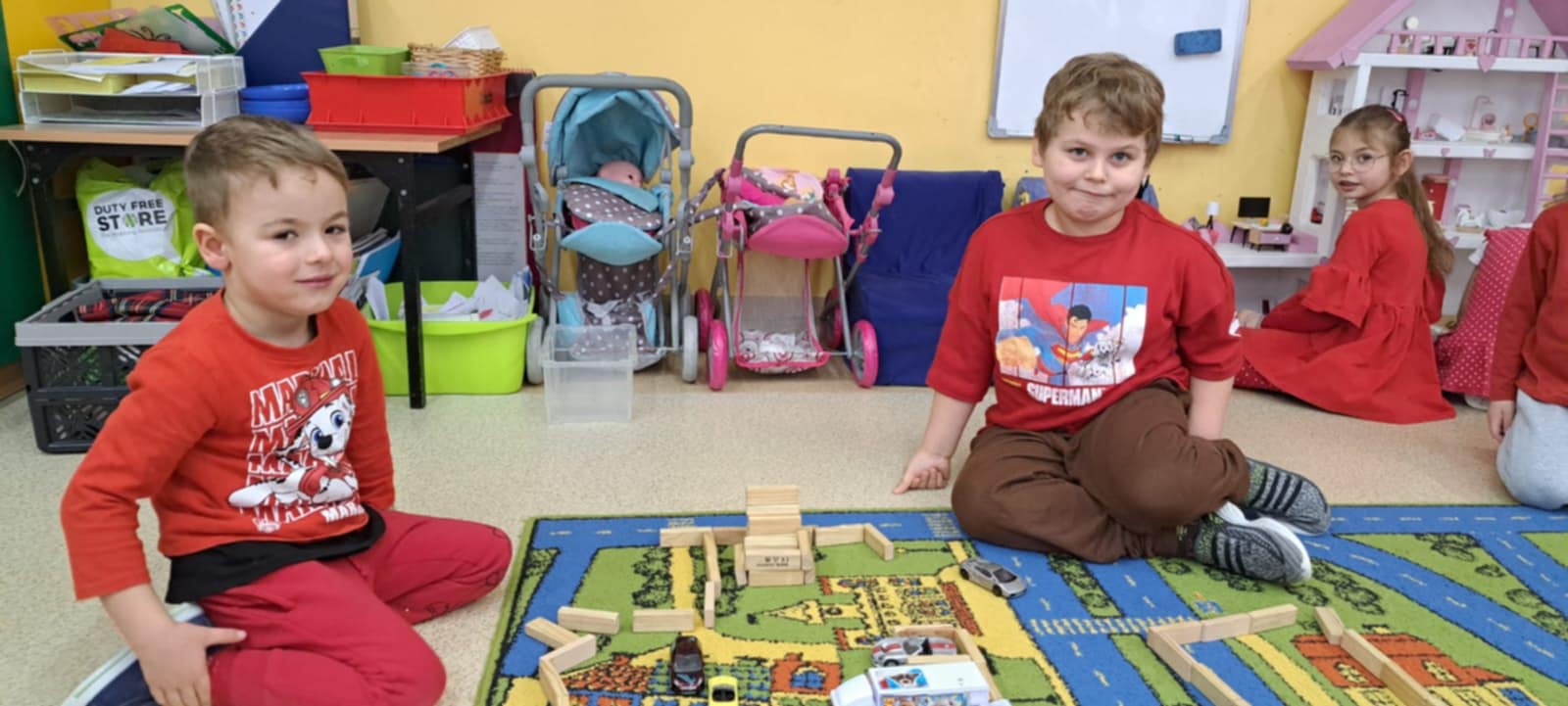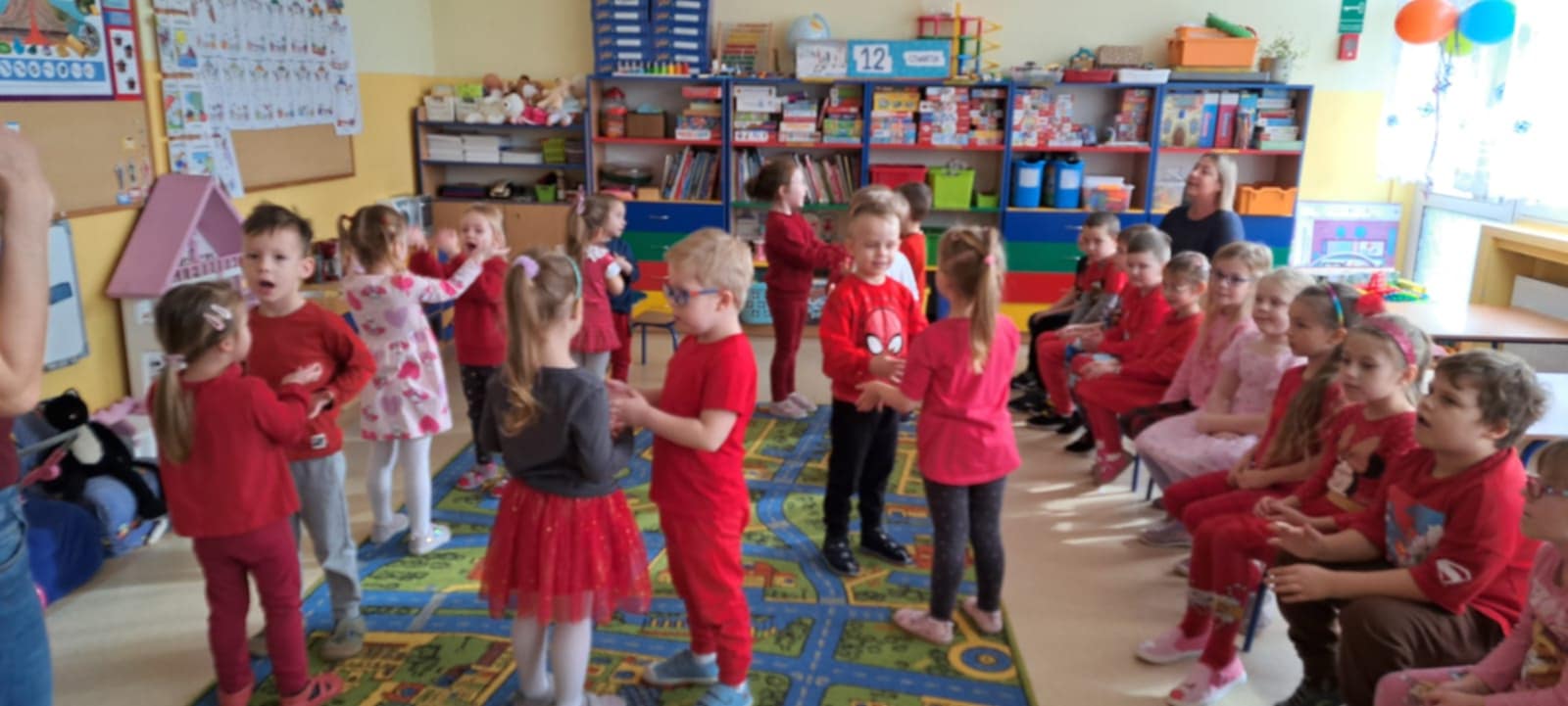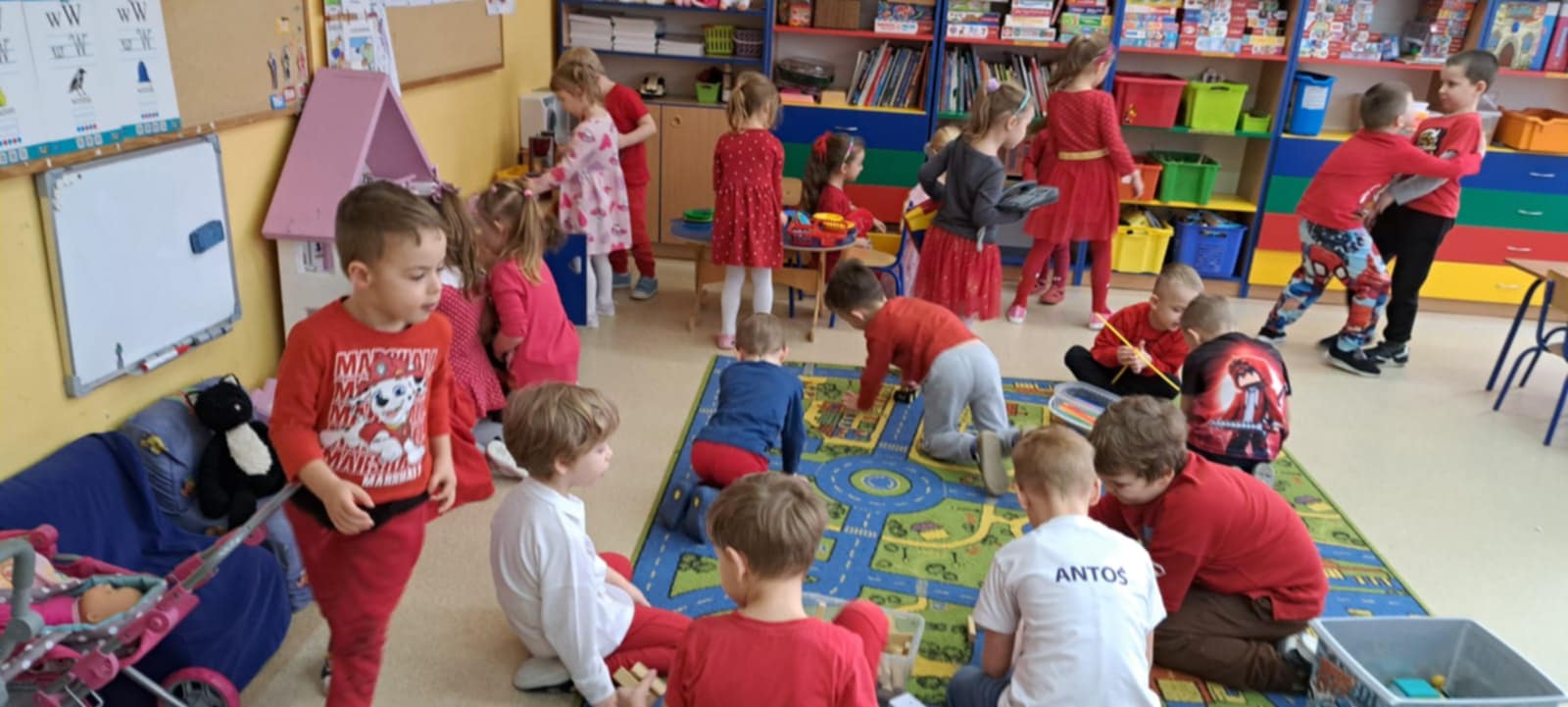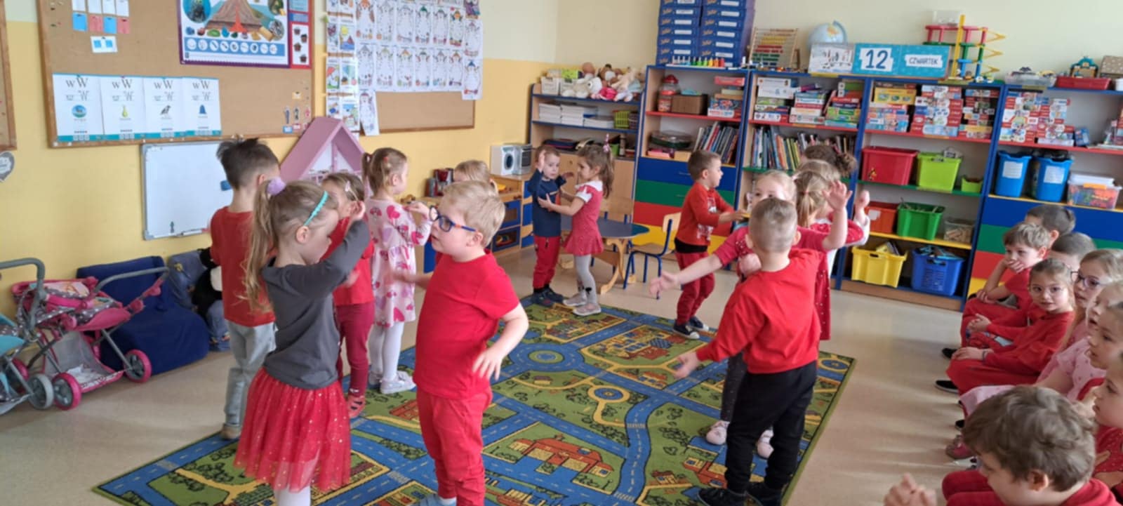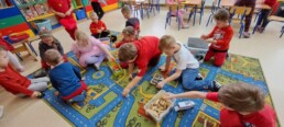 Dzisiaj grupę Krasnali odwiedziły dzieci z Miejskiego Przedszkola nr 12 w Knurowie – grupa „Tygryski”. Wspólnie spędziliśmy bardzo miły czas na zabawie i integracji. Dzieci chętnie brały udział we wspólnych grach oraz śpiewały piosenki, wykazując się dużą radością i zaangażowaniem. Spotkanie przebiegło w serdecznej i wesołej atmosferze. To był dzień pełen uśmiechu, który na długo pozostanie w naszej pamięci.