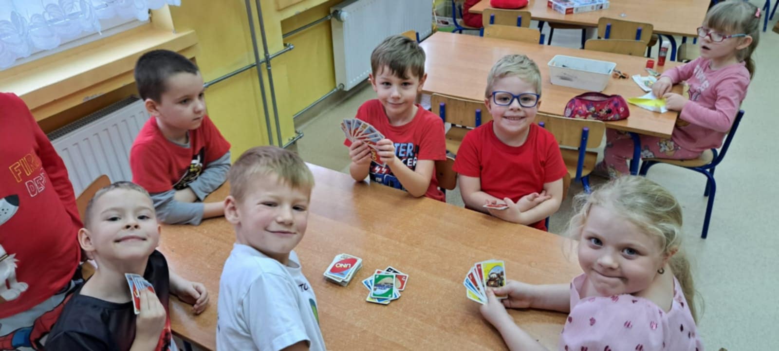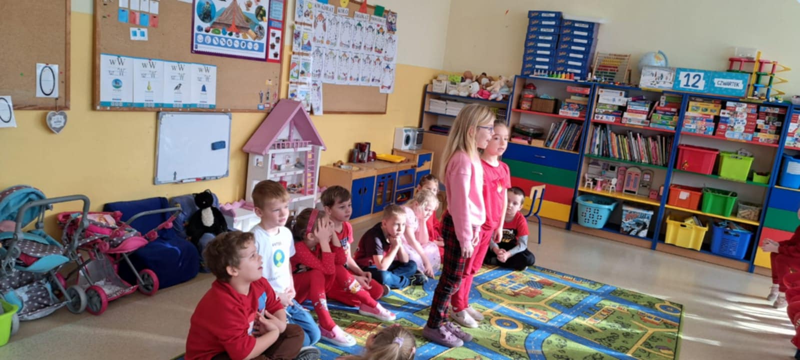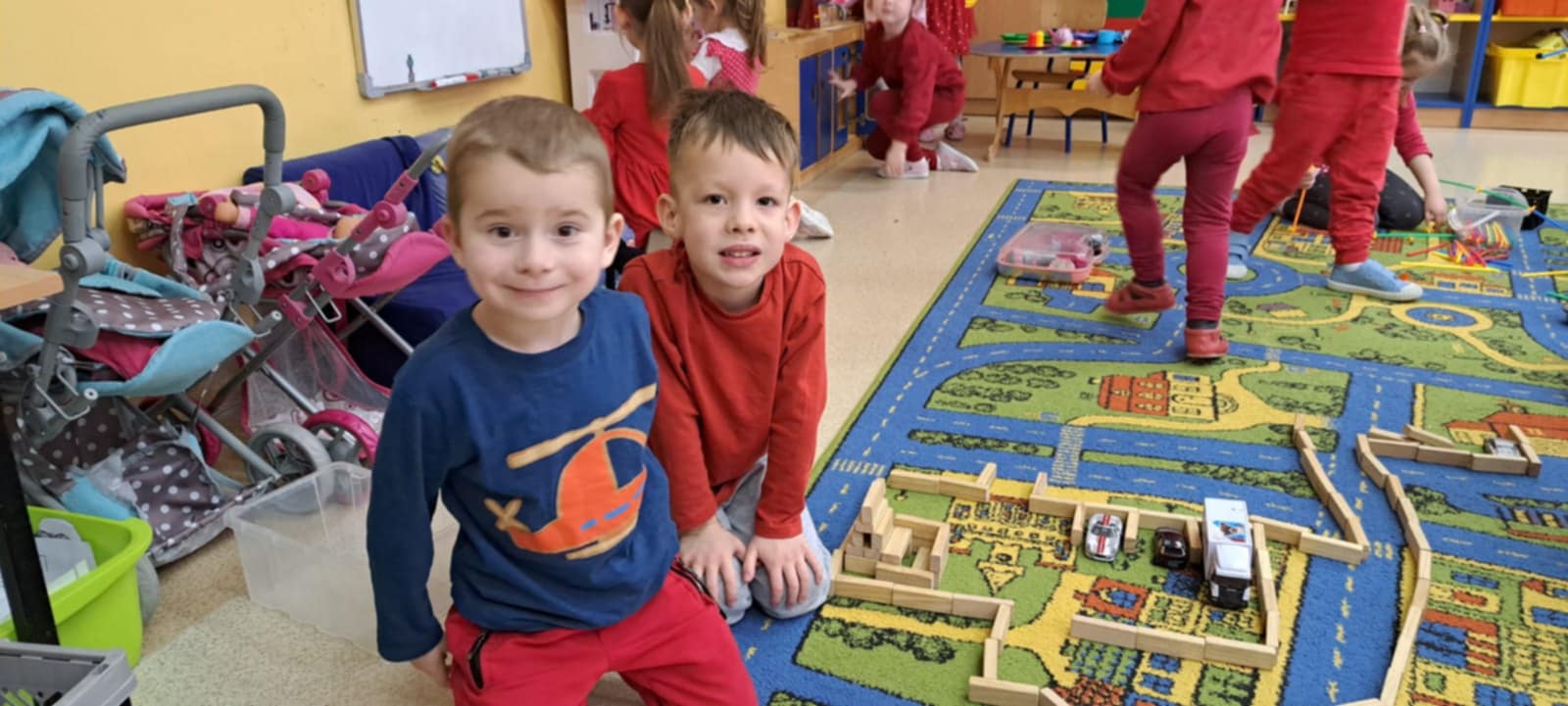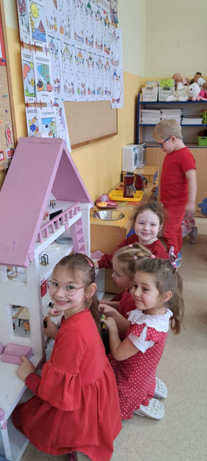 Dzisiaj grupę Krasnali odwiedziły dzieci z Miejskiego Przedszkola nr 12 w Knurowie – grupa „Tygryski”. Wspólnie spędziliśmy bardzo miły czas na zabawie i integracji. Dzieci chętnie brały udział we wspólnych grach oraz śpiewały piosenki, wykazując się dużą radością i zaangażowaniem. Spotkanie przebiegło w serdecznej i wesołej atmosferze. To był dzień pełen uśmiechu, który na długo pozostanie w naszej pamięci.