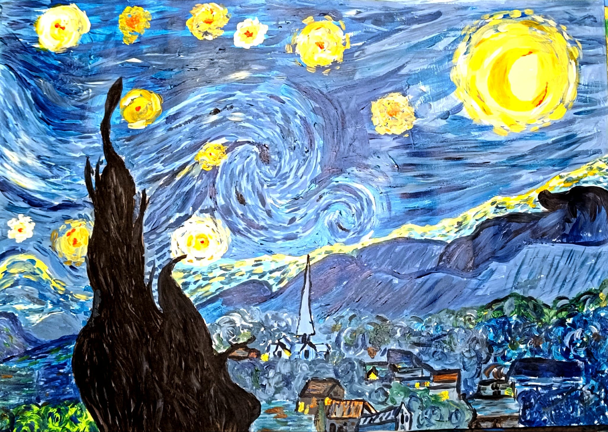 Młodzi artyści inspirowani jego niezrównaną pasją i oryginalnym stylem przenoszą nas w świat pełen intensywnych kolorów, dynamicznych pociągnięc pędzla oraz emocjonalnej głębi. Każda z prac jest unikalnym spojrzeniem na twórczość mistrza oraz świadectwem nie tylko talentu ale także emocjonalnego zaangażowania i wrażliwości dzieci na otaczający świat!
