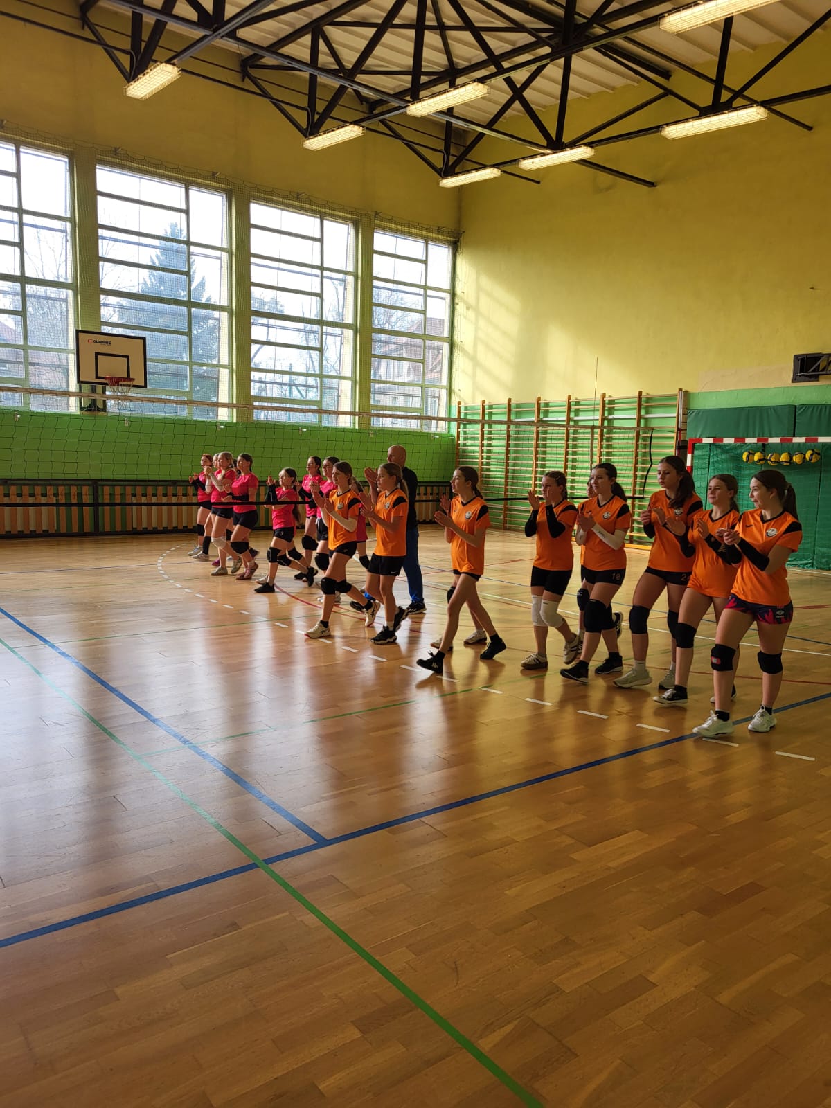 Karolina Raczyńska(kapitan), Wiktoria Zagórska, Zuzanna Kamińska, Kaja Król, Milena Pawliczek, Martyna Zaik, Nadia Szulik, Karolina Daniel, Laura Wanicka, Kaja Szczepanik. Dziewczęta zagrały świetnie. Wygrały ze wszystkimi szkołami i jako mistrzynie Knurowa awansowały do półfinału powiatu gliwickiego, który odbędzie się w marcu.