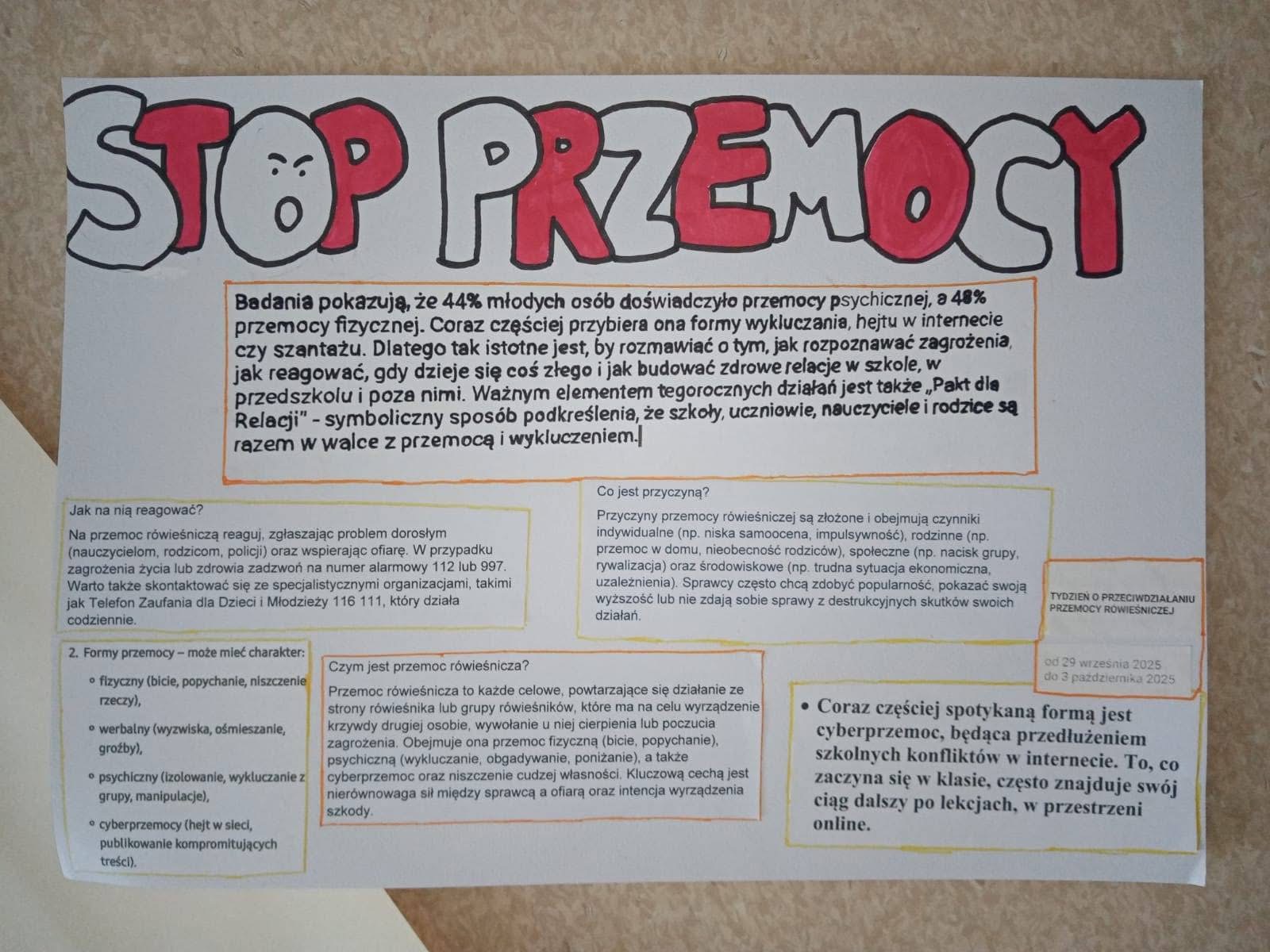 W ramach tygodnia Przeciwdziałania Przemocy Rówieśniczej w naszej szkole przeprowadzono zajęcia integrujące grupy oraz rozwijające świadomość istotności budowania prawidłowych relacji.