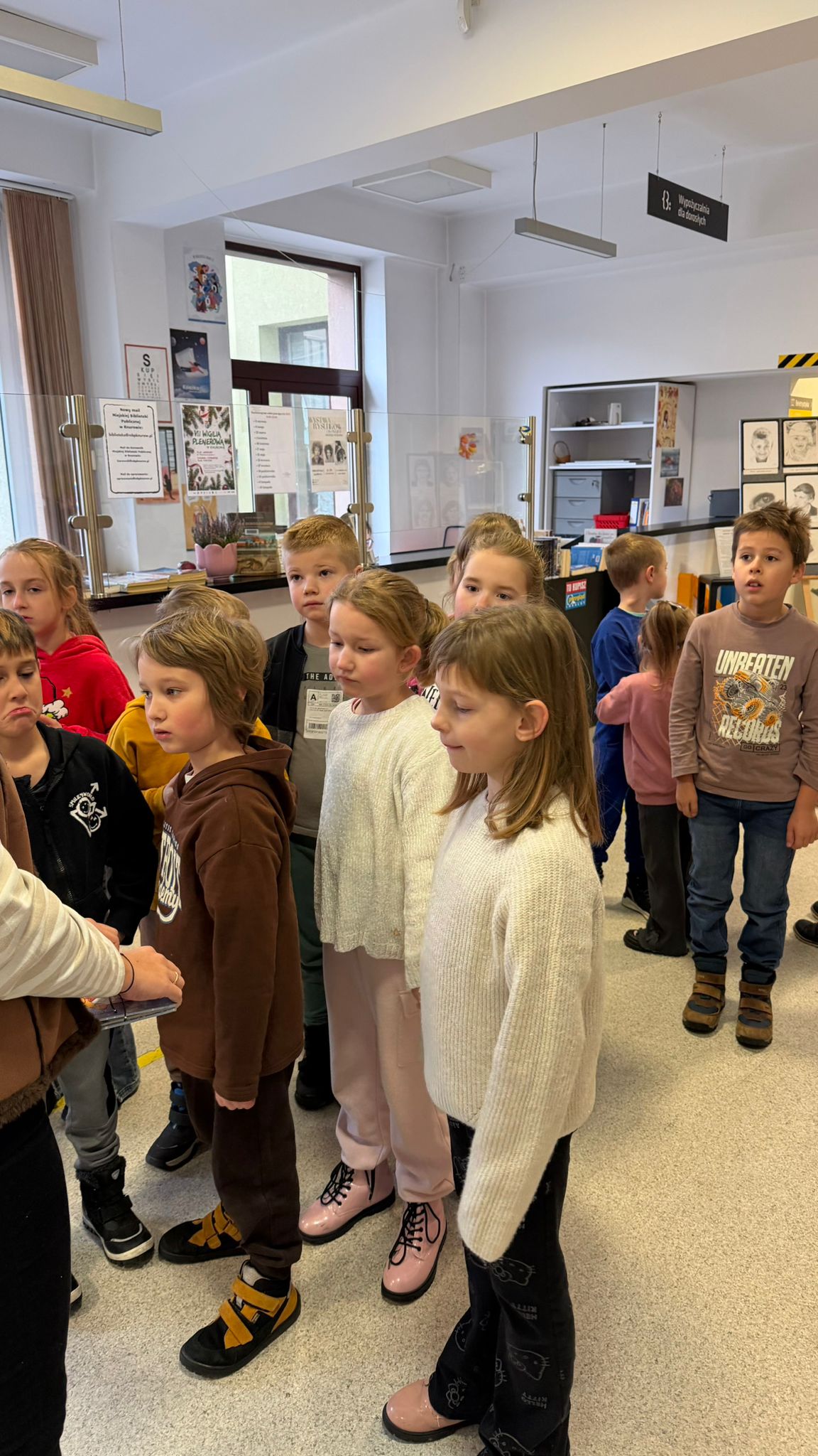 Co więcej — idealnie się złożyło, bo właśnie dziś ruszamy w naszej klasie z Grudniowym Wyzwanie Czytelniczym! Mamy nadzieję, że wizyta w bibliotece będzie dla pierwszaków świetną motywacją do codziennego czytania.
