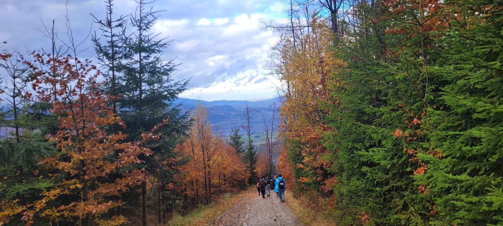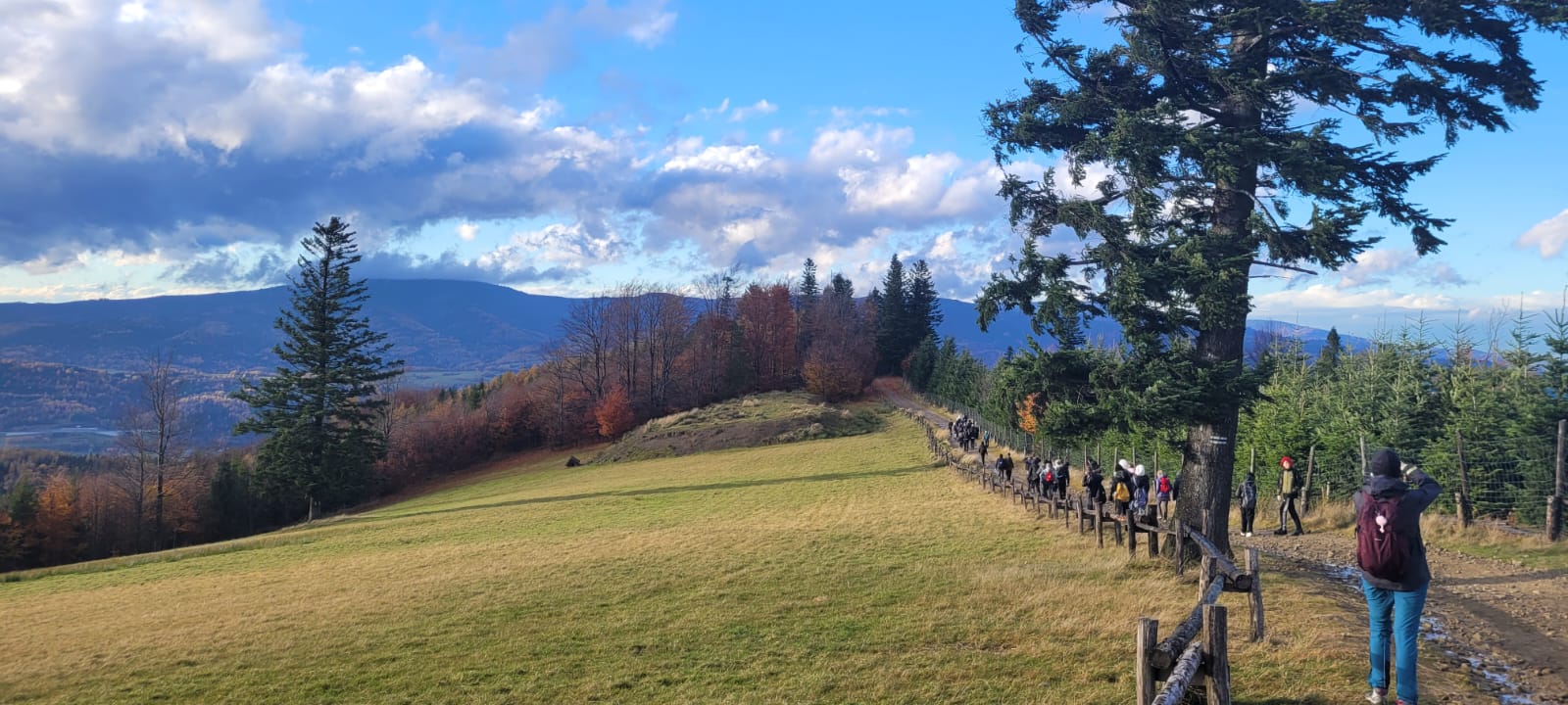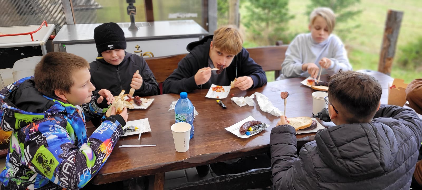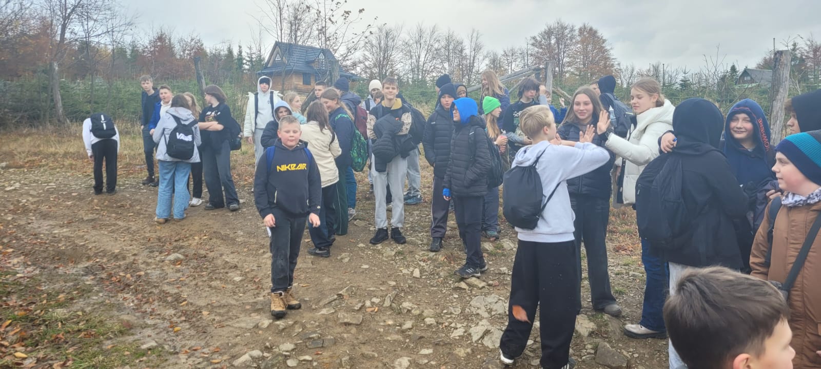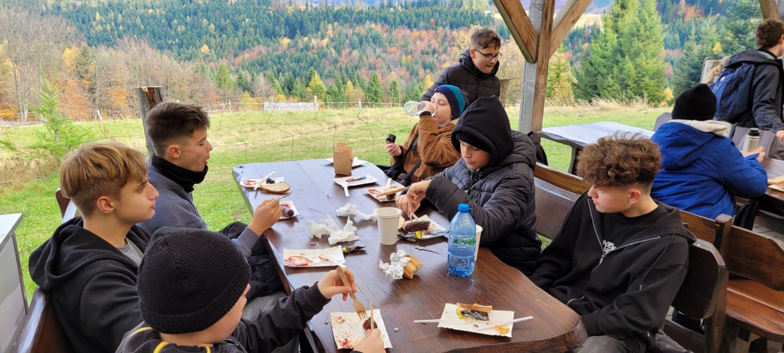 Po lekcji historii przyszła pora na kontakt z naturą – wędrówka szlakiem z Żabnicy na Halę Boraczą, gdzie czekało na wszystkich ognisko z pysznym pieczeniem kiełbasek. W drodze powrotnej uczniowie podziwiali malownicze widoki, schodząc niebieskim szlakiem przez Prusów.