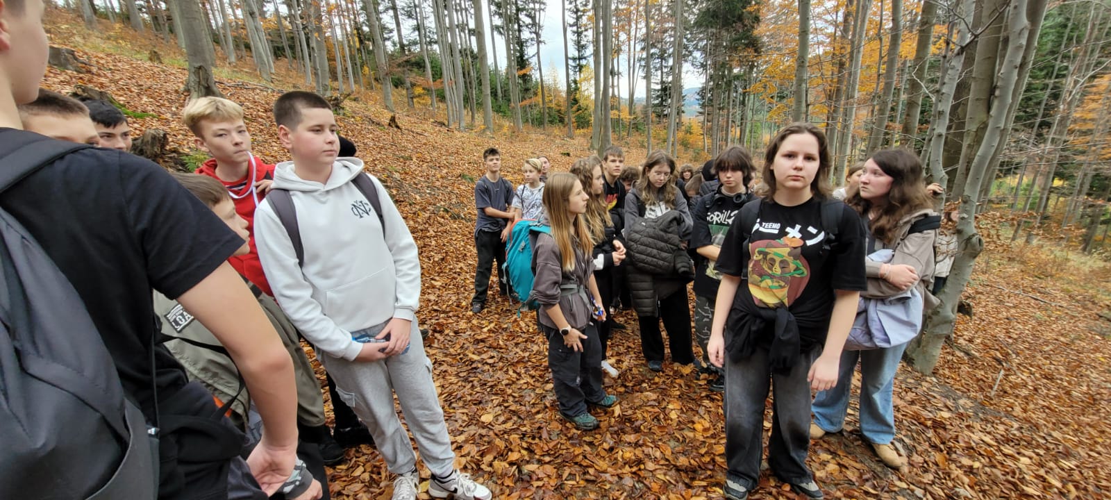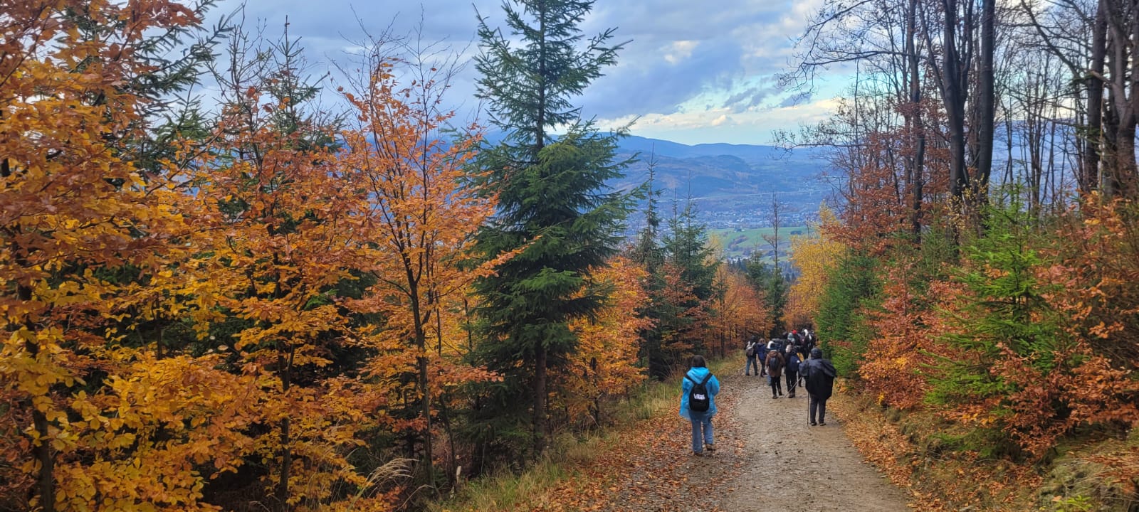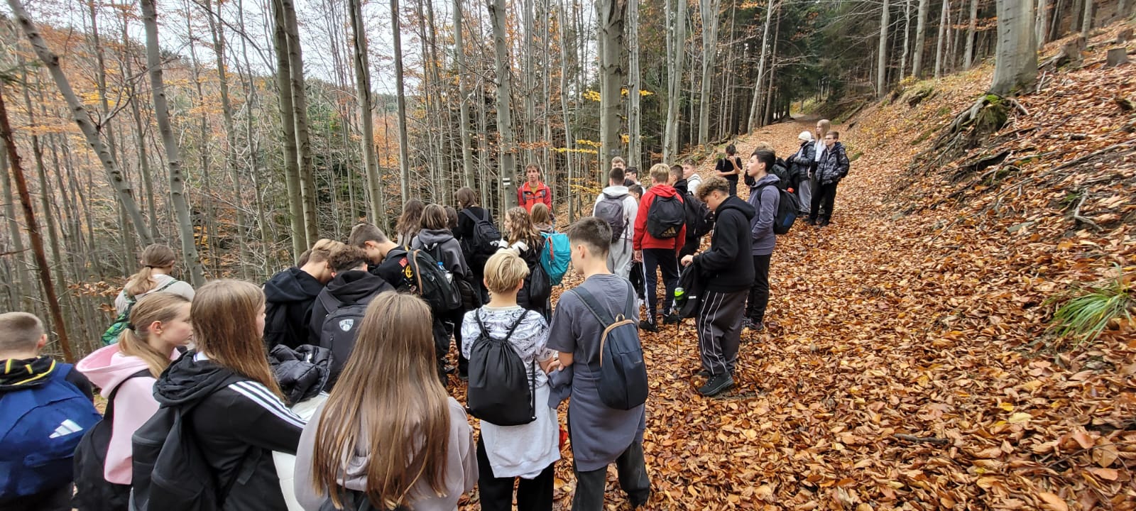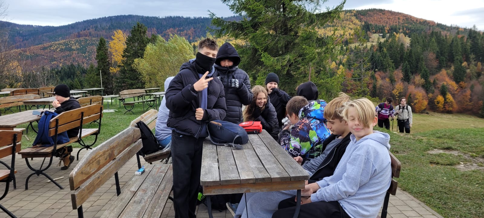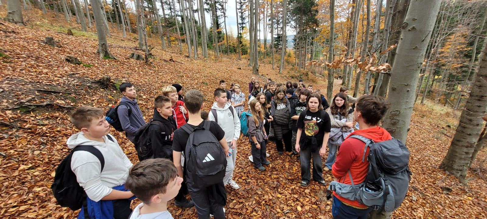 Po lekcji historii przyszła pora na kontakt z naturą – wędrówka szlakiem z Żabnicy na Halę Boraczą, gdzie czekało na wszystkich ognisko z pysznym pieczeniem kiełbasek. W drodze powrotnej uczniowie podziwiali malownicze widoki, schodząc niebieskim szlakiem przez Prusów.