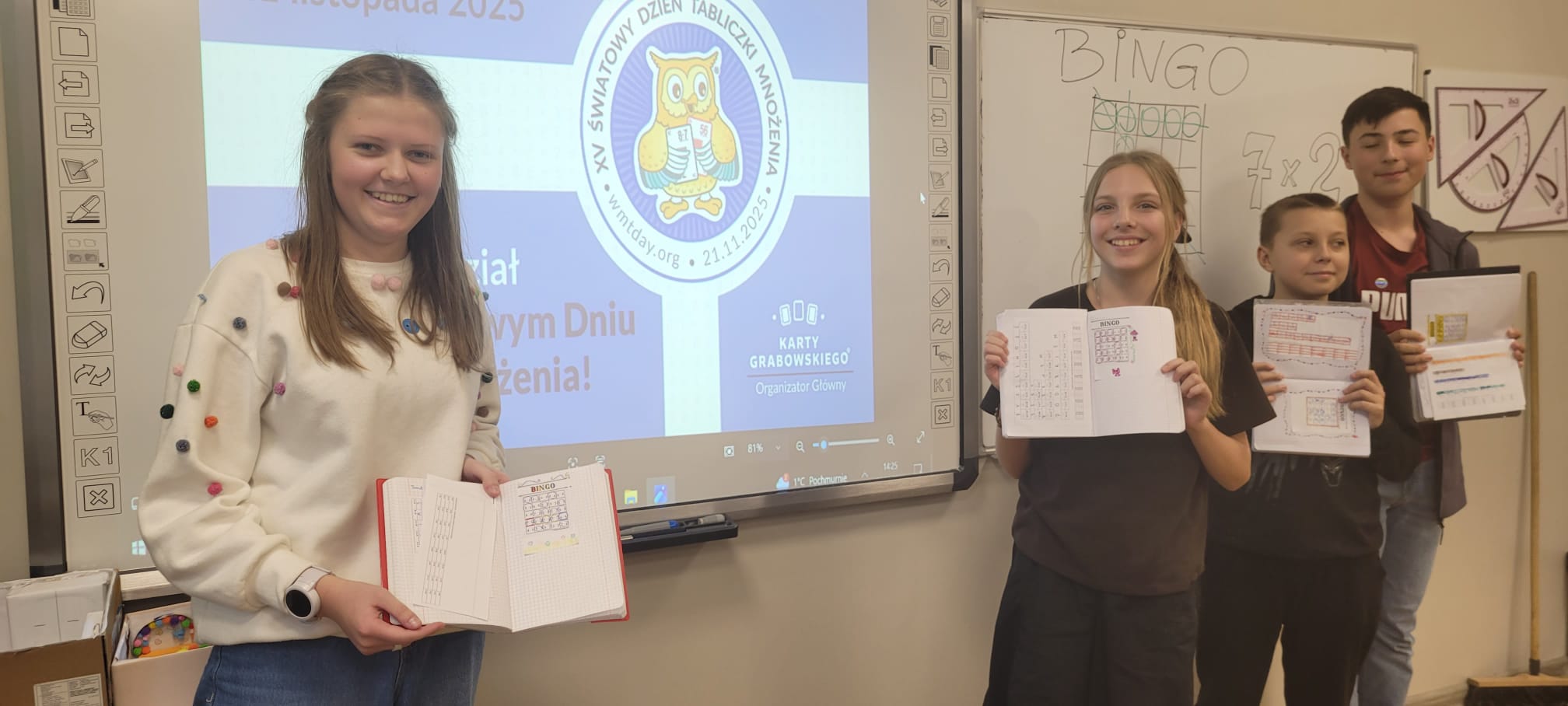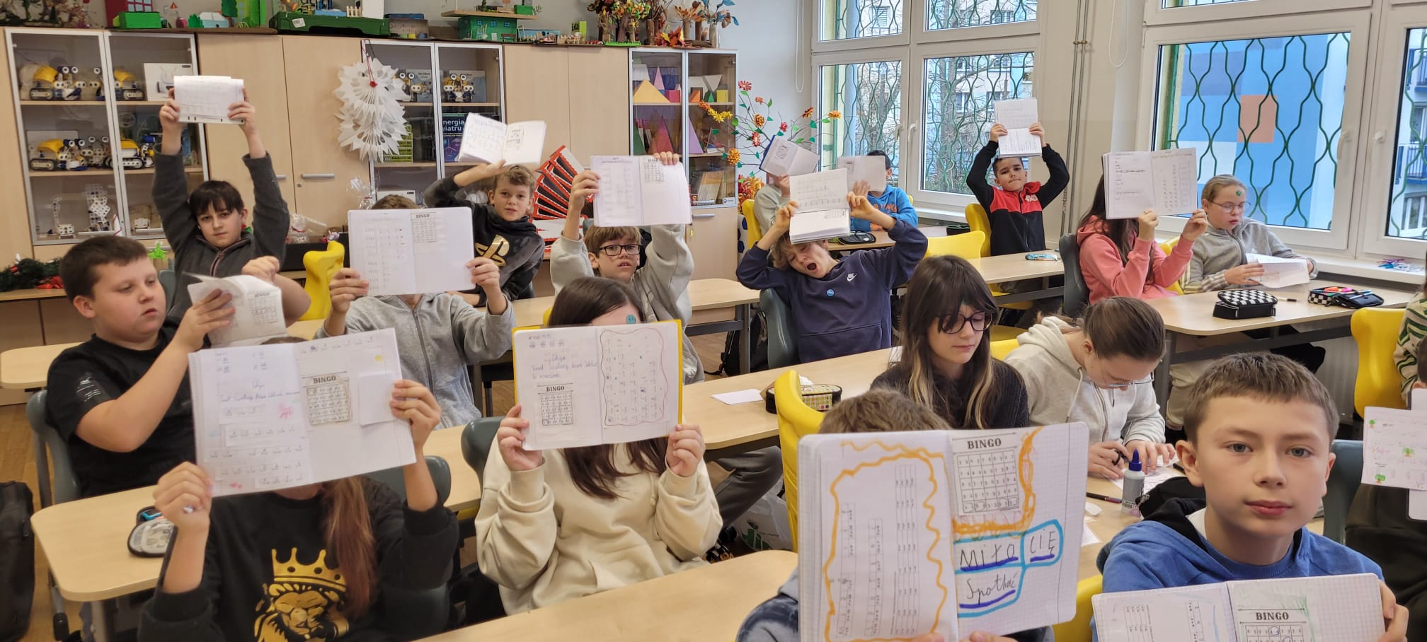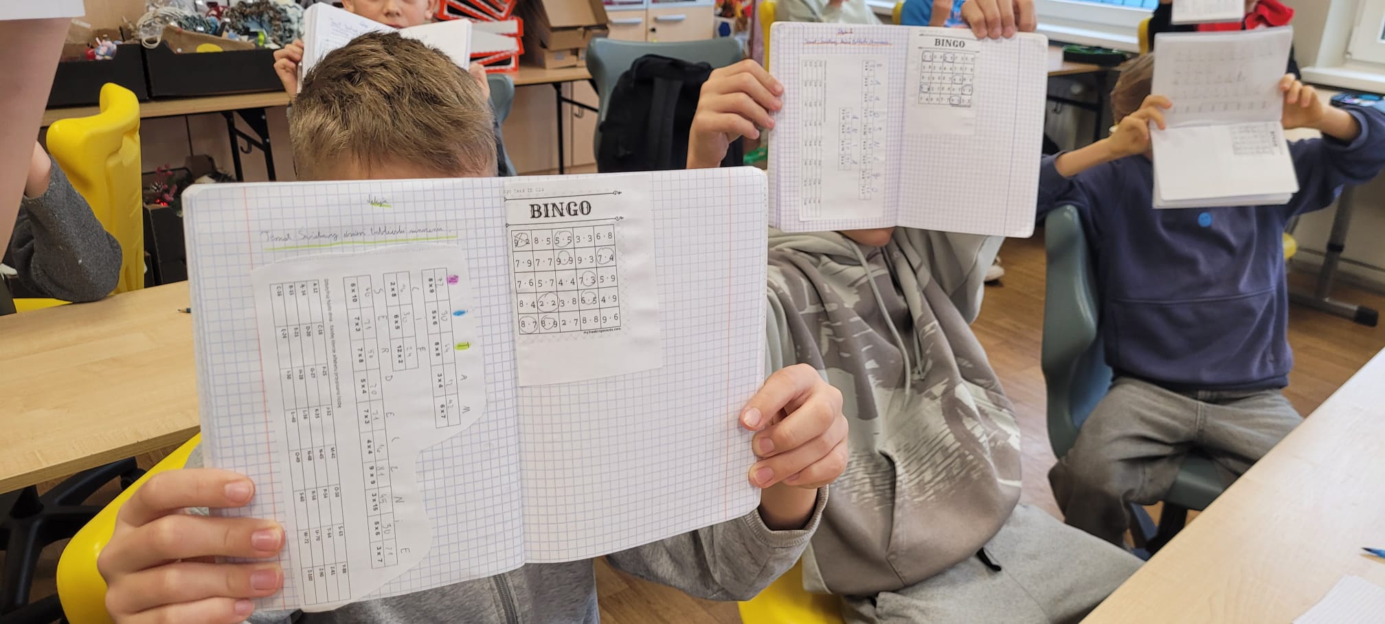 Każdy uczeń otrzymał zakodowane hasło, które mógł odczytać dopiero po poprawnym rozwiązaniu działań. Następnie wszyscy zmierzyli się w pełnej emocji grze BINGO, oczywiście również opartej na tabliczce mnożenia!